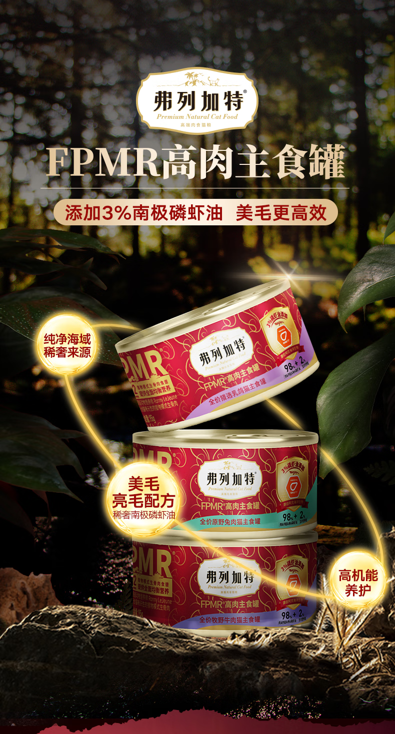 弗列加特猫罐头主食罐头磷虾油98%含肉量全价主食猫罐头零食成猫幼猫湿粮 【磷虾油配方】混合口味95g*30罐