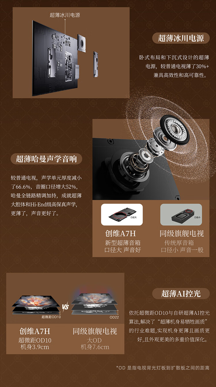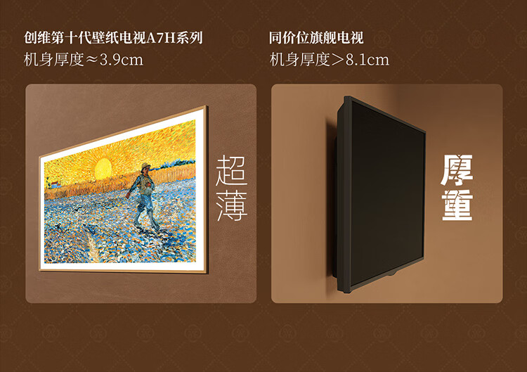 创维电视65A7H 65英寸艺术壁纸电视Mini LED 3.9cm超薄无缝贴墙 平板电视机 家电国家补贴 A7F升级款