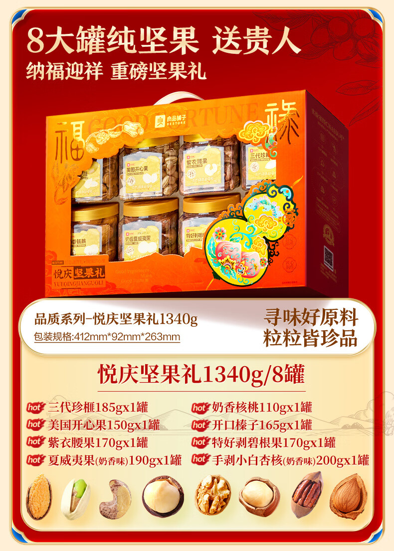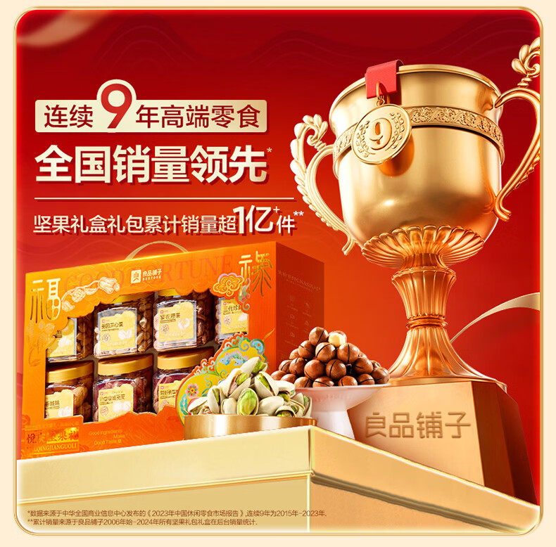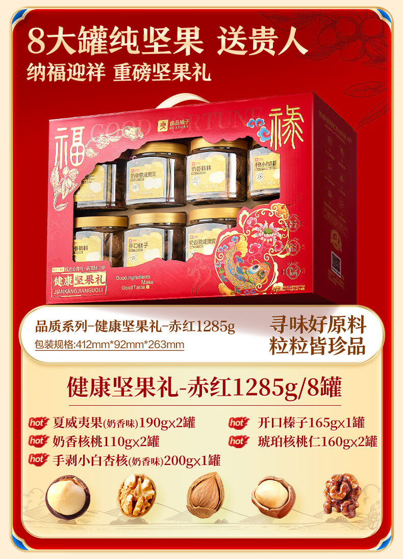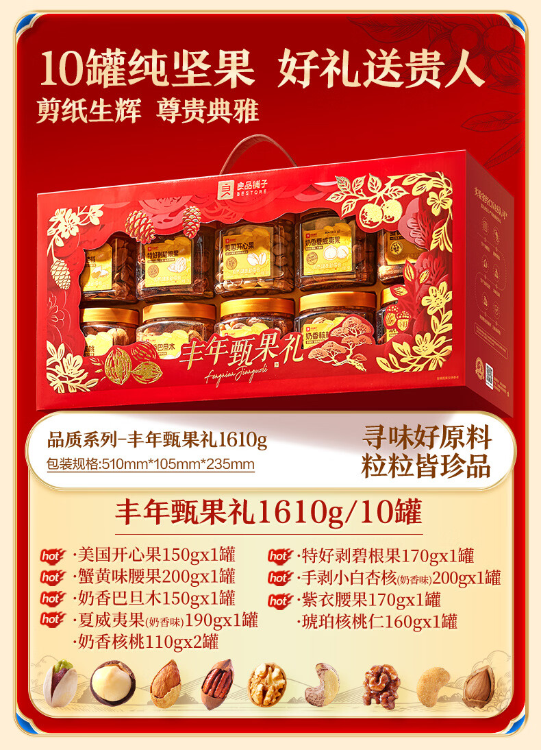 良品铺子坚果礼盒高端送礼开心果每日坚果送长辈零食大礼包年货礼盒罐装 【罐装纯坚果-10罐含碧根果开心果】十全十美礼1608g x1盒