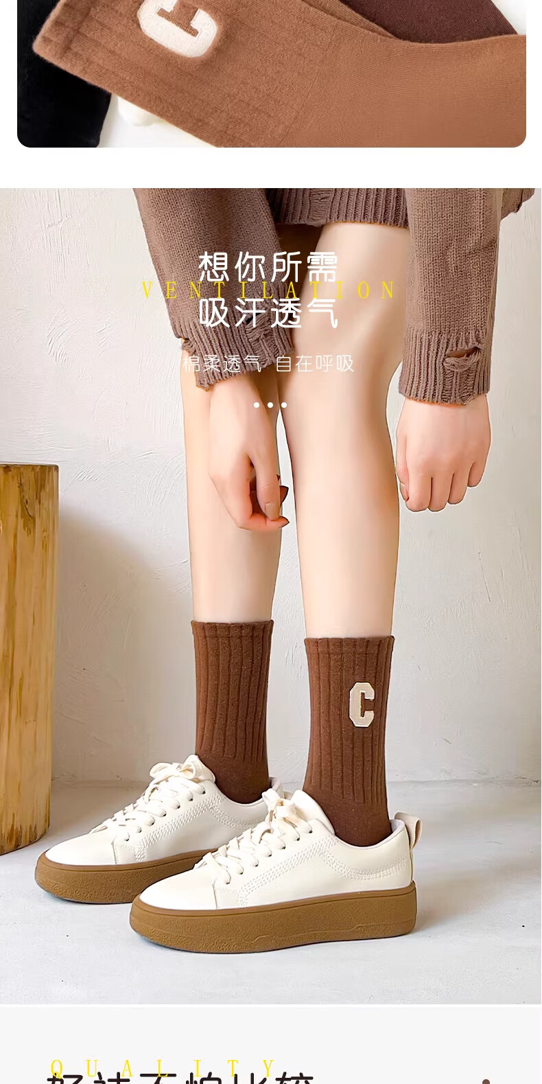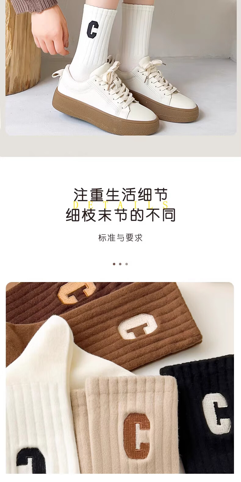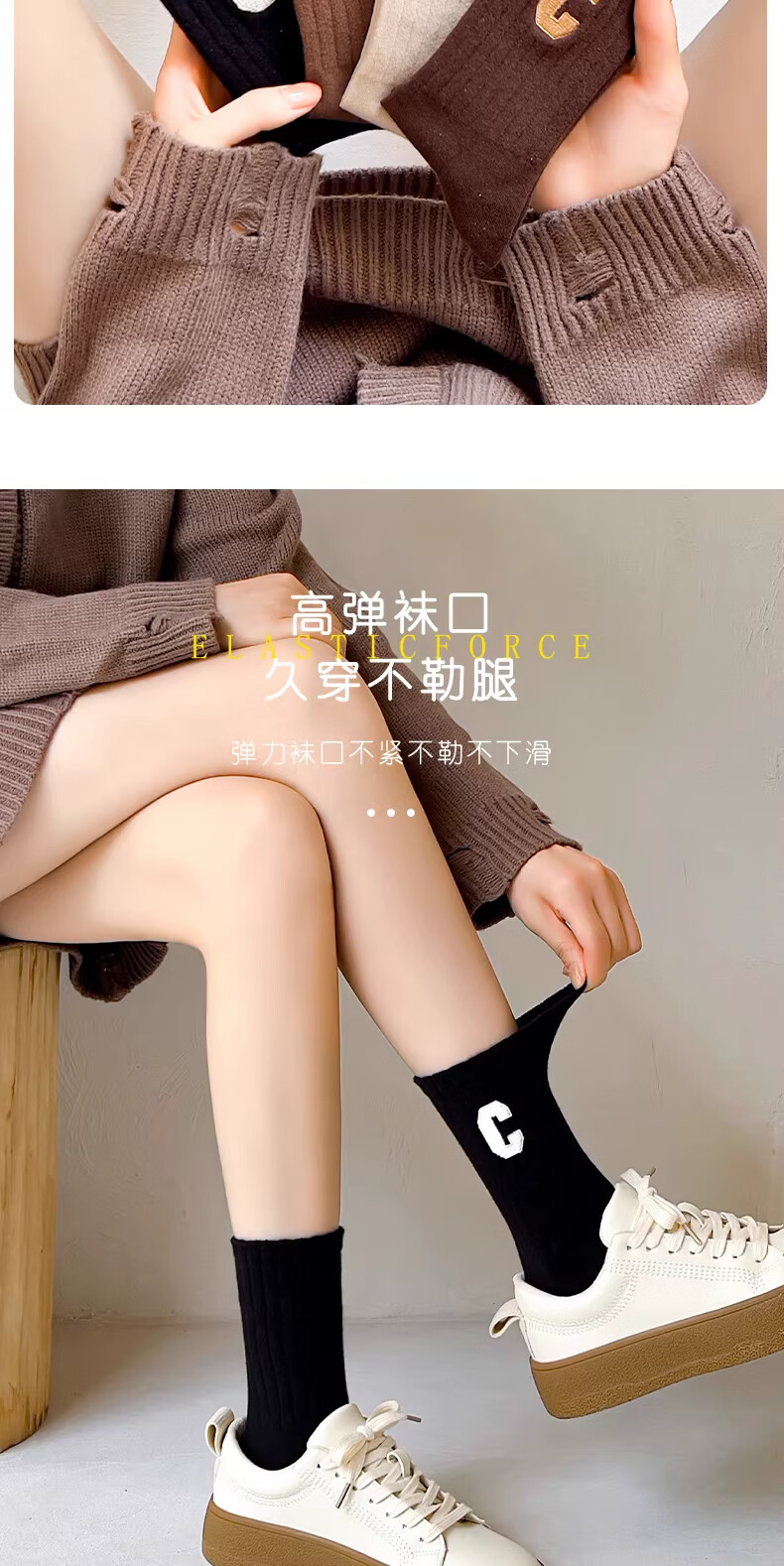 洛·恋袜子女款秋冬棉质中筒秋冬季保暖加厚款运动跑步吸汗长袜女士女袜 混色-【冬季保暖】- 5双 均码 【颜色可选 拍下留言】