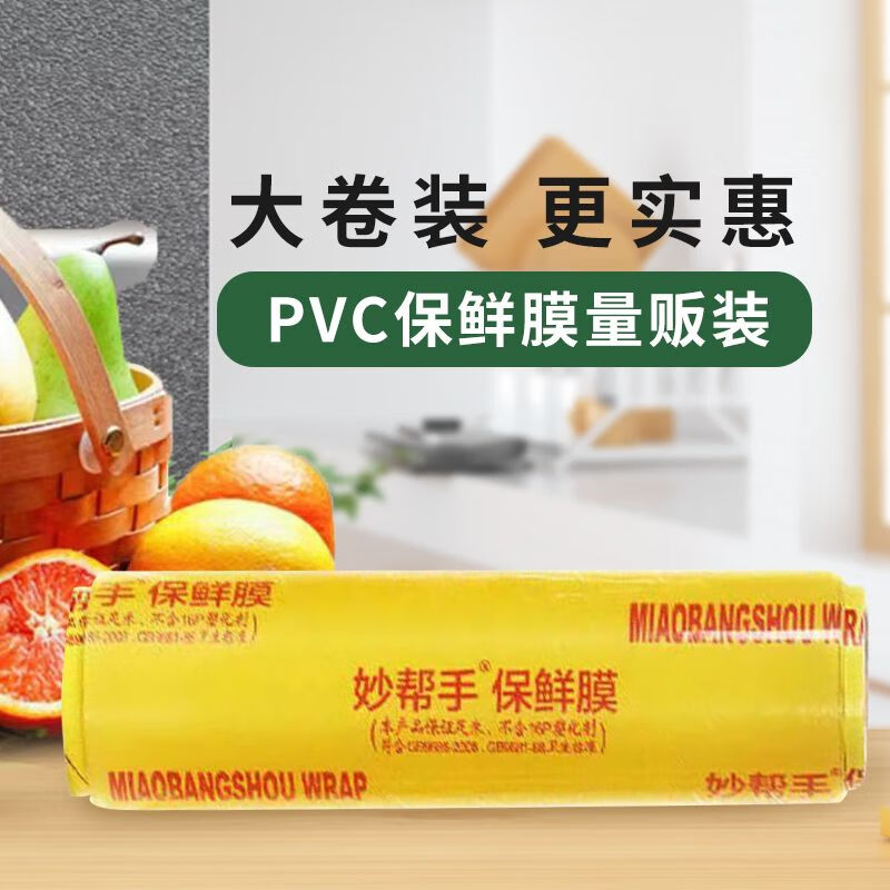 橙央【严选百货】保鲜膜PVC大卷商超水果店厨房生鲜家用耐高温冰箱 不起雾的保鲜膜 45公分宽约600米