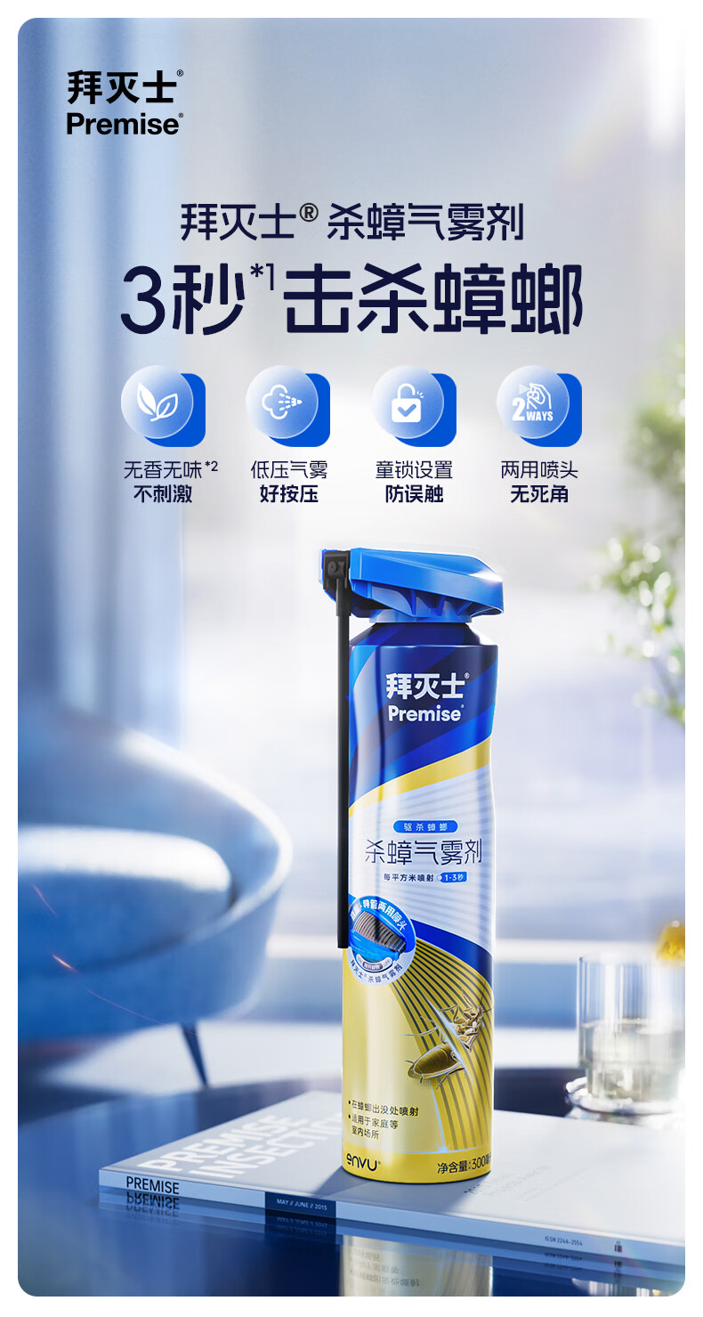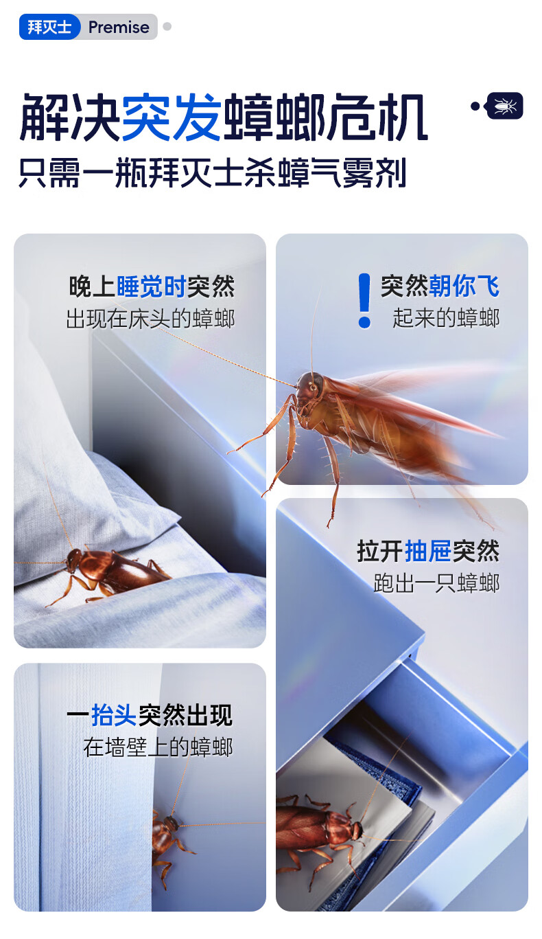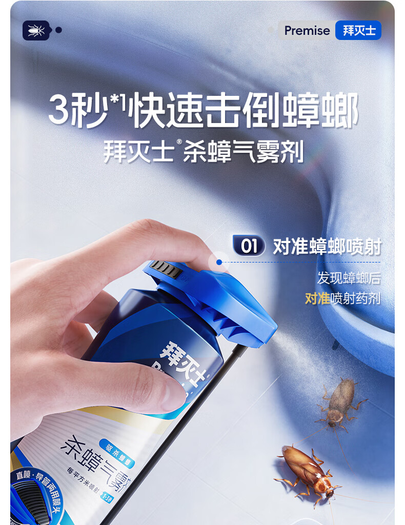拜灭士杀虫剂蟑螂药喷雾杀蟑气雾剂非臭虫飞虫下水道家用灭蟑螂热门商品 【尝鲜速杀】杀虫剂单瓶装
