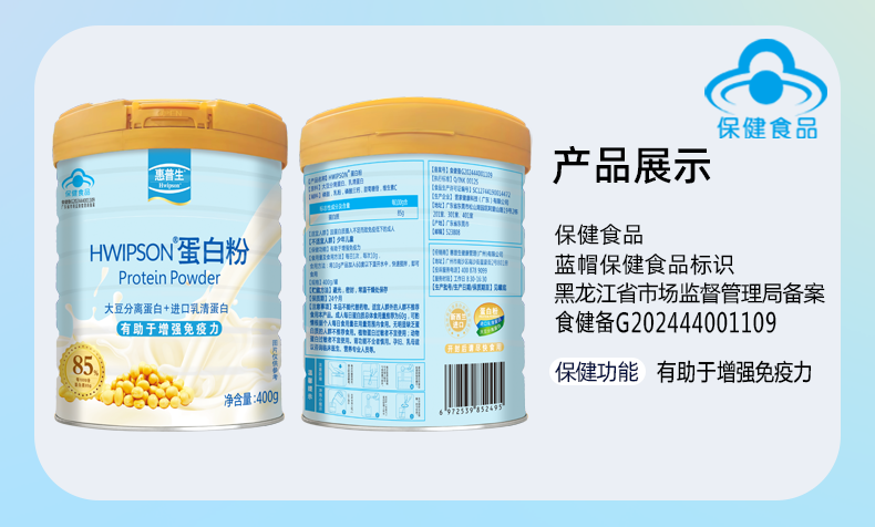 惠普生蛋白粉400g新西兰进口乳清85%高蛋白成人中老年提高免疫力礼品装 四桶装1600g+2礼品袋