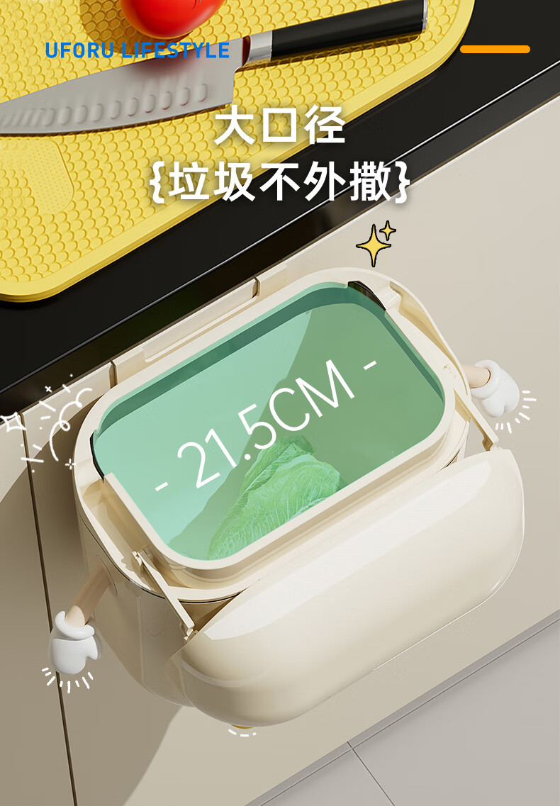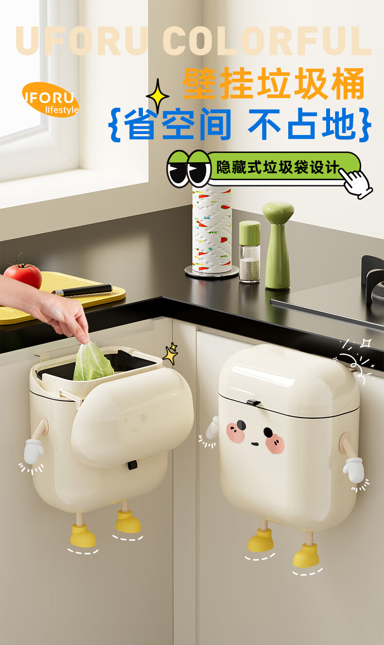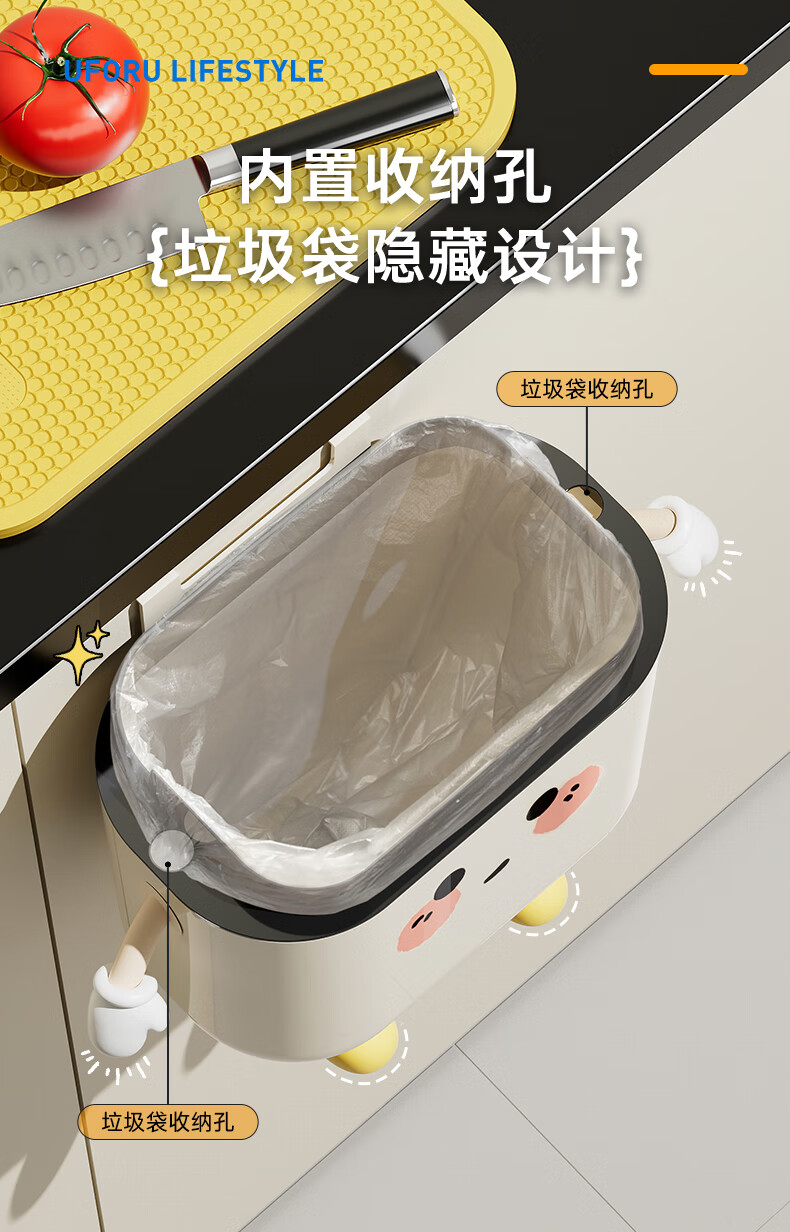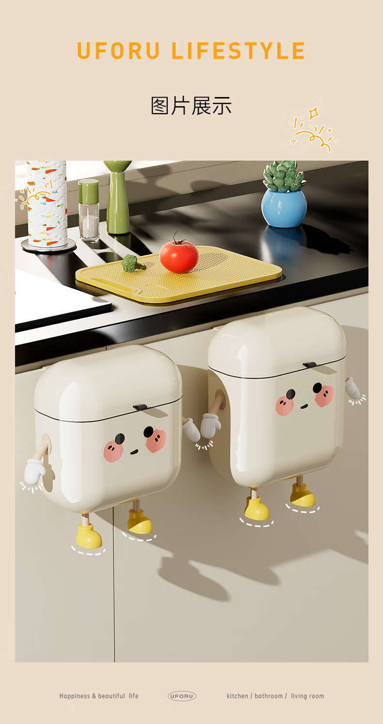 橱明星垃圾桶家用厨房专用免弯腰壁挂厕所卫生间可爱高颜值2025新款挂式 【创意表情】9L奶油白
