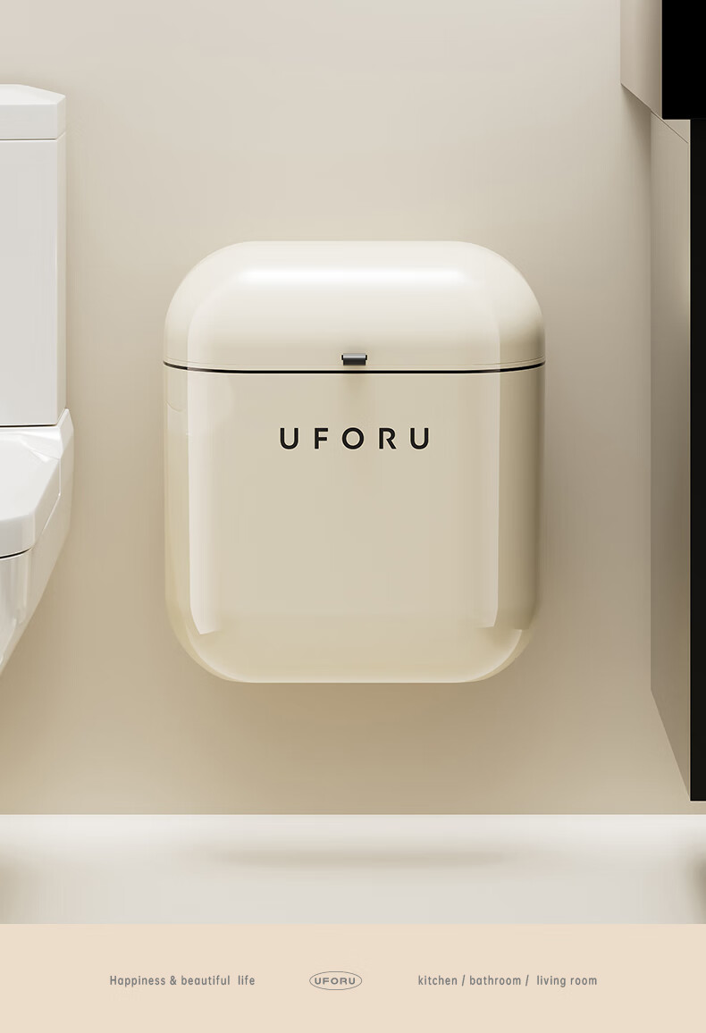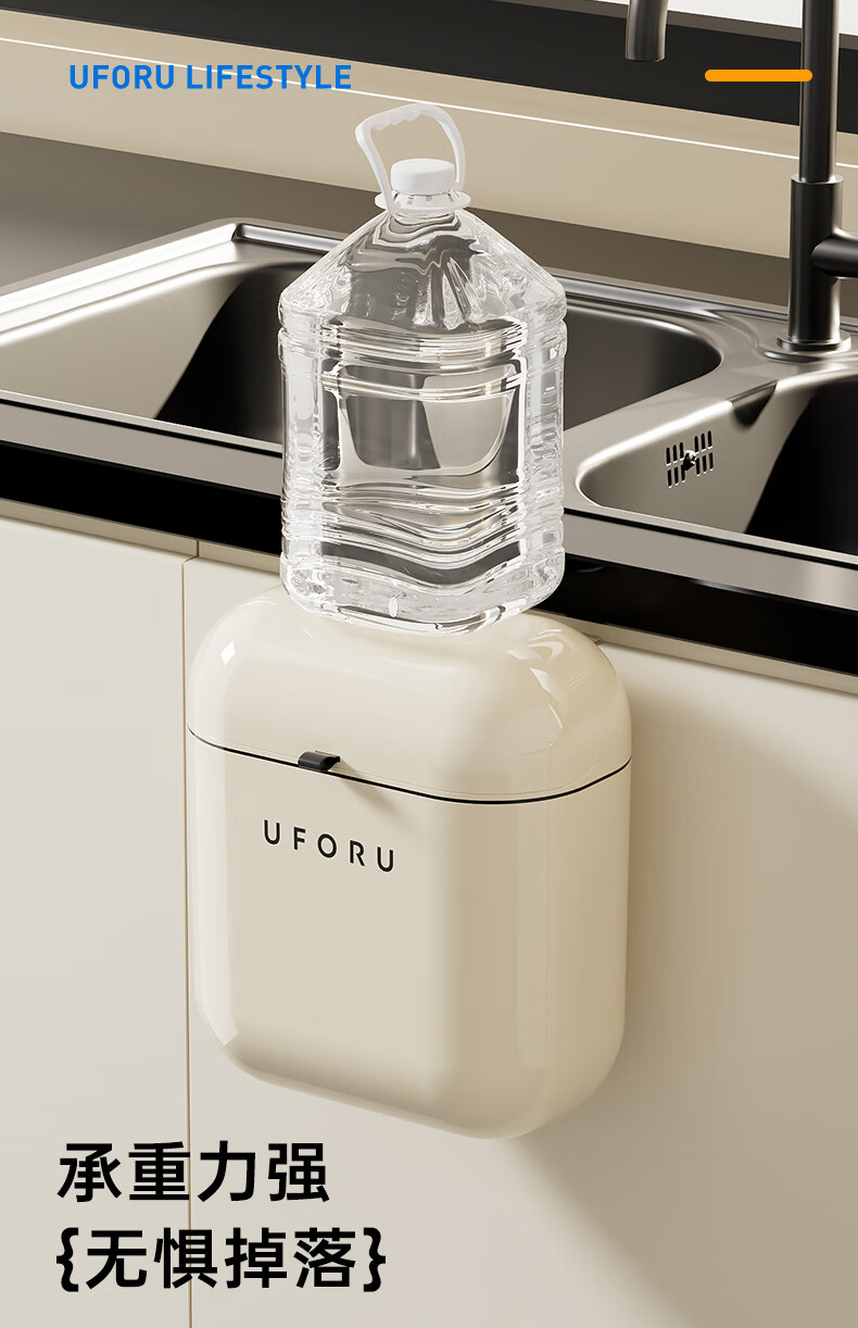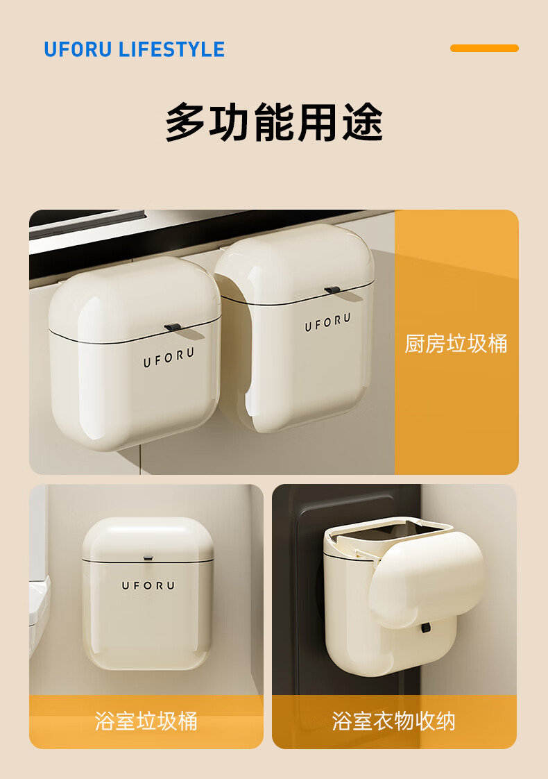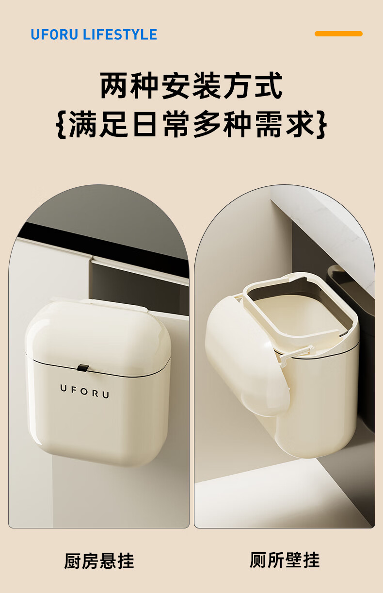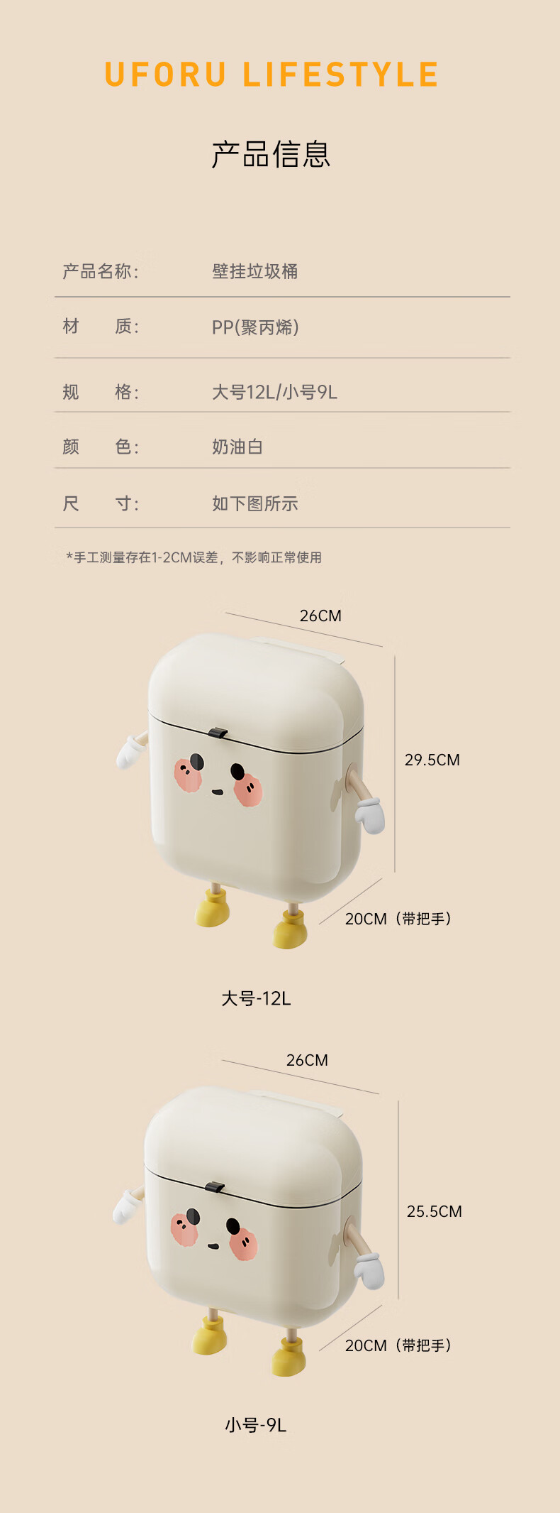 橱明星垃圾桶家用厨房专用免弯腰壁挂厕所卫生间可爱高颜值2025新款挂式 【创意表情】9L奶油白
