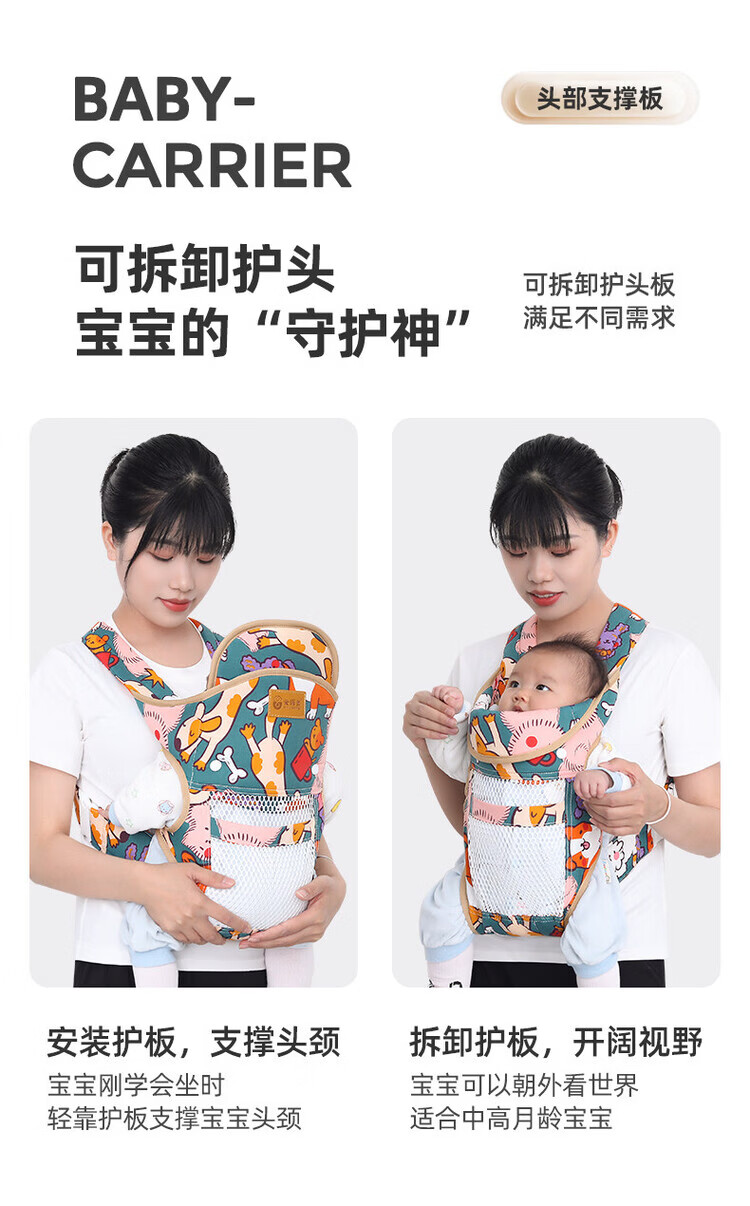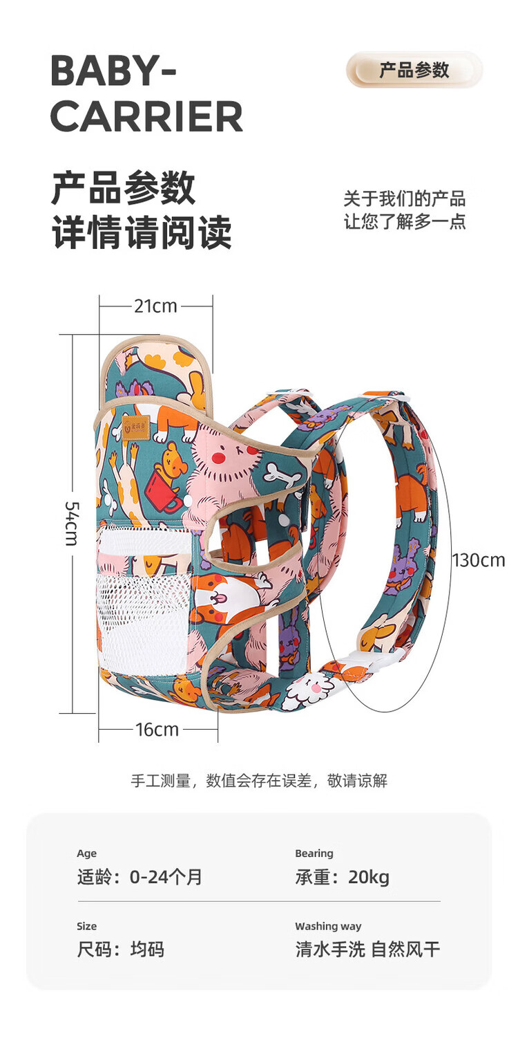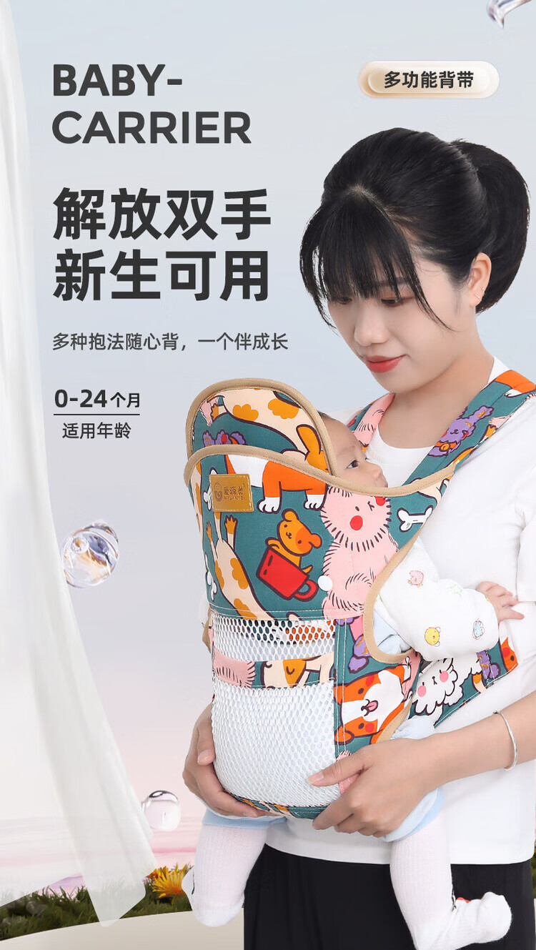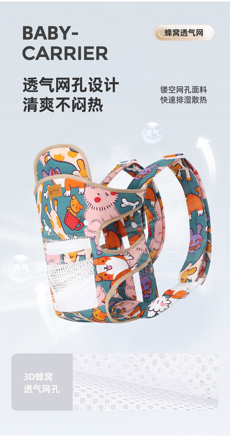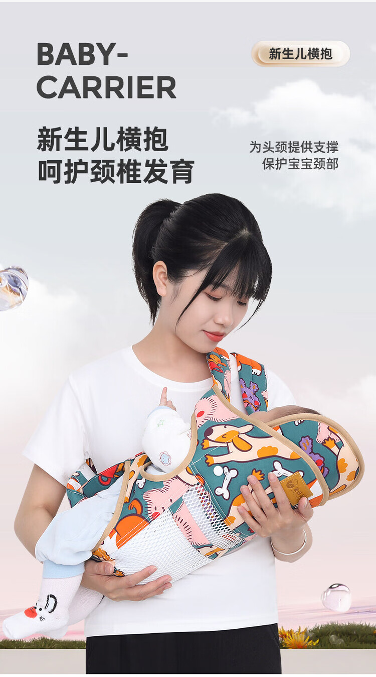 KETAOQI婴儿背带前后多功能四季通用新生宝宝横抱式解放双手外出抱娃神器 卡通狗(透气网)