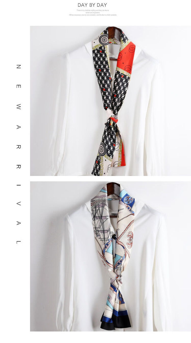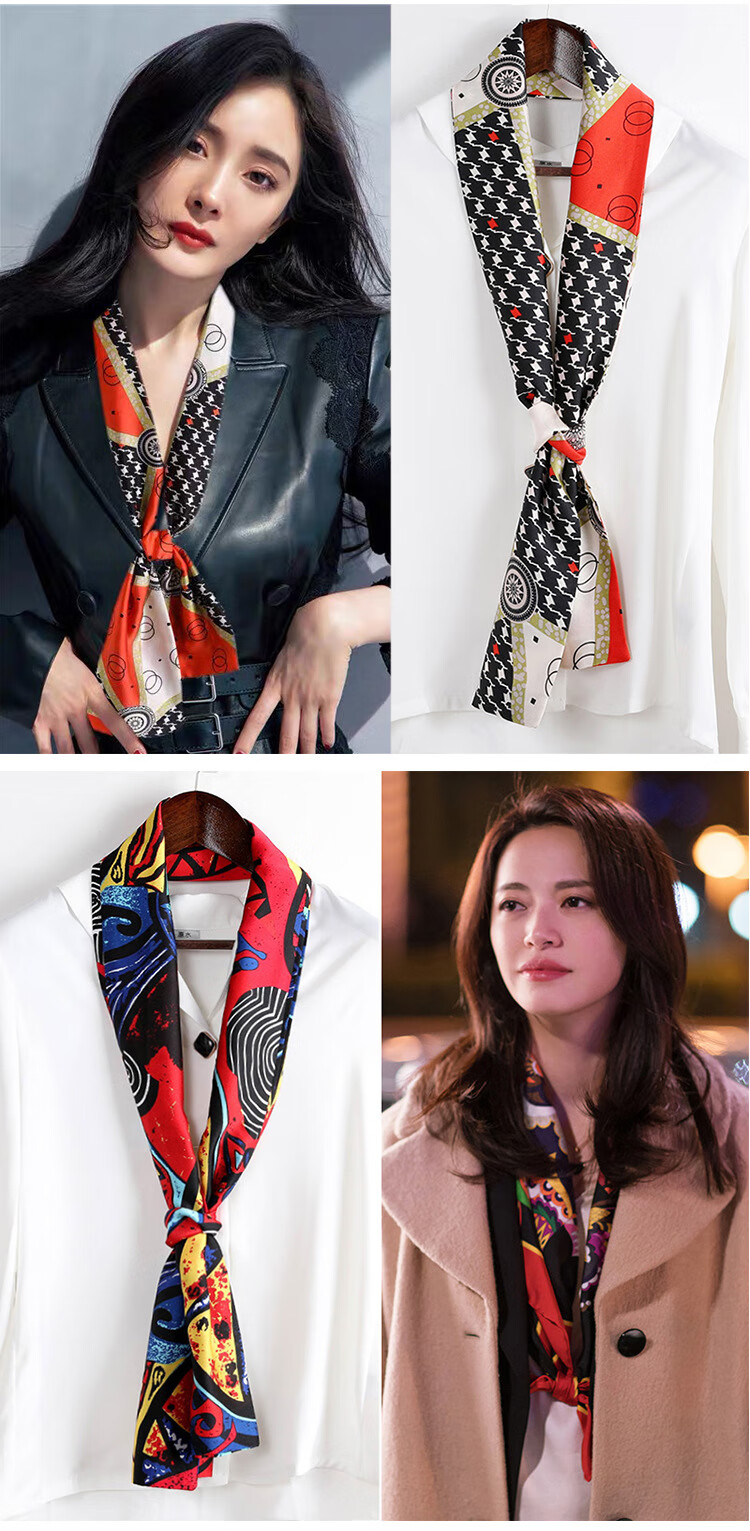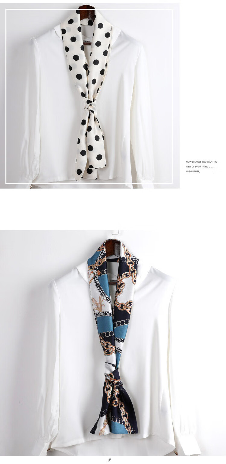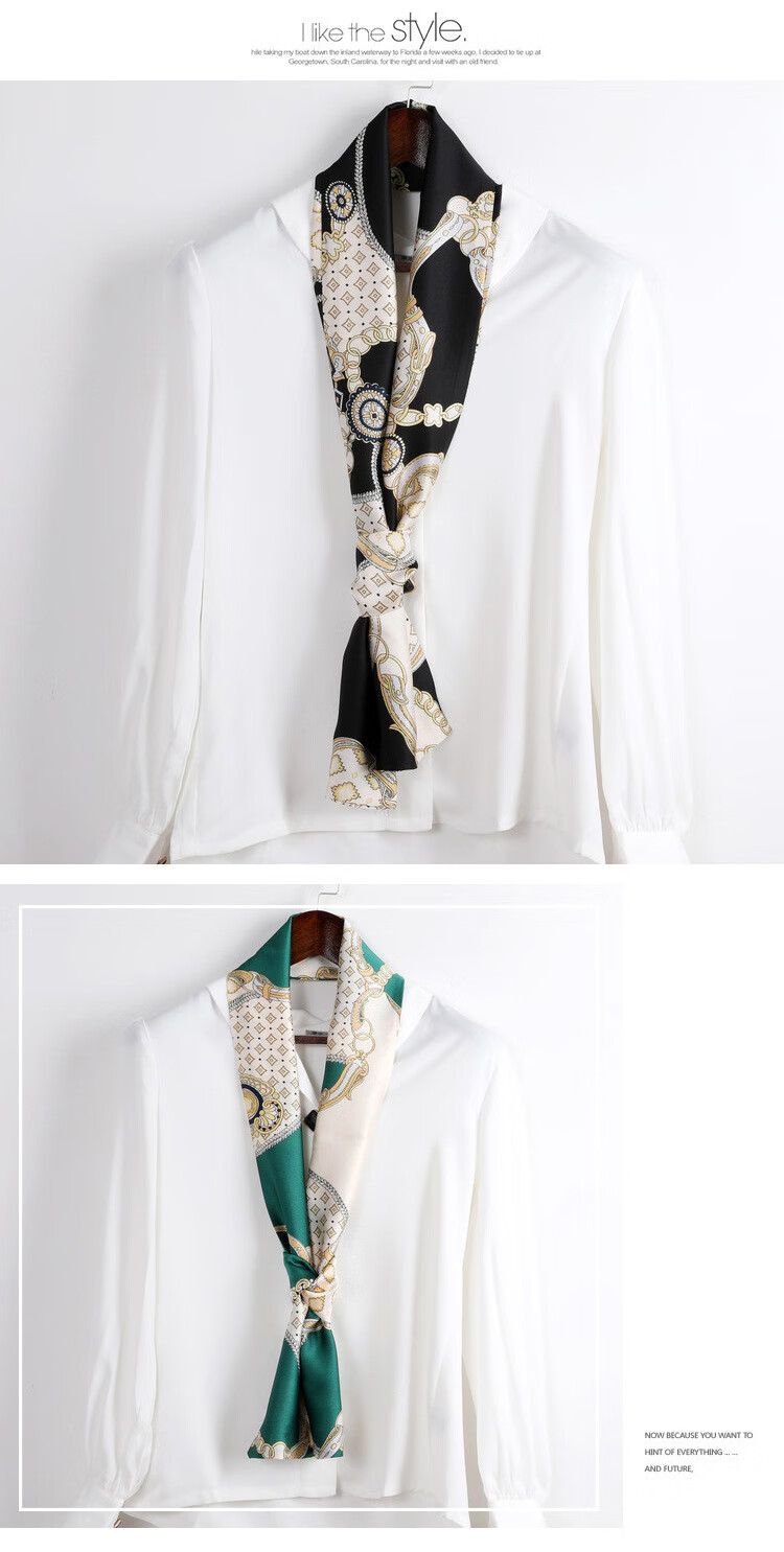 奥义驰小长条窄丝巾女百搭春秋夏季护颈脖子装饰长款薄围巾方巾韩系领巾 015黑米链条 15*145cm