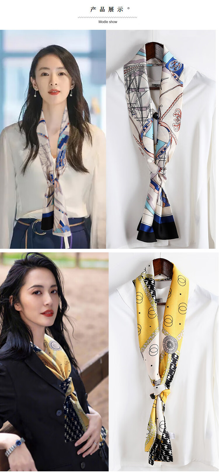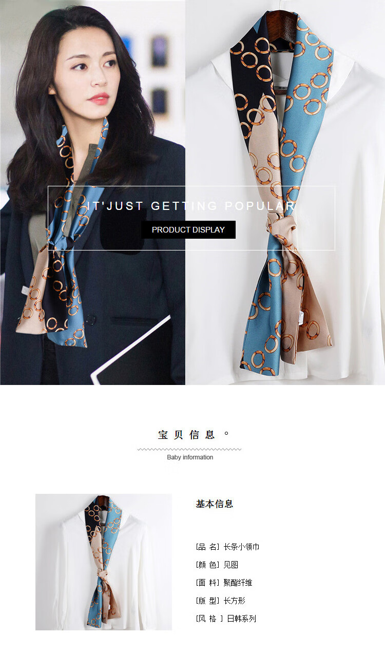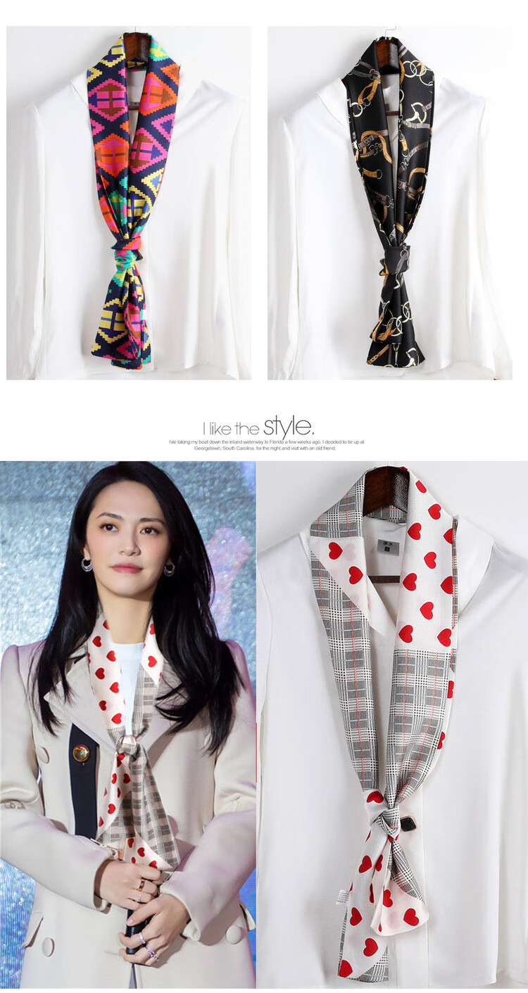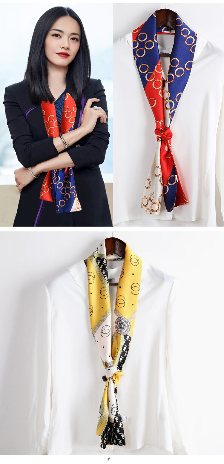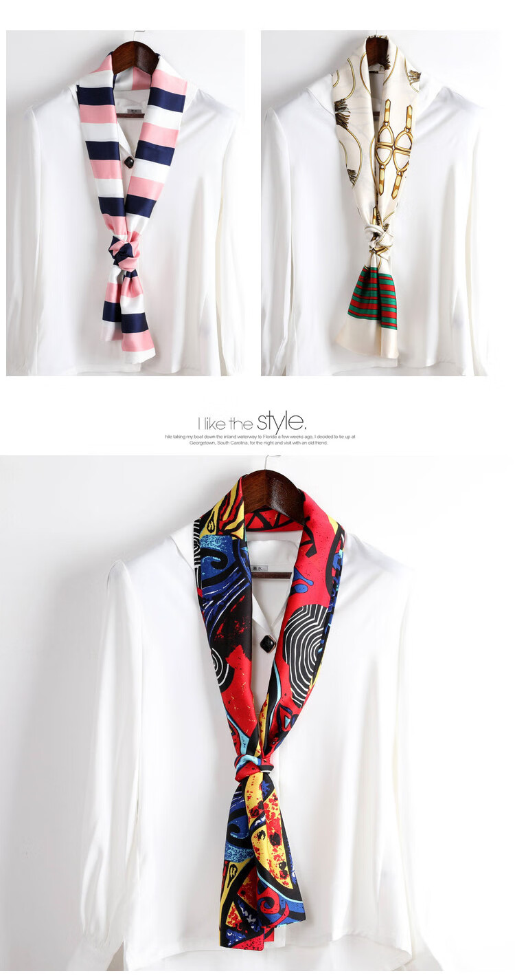 奥义驰小长条窄丝巾女百搭春秋夏季护颈脖子装饰长款薄围巾方巾韩系领巾 015黑米链条 15*145cm