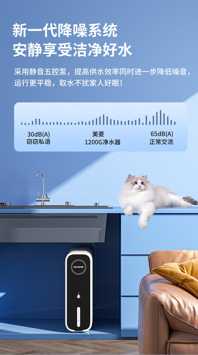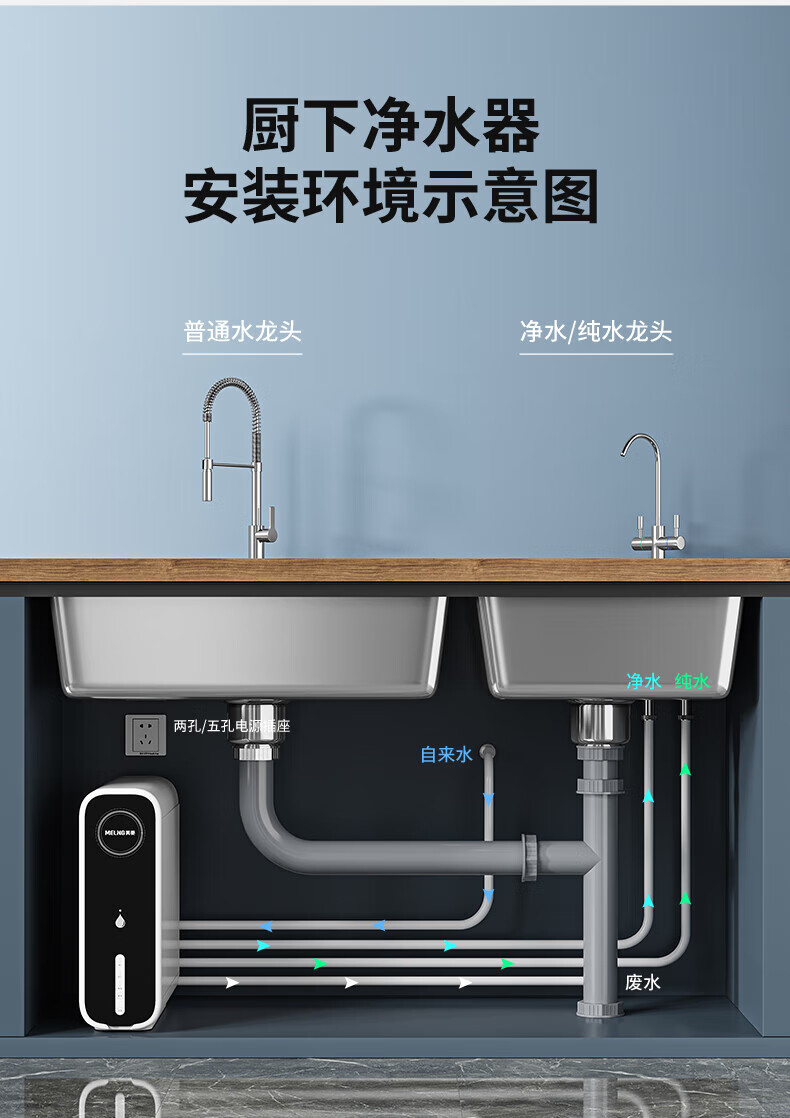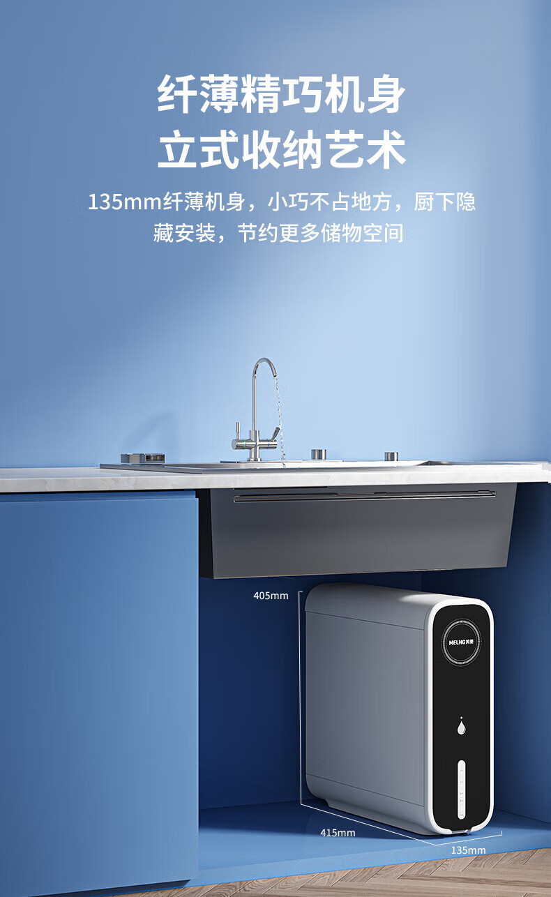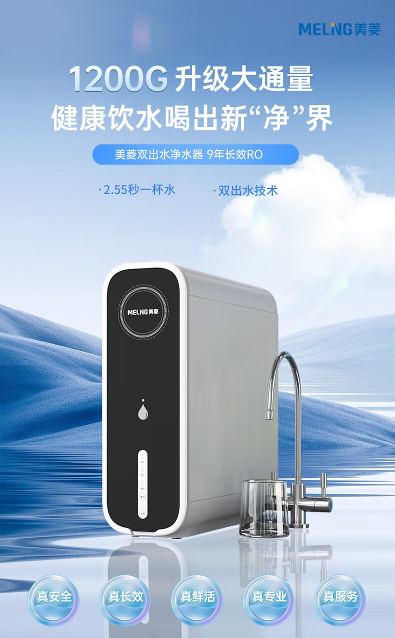 美菱(MeiLing)净水器厨下鲜活水家用净水机1200G升级大通量9年长效RO反渗透直饮机厨下净饮机ML-2R1200 【升级大通道】1200G-上门安装
