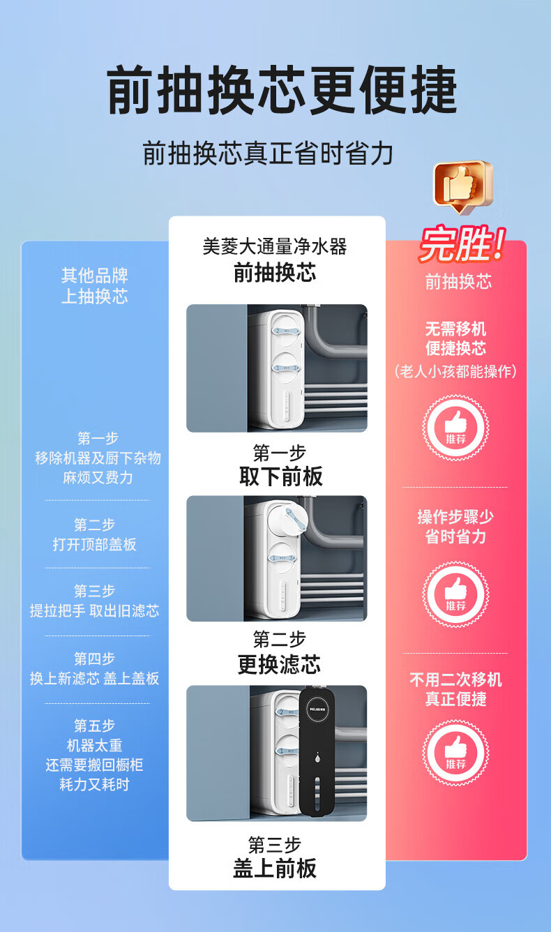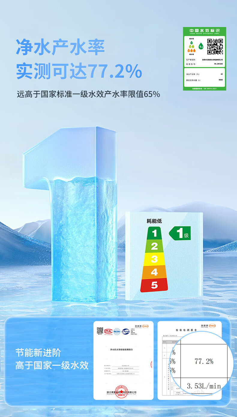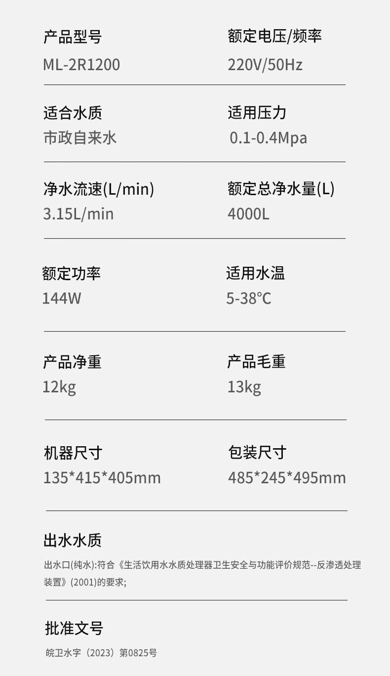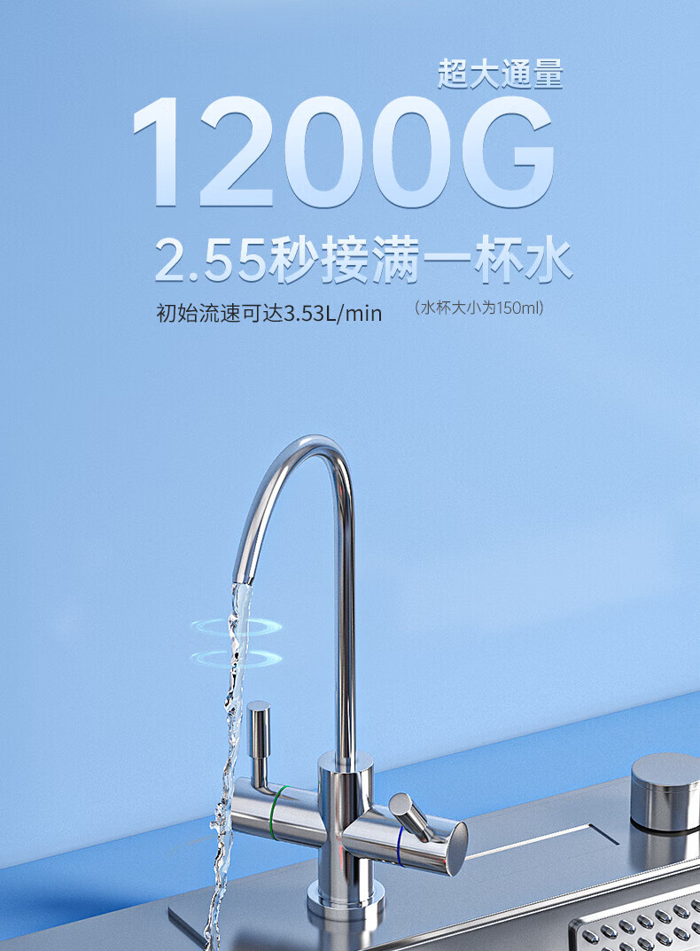美菱(MeiLing)净水器厨下鲜活水家用净水机1200G升级大通量9年长效RO反渗透直饮机厨下净饮机ML-2R1200 【升级大通道】1200G-上门安装