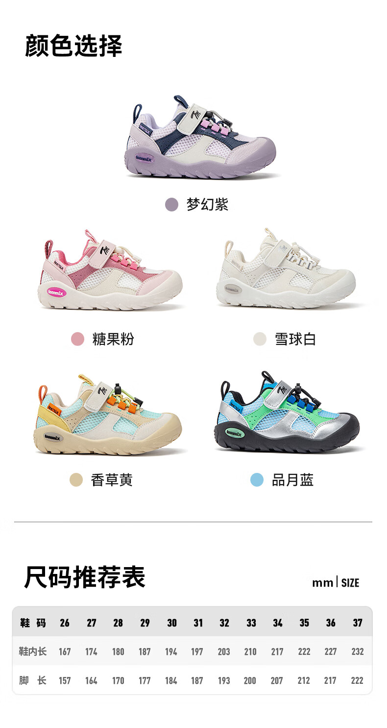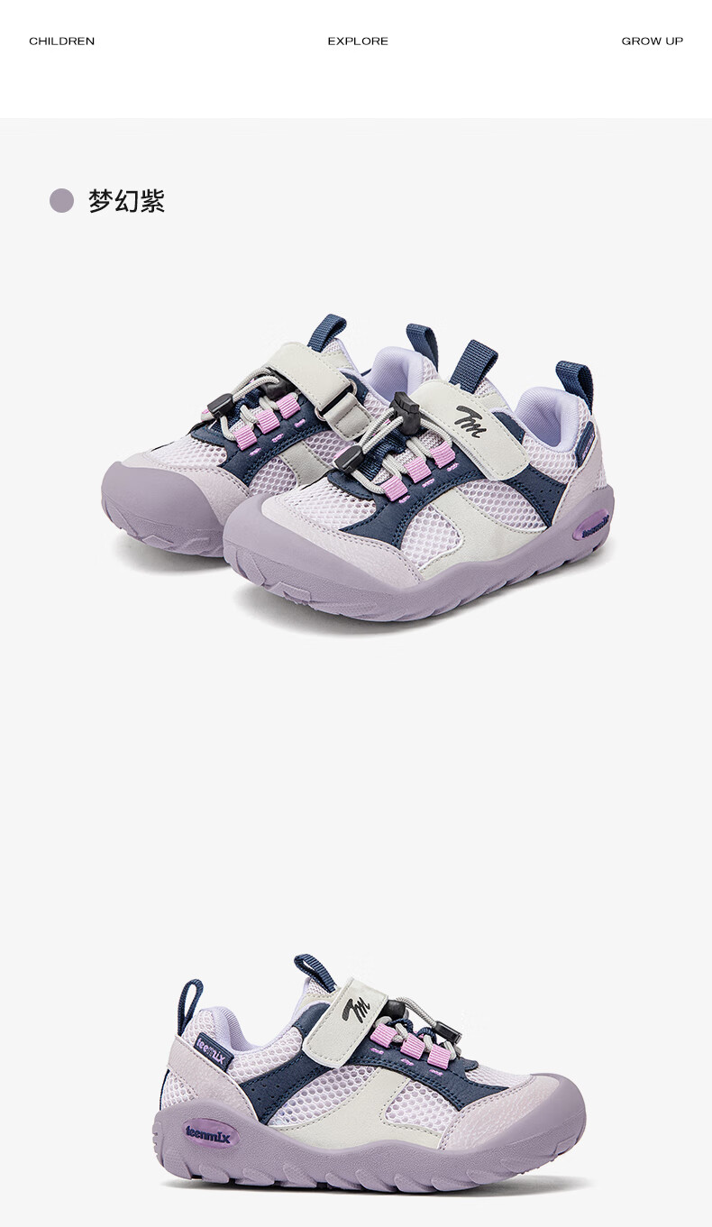TEENMIX天美意儿童2025夏季新款运动鞋男童户外鞋网面透气软底女中大童鞋 梦幻紫 34