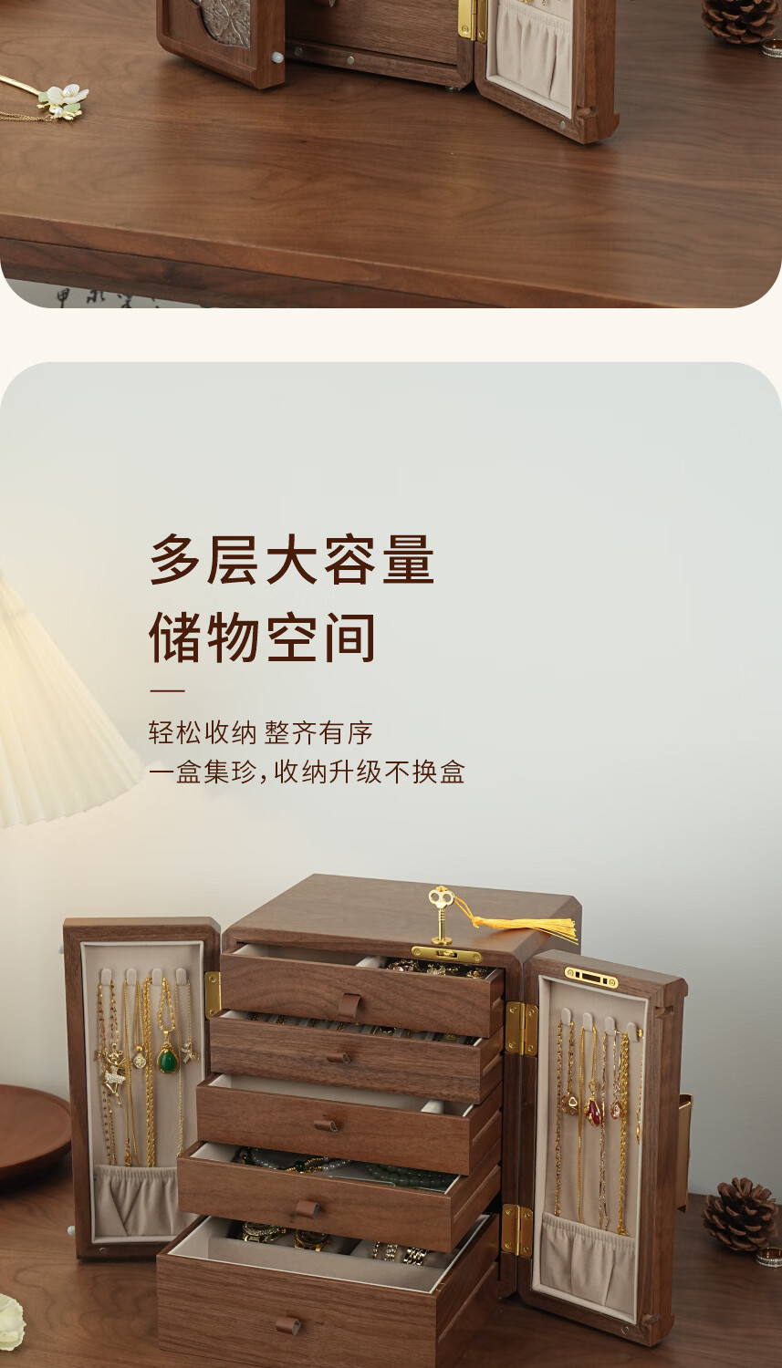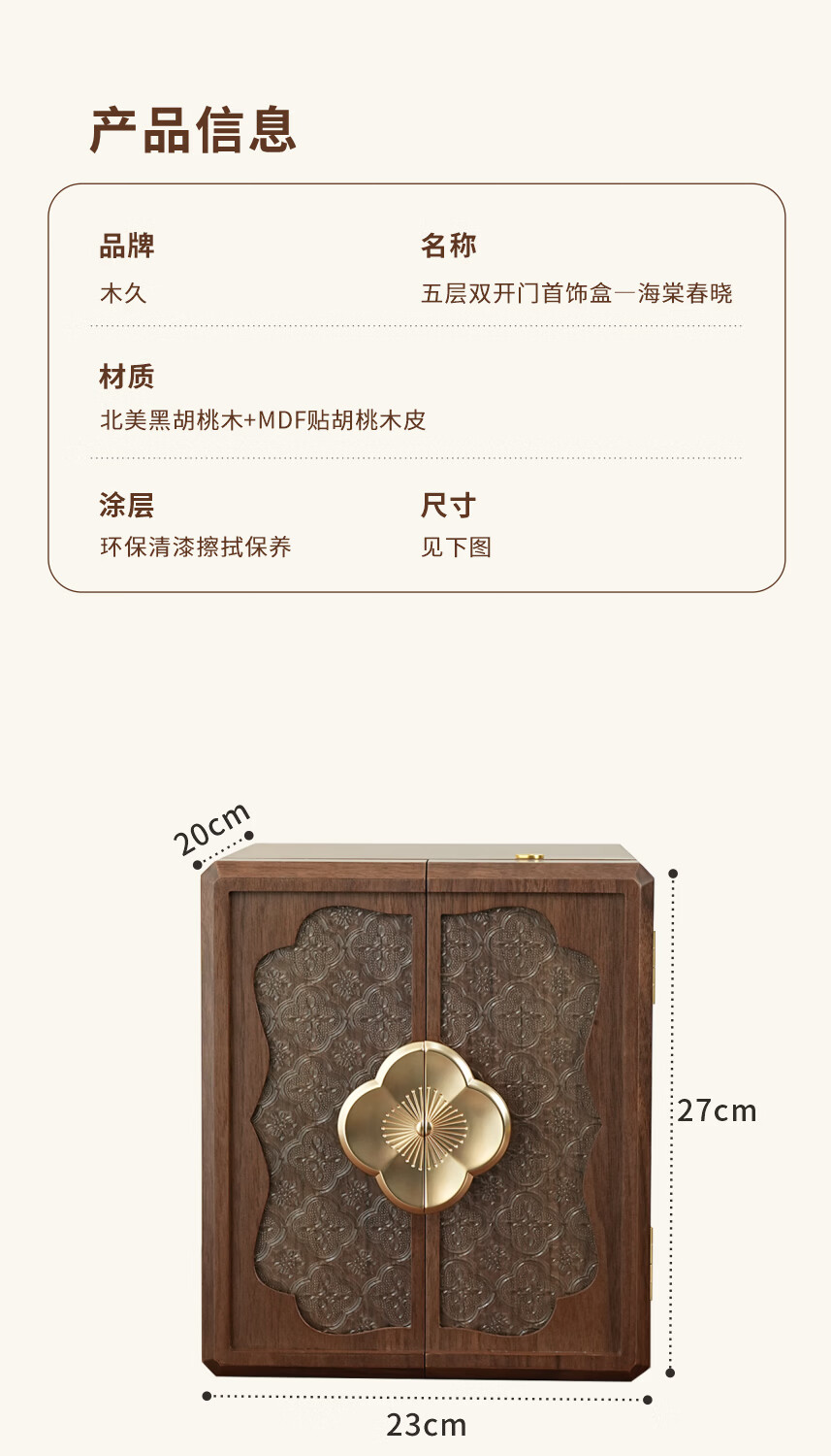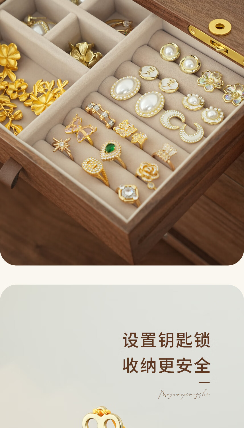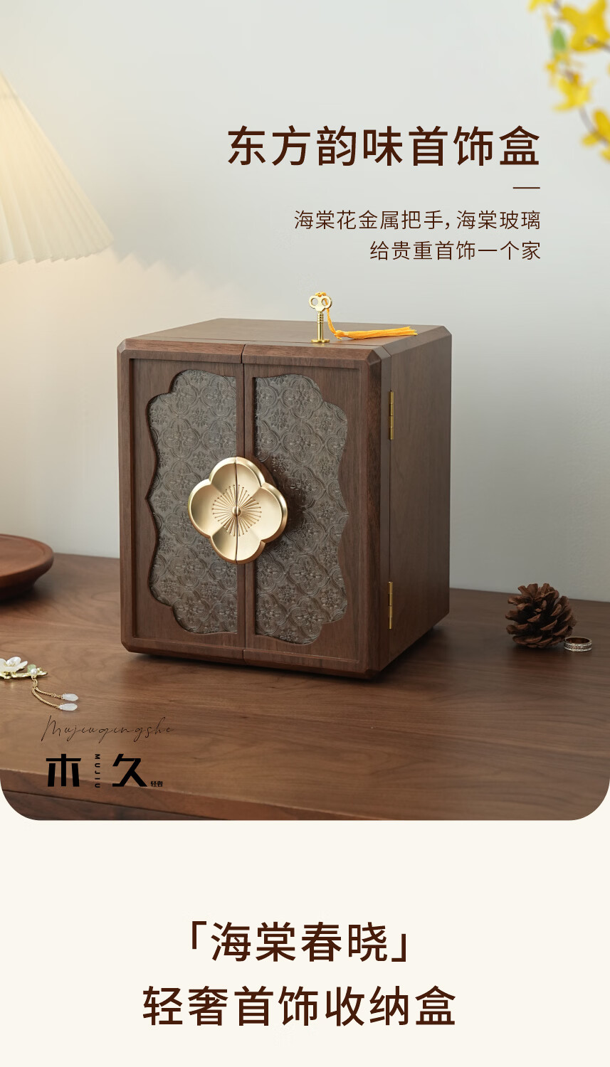 木久首饰盒桌面收纳盒高端轻奢耳环项链珠宝五金梳妆台多层饰品盒 五层首饰盒 海棠蝴蝶款【带锁带礼盒】 首饰盒