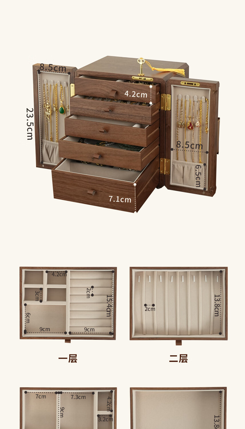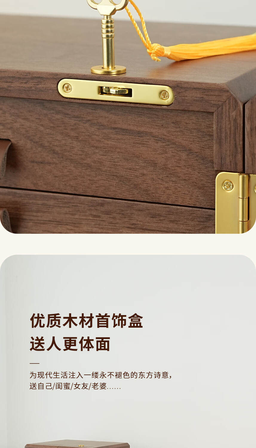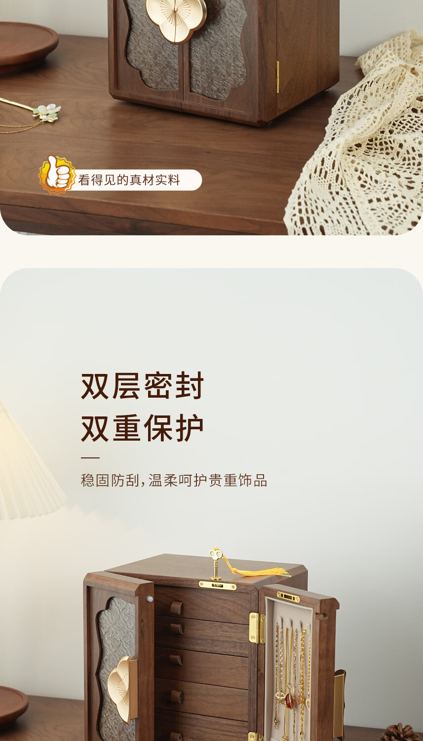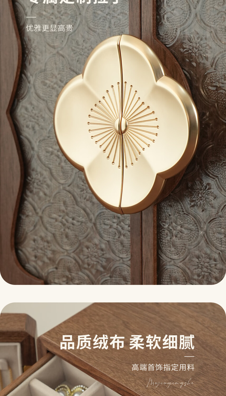 木久首饰盒桌面收纳盒高端轻奢耳环项链珠宝五金梳妆台多层饰品盒 五层首饰盒 海棠蝴蝶款【带锁带礼盒】 首饰盒