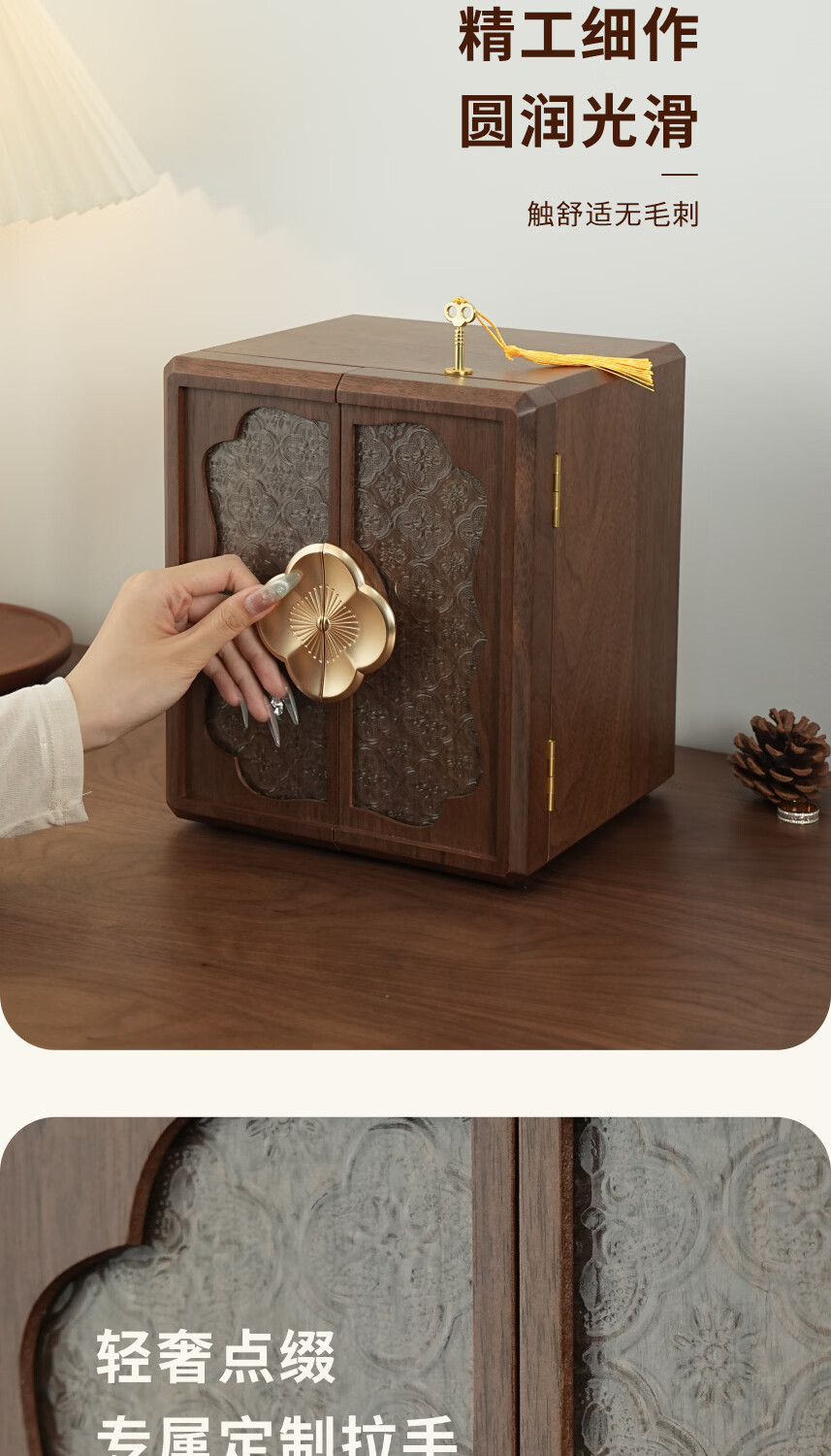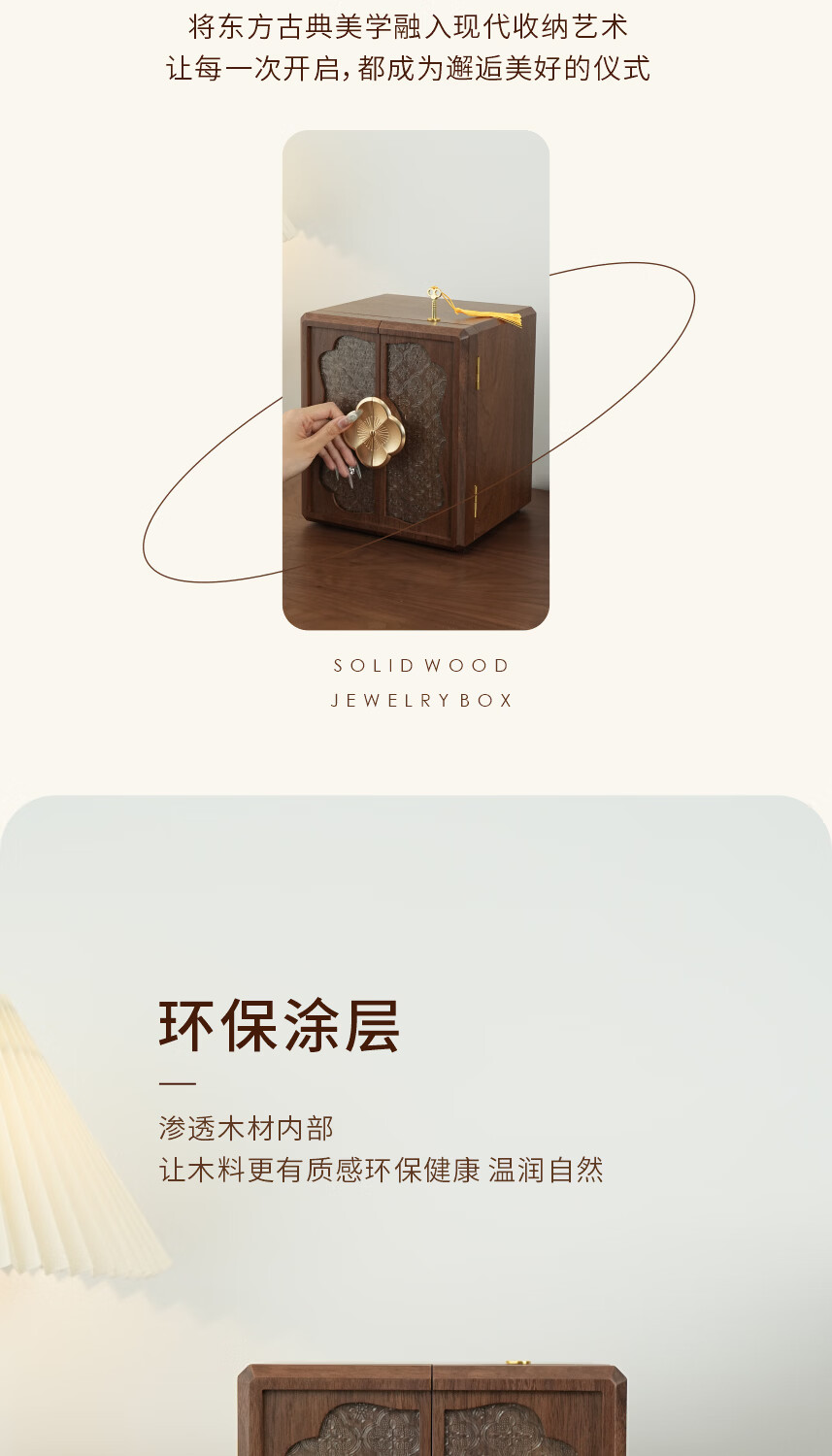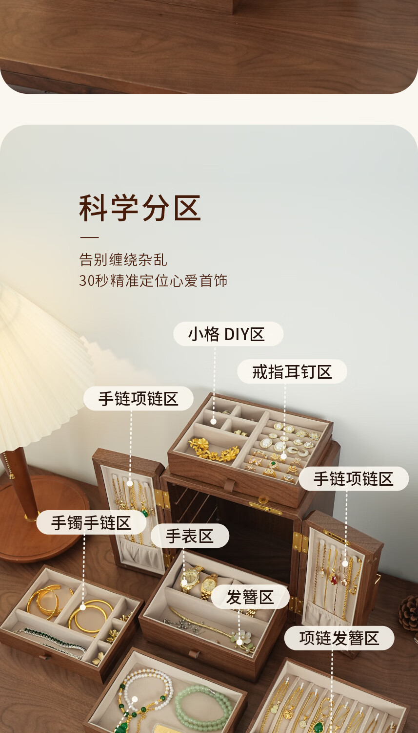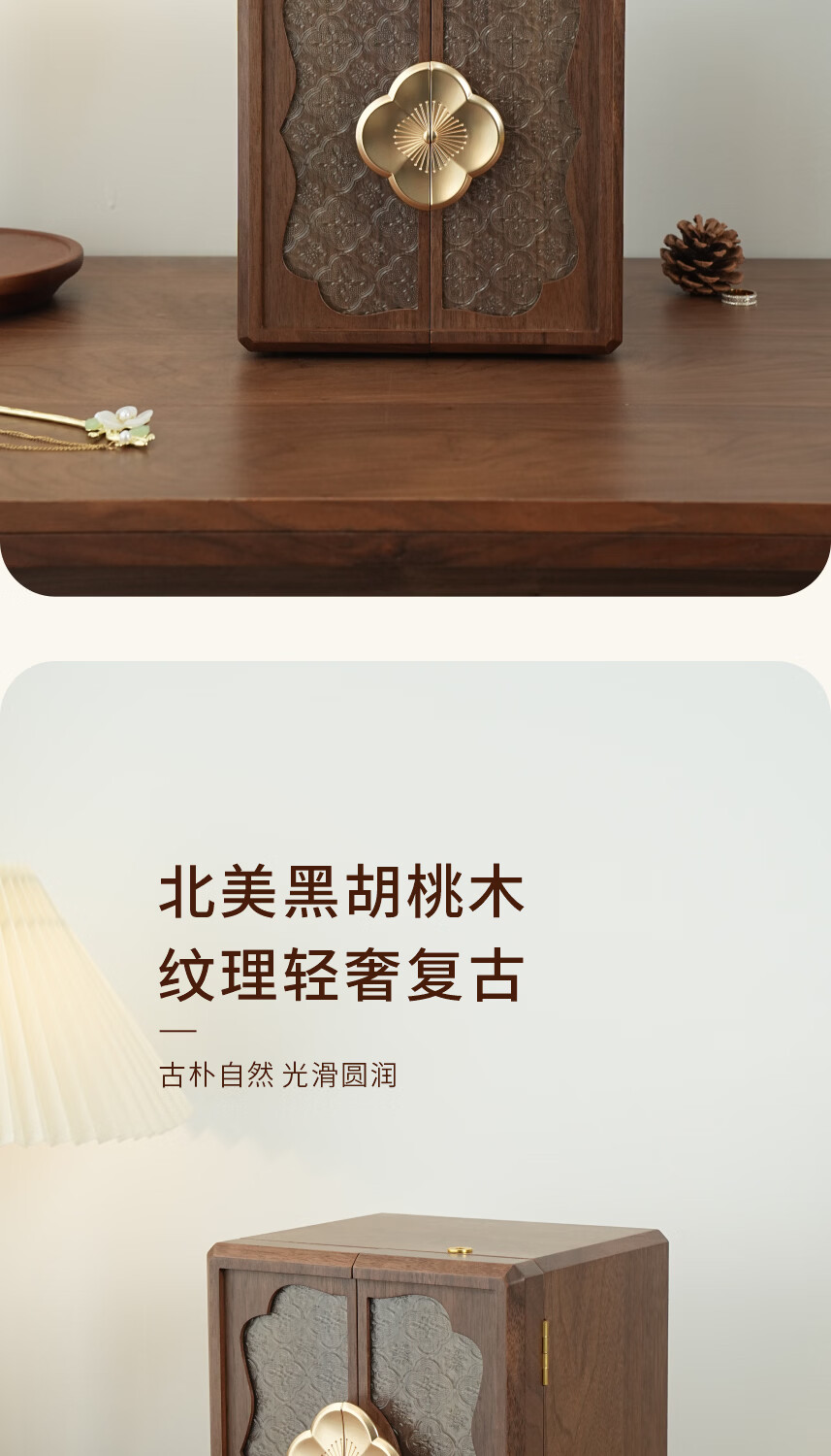 木久首饰盒桌面收纳盒高端轻奢耳环项链珠宝五金梳妆台多层饰品盒 五层首饰盒 海棠蝴蝶款【带锁带礼盒】 首饰盒
