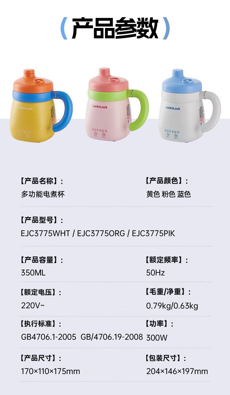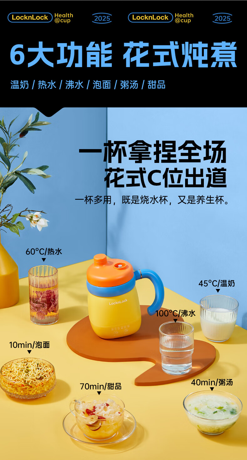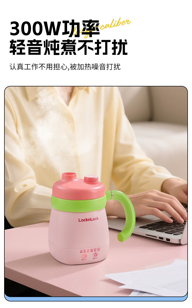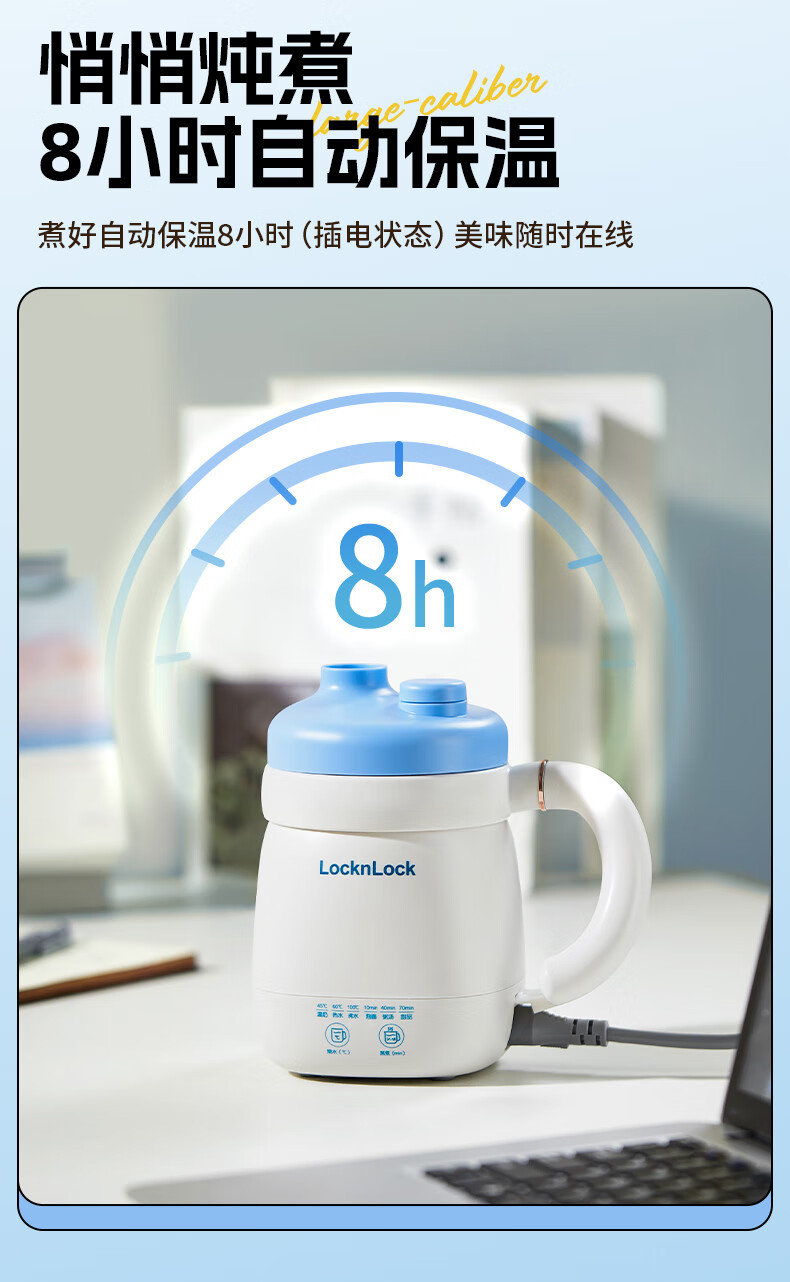 乐扣乐扣养生杯热奶杯便携式烧水壶出差烧水杯户外电热水壶旅行热水壶迷你养生壶小型加热水杯电炖煮杯 0.35L -白色