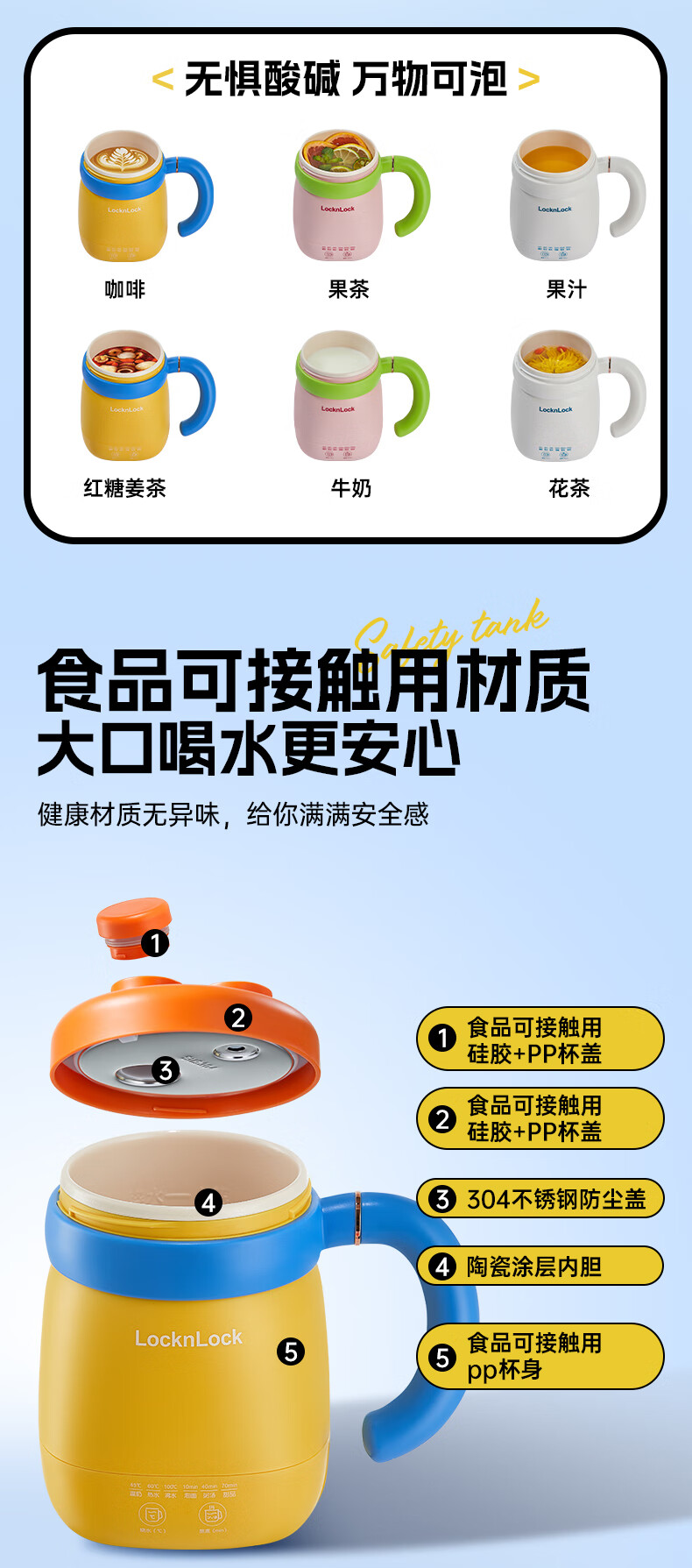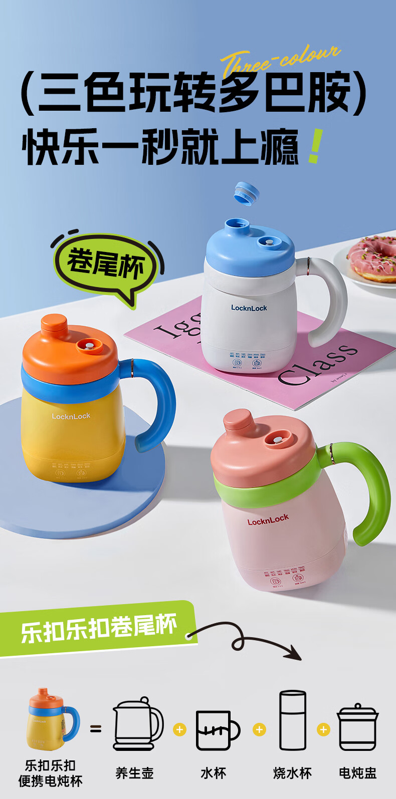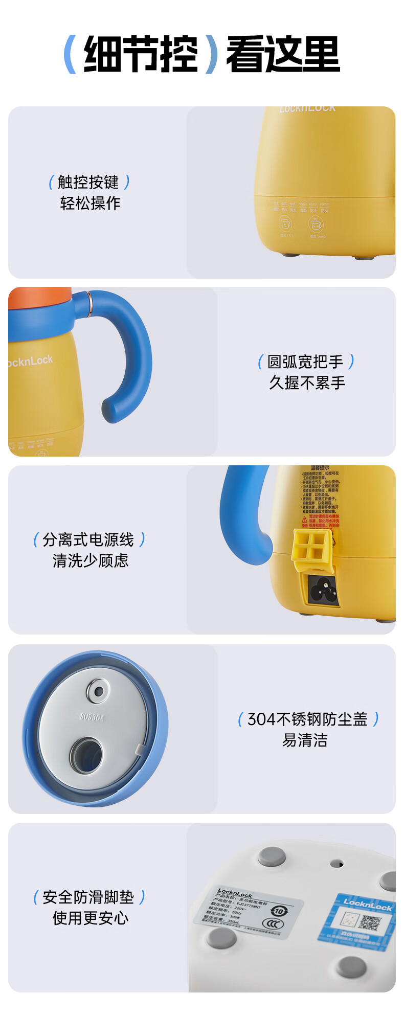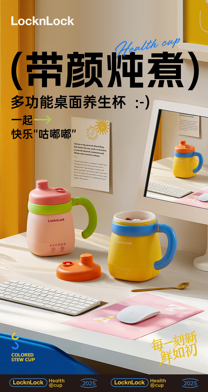 乐扣乐扣养生杯热奶杯便携式烧水壶出差烧水杯户外电热水壶旅行热水壶迷你养生壶小型加热水杯电炖煮杯 0.35L -白色