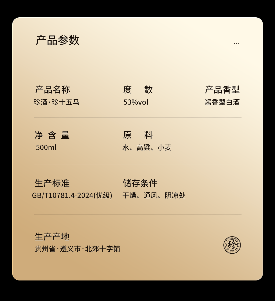 珍酒 珍十五 马年 酱香型白酒 53度 500ml*6瓶 整箱装【年货送礼】