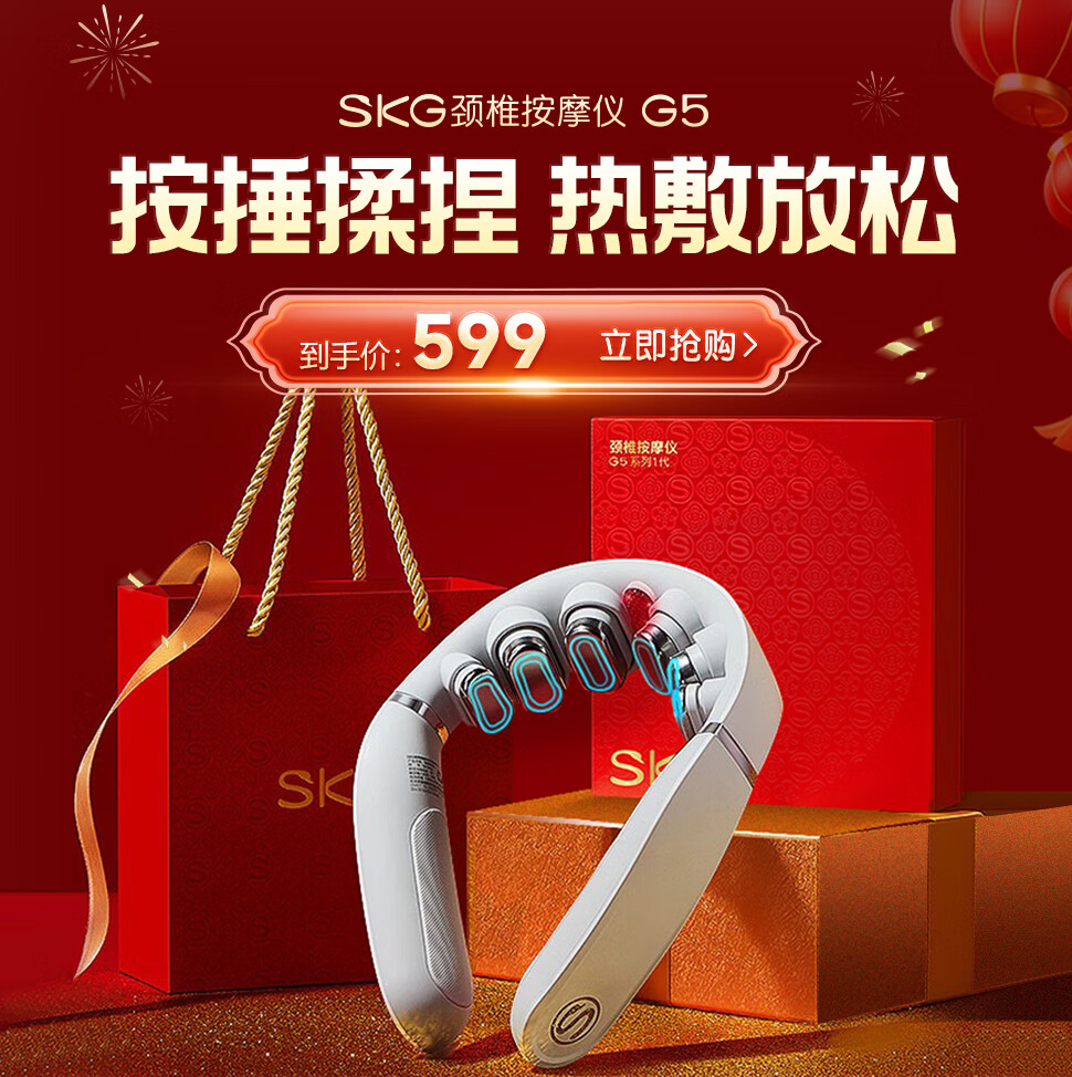 SKG颈椎按摩器G5颈部肩颈按摩仪U型枕脉冲揉捏护颈仪脖子牵引热敷 新年礼物实用送父母亲长辈男女友 【新品爆卖30万+】升级限定礼盒装