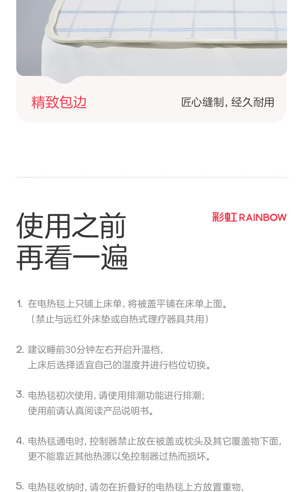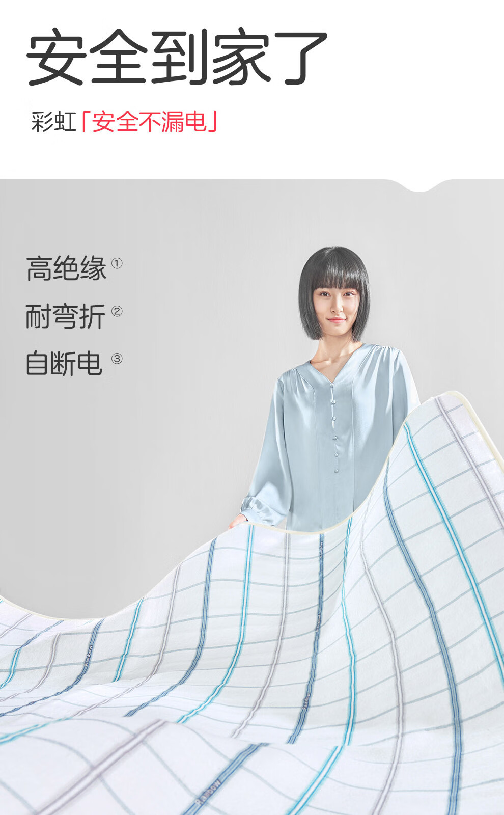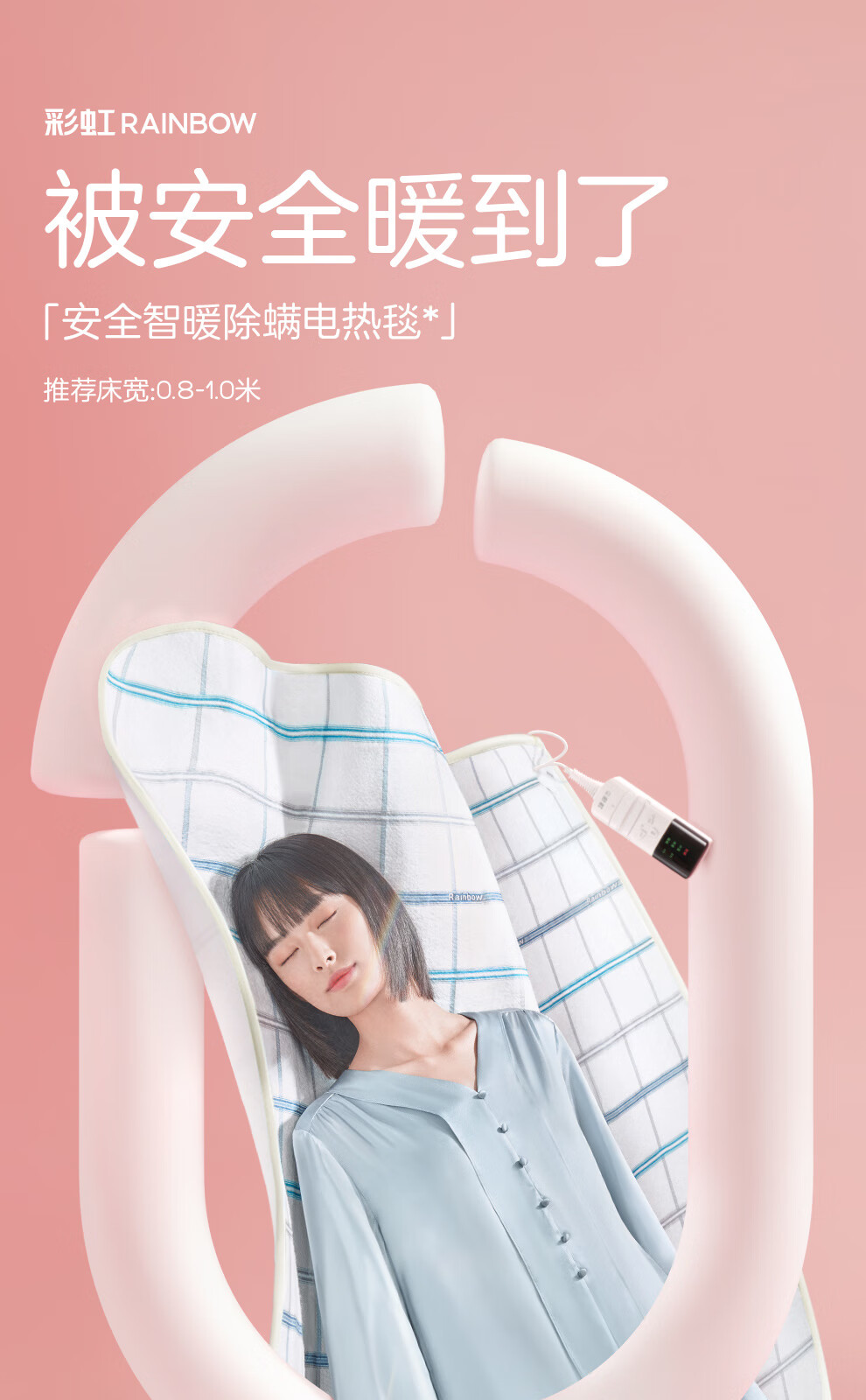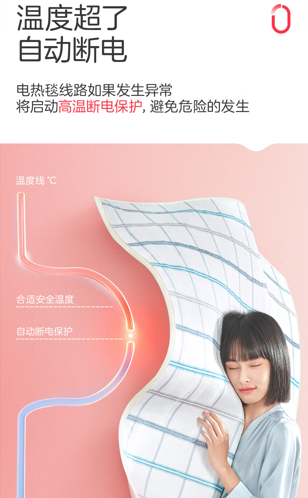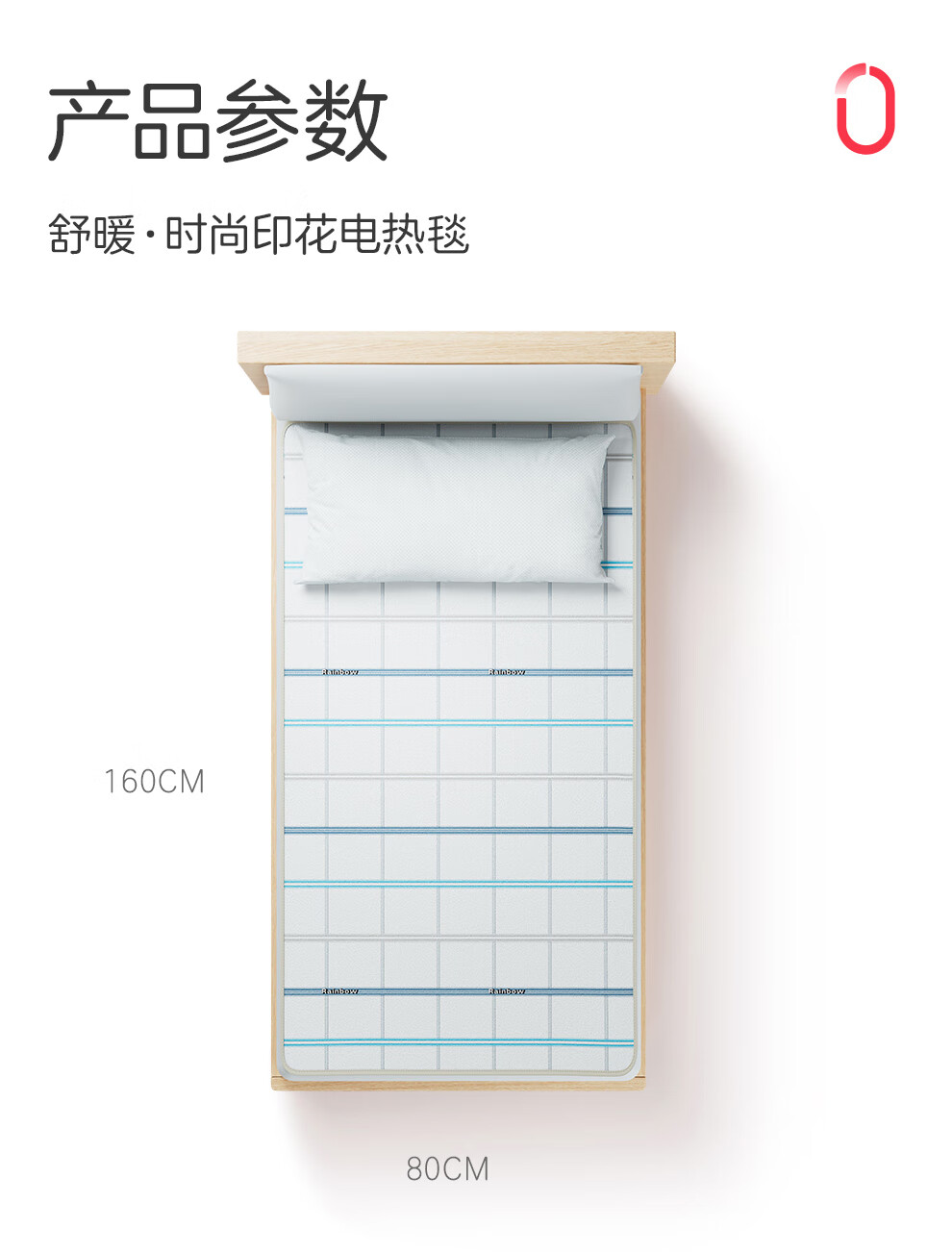 彩虹【高温断电】单人智能定时除螨无纺布电热毯电褥子1.6*0.8米