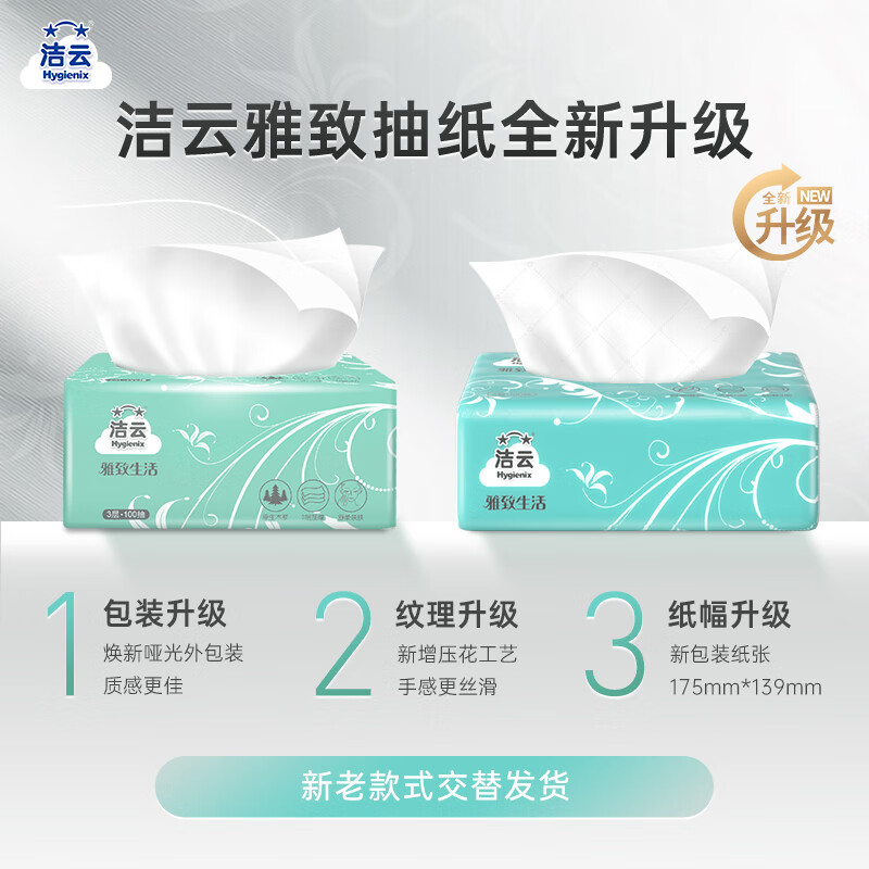 洁云抽纸 雅致生活3层100抽*27包 家用餐厅卫生纸纸巾面巾纸餐巾纸