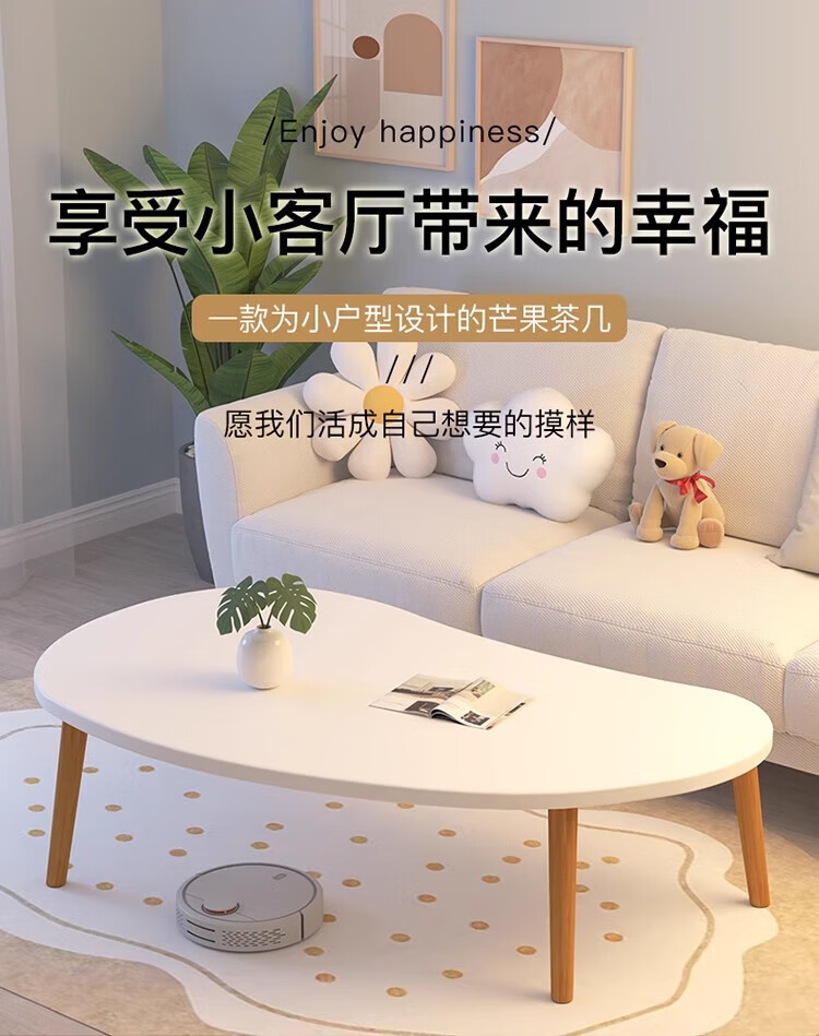 木格格茶几出租屋小户型小桌子北欧客厅家用现代简约奶油风卧室简易边几 【芒果茶几】暖白色60*40*42cm稳固加粗