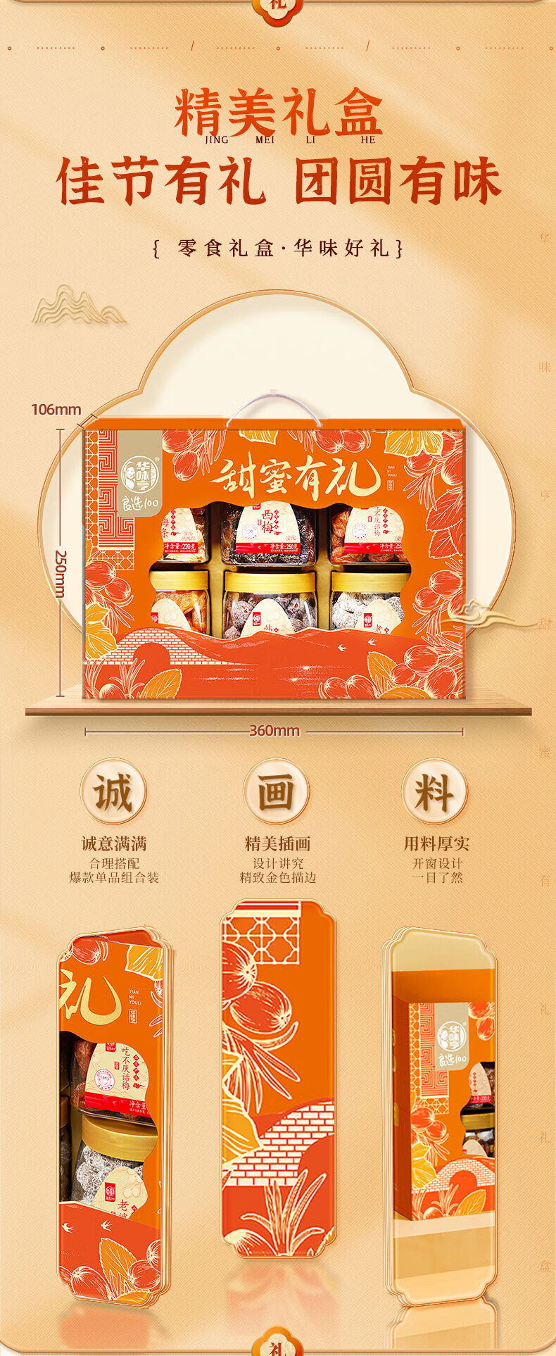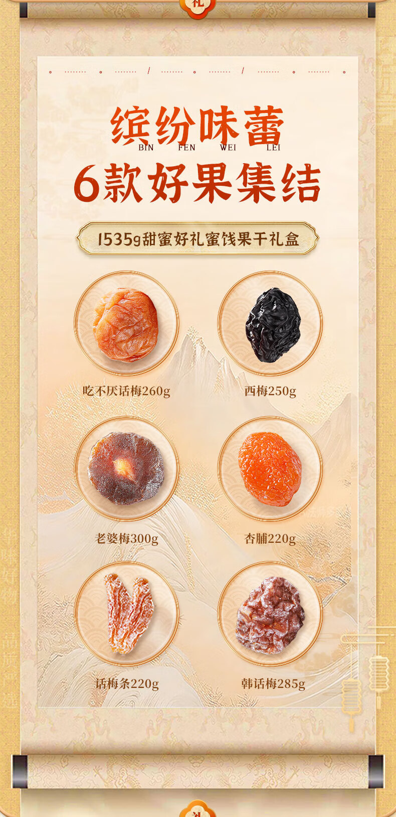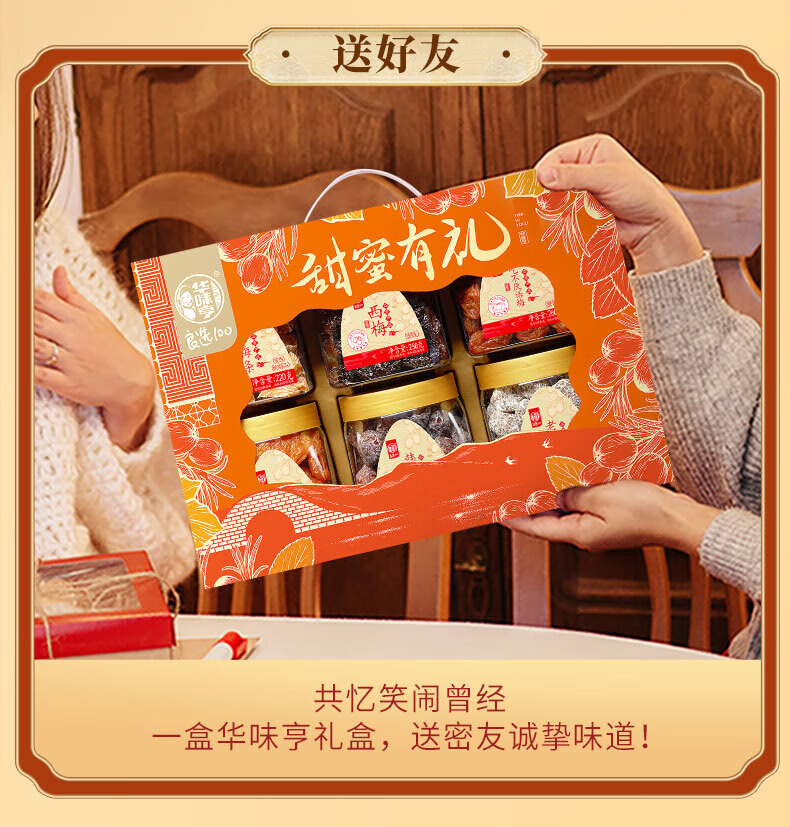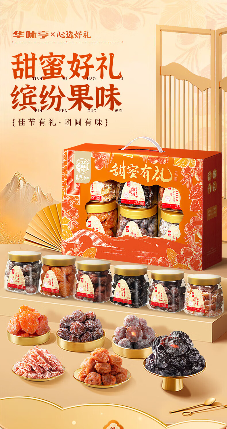 华味亨 甜蜜有礼蜜饯礼盒1535g/6罐 年货果干零食西梅话梅休闲果脯团购 1535g蜜饯礼盒