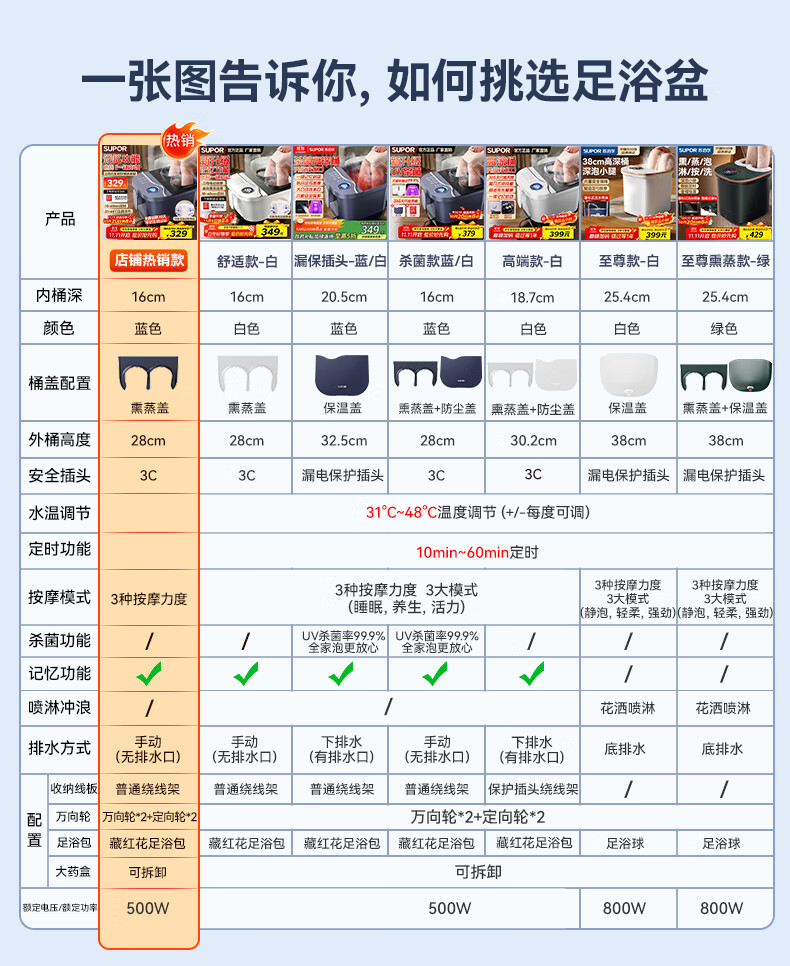 苏泊尔(SUPOR)泡脚桶足浴盆电动洗脚盆加热全自动按摩2025恒温过小腿高深桶女士新年生日礼物实用送妈爸长辈老人