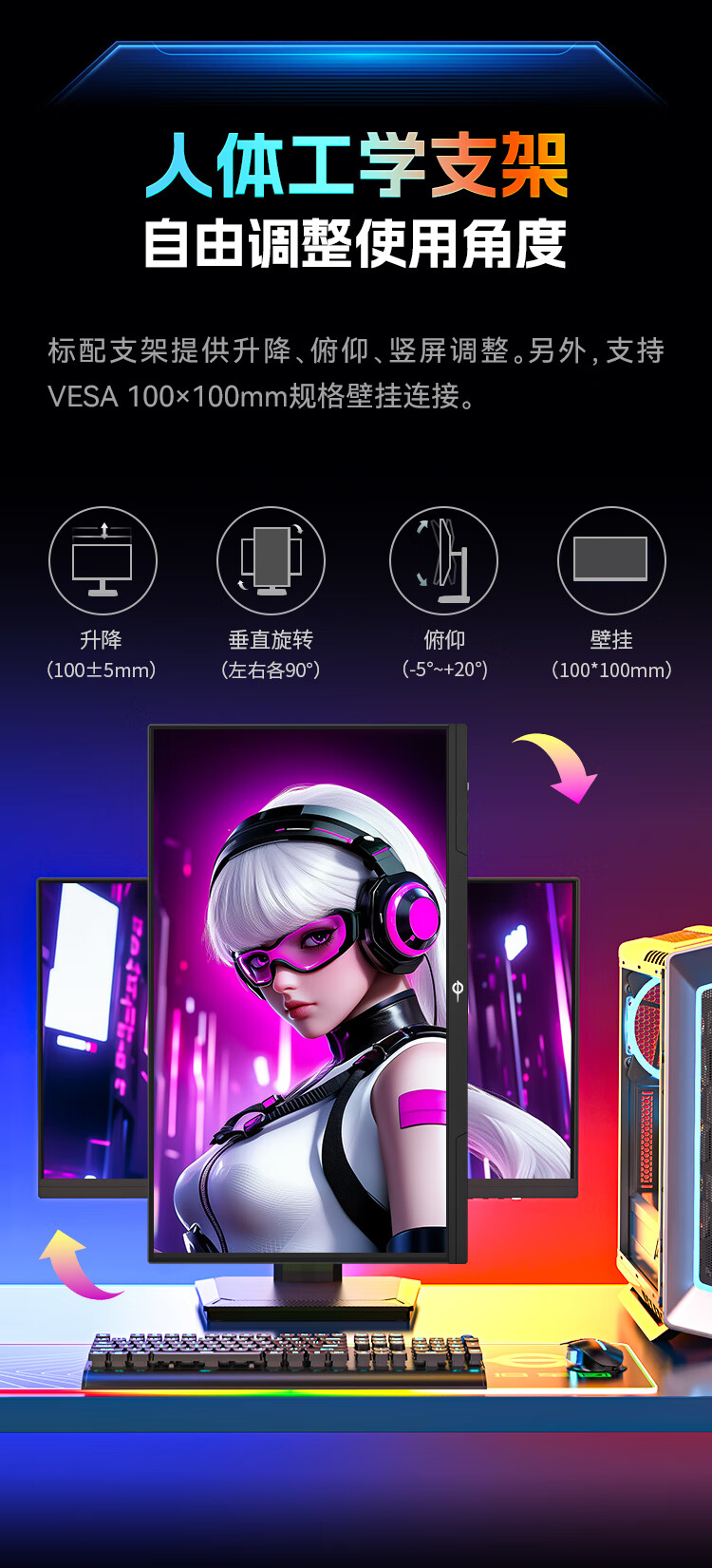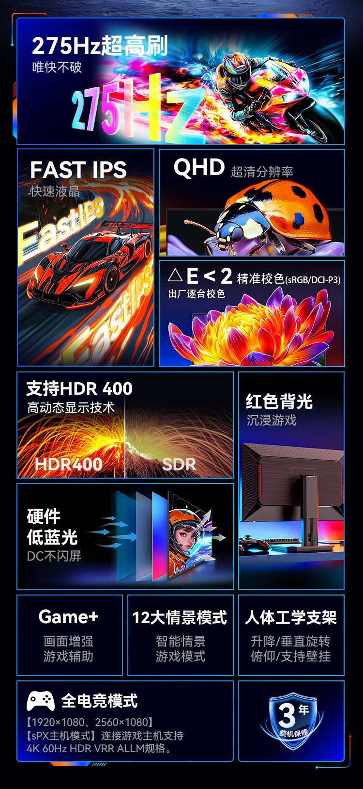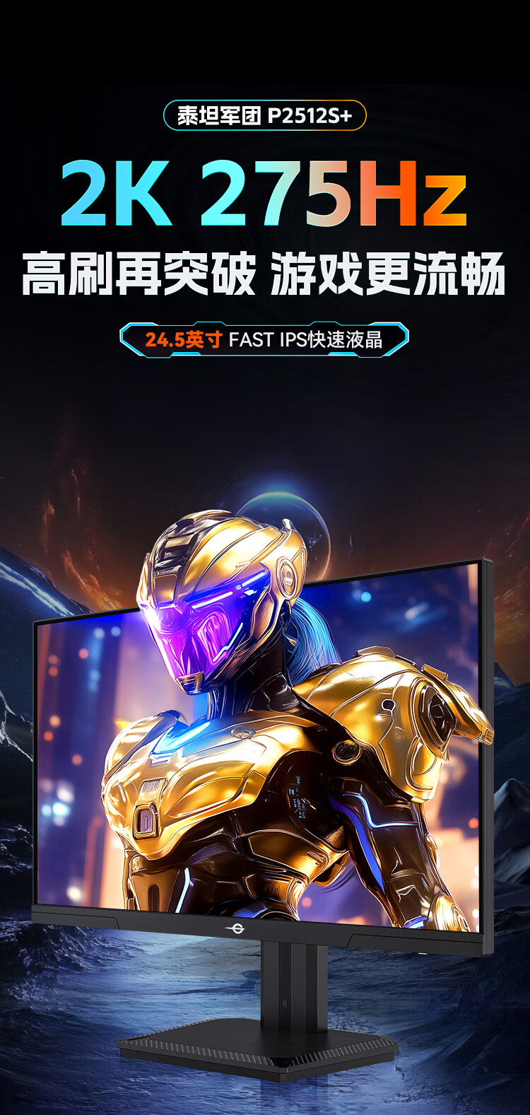 泰坦军团24.5英寸2K 原生275Hz FastIPS HDR400硬件低蓝光 出厂校色 人体工学升降支架 电竞显示器 P2512S+