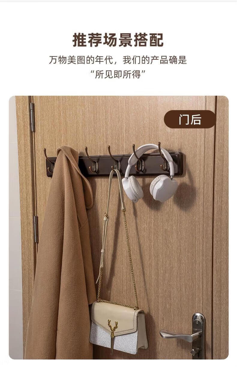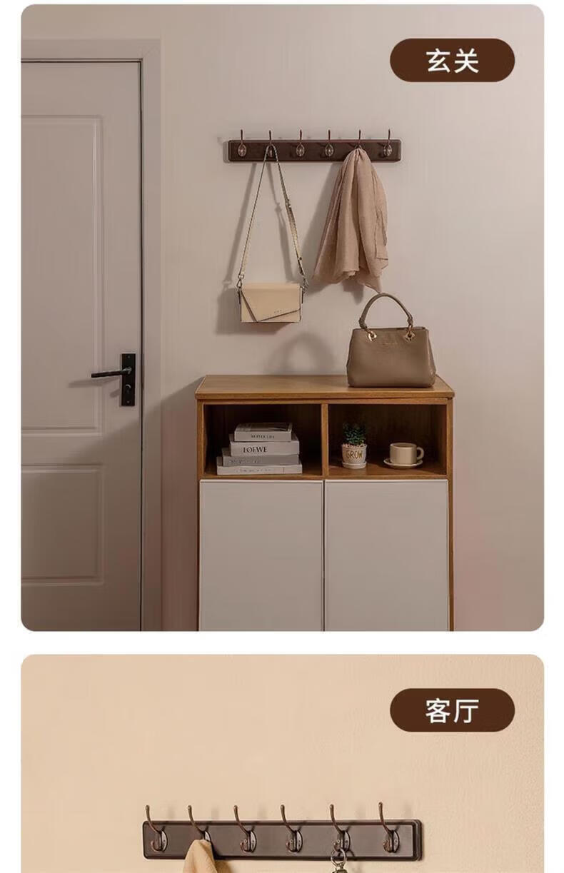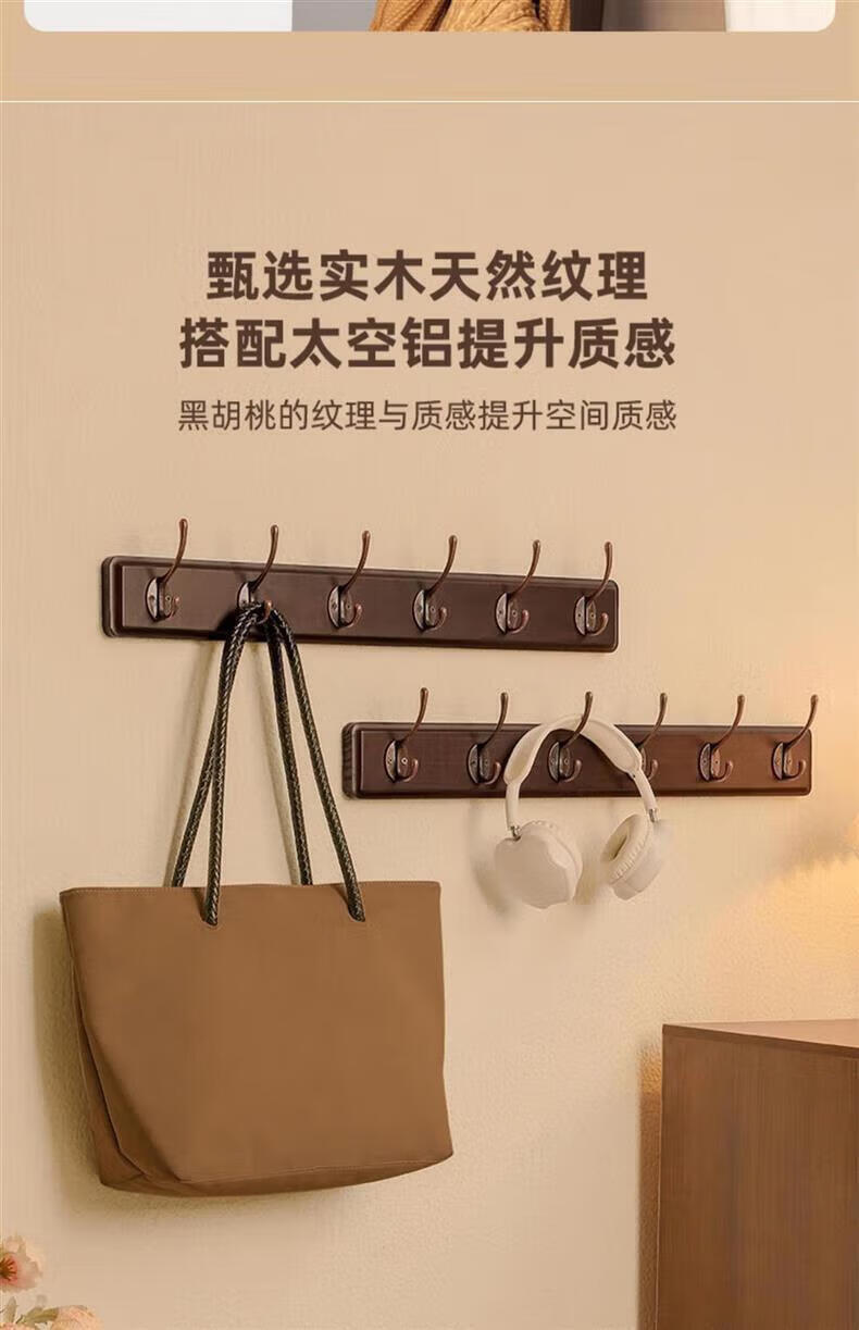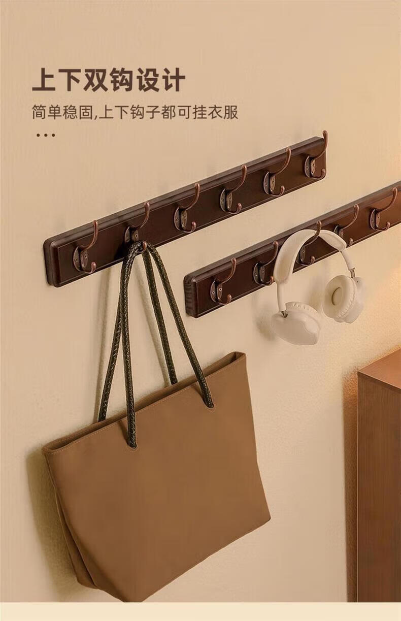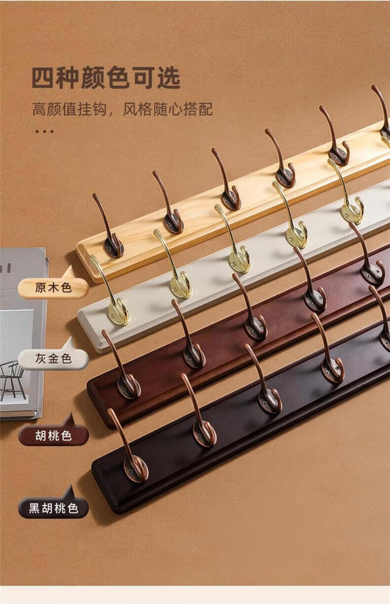 尔思家衣架挂衣服落地卧室挂架墙上免打孔挂衣钩实木晾衣架玄关置物架 浅卡色【4钩】强力承重实木