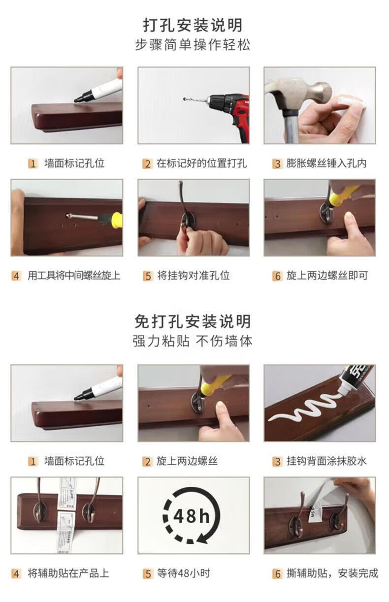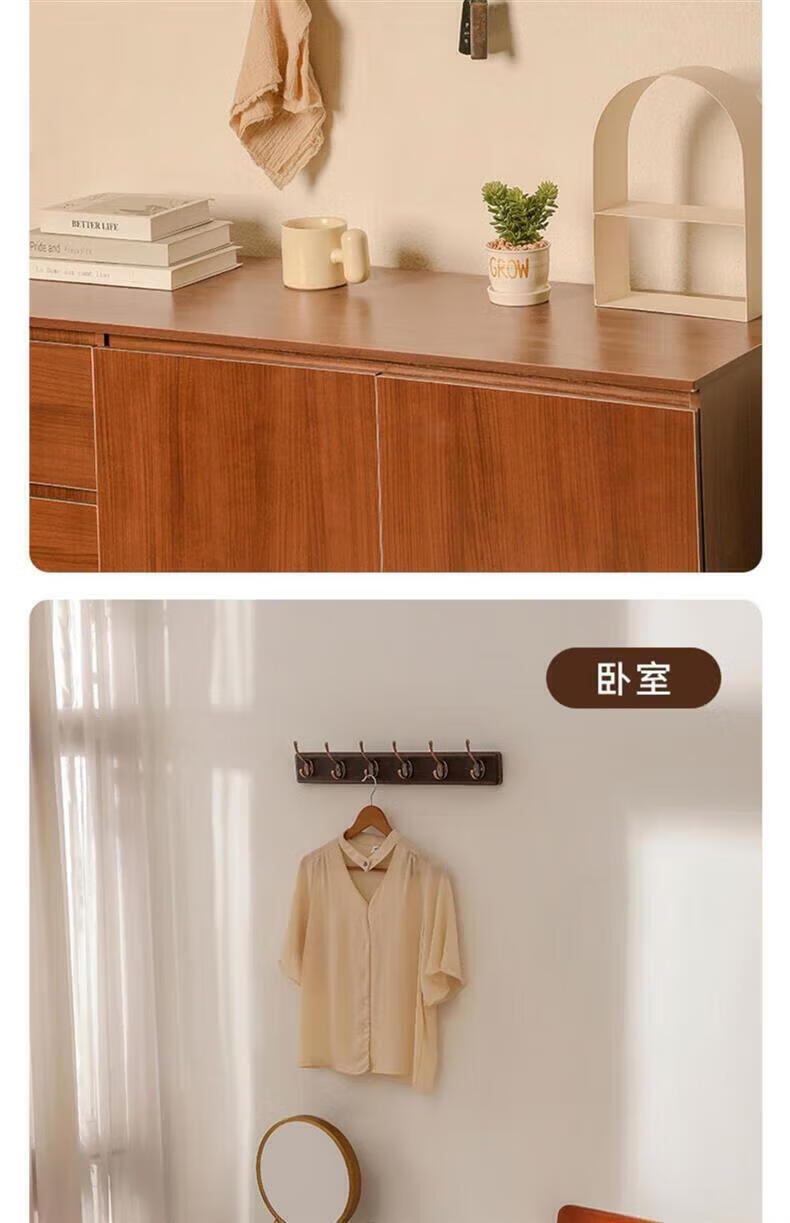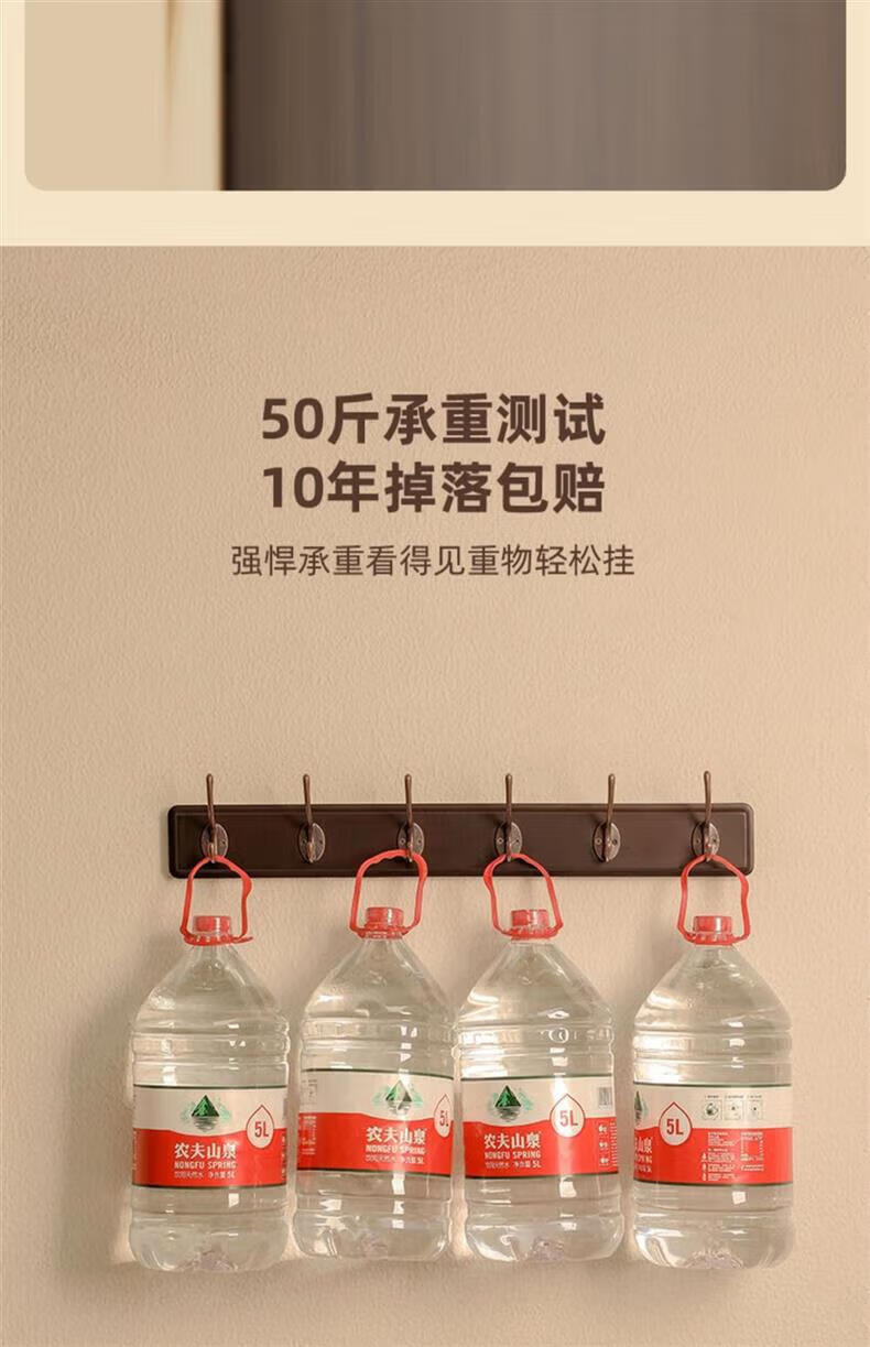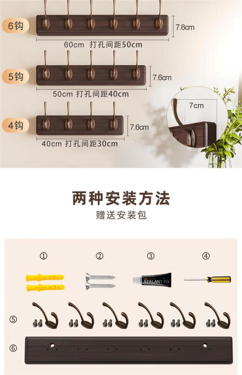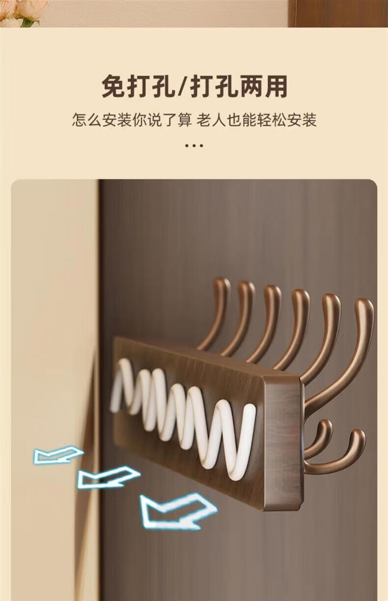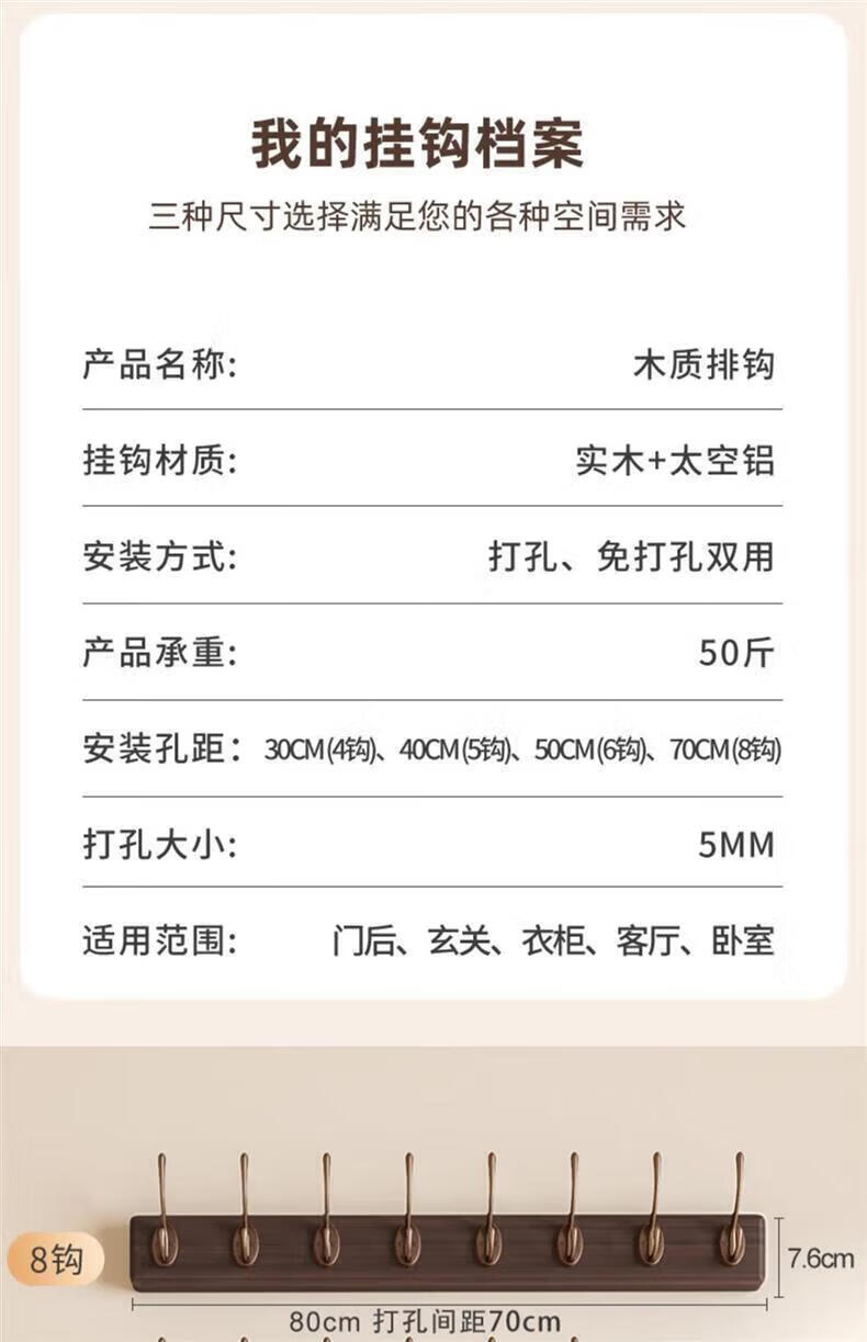 尔思家衣架挂衣服落地卧室挂架墙上免打孔挂衣钩实木晾衣架玄关置物架 浅卡色【4钩】强力承重实木