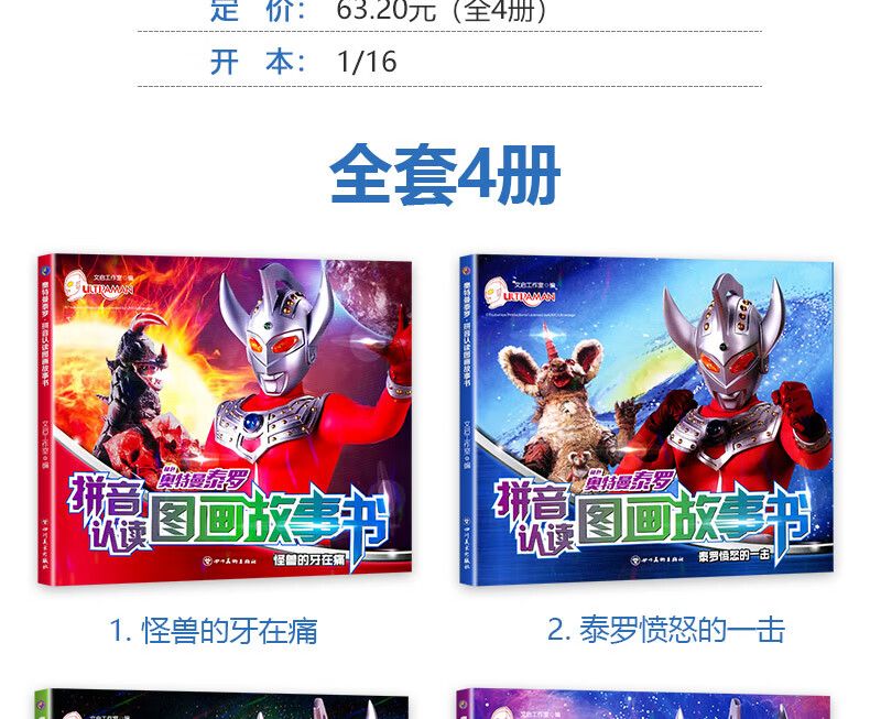 奥特曼泰罗拼音认读图画故事书(套装全4册)彩图注音版 无颜色 无规格