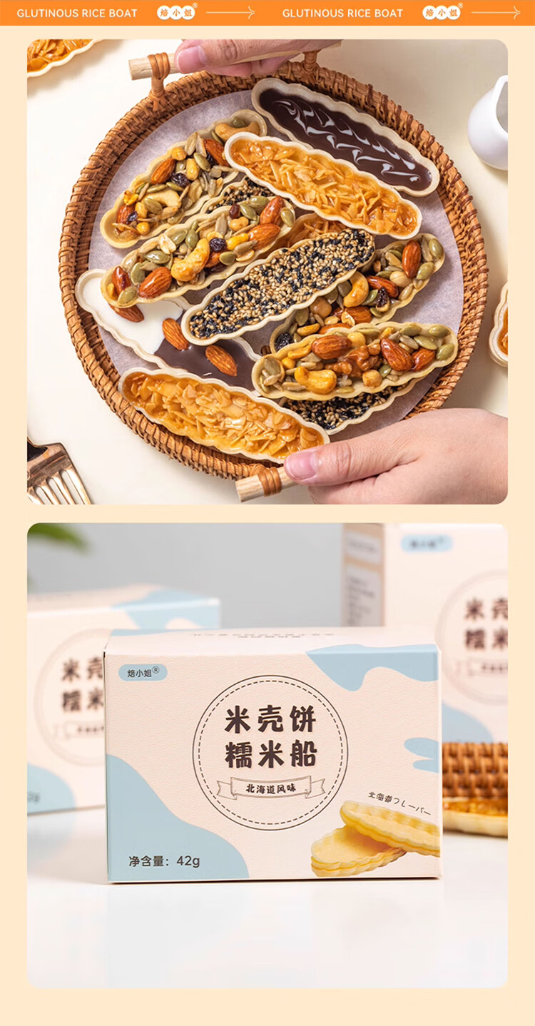 焙小姐【2盒装】大号糯米船壳 坚果杏仁焦糖半成品烘焙材料家用商用60只