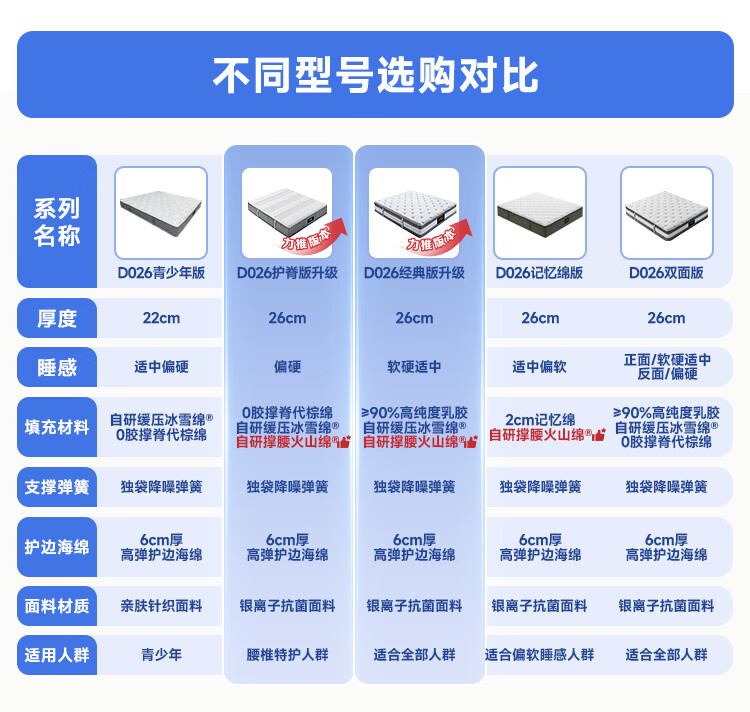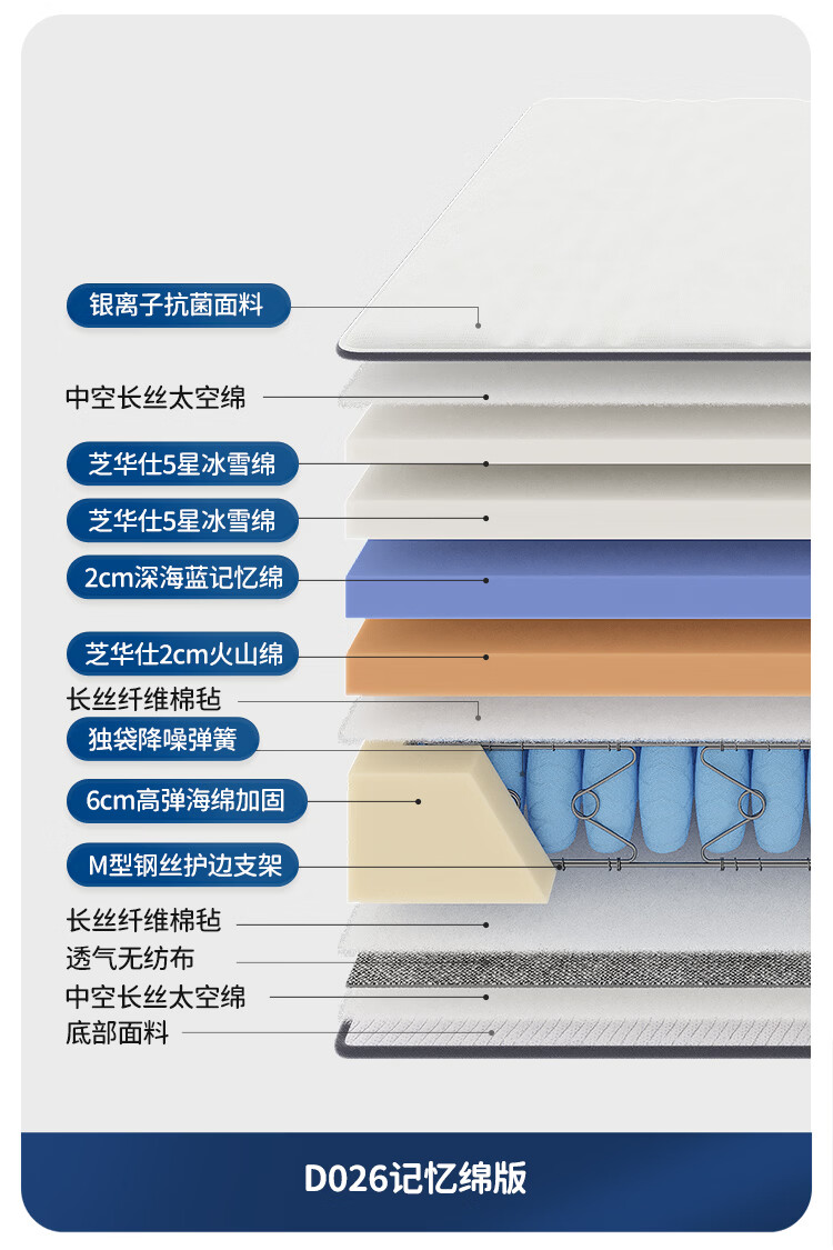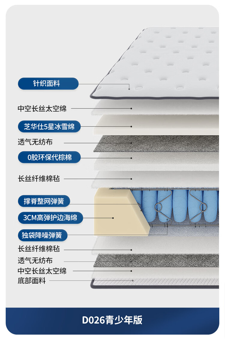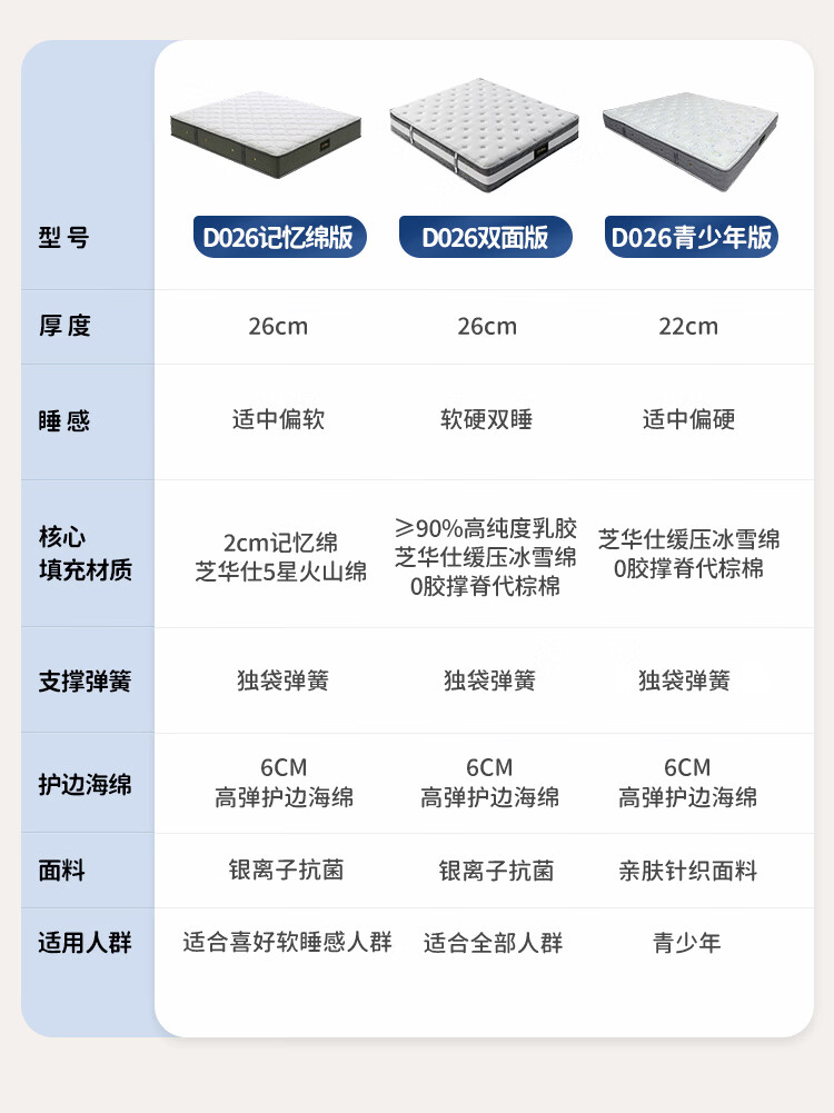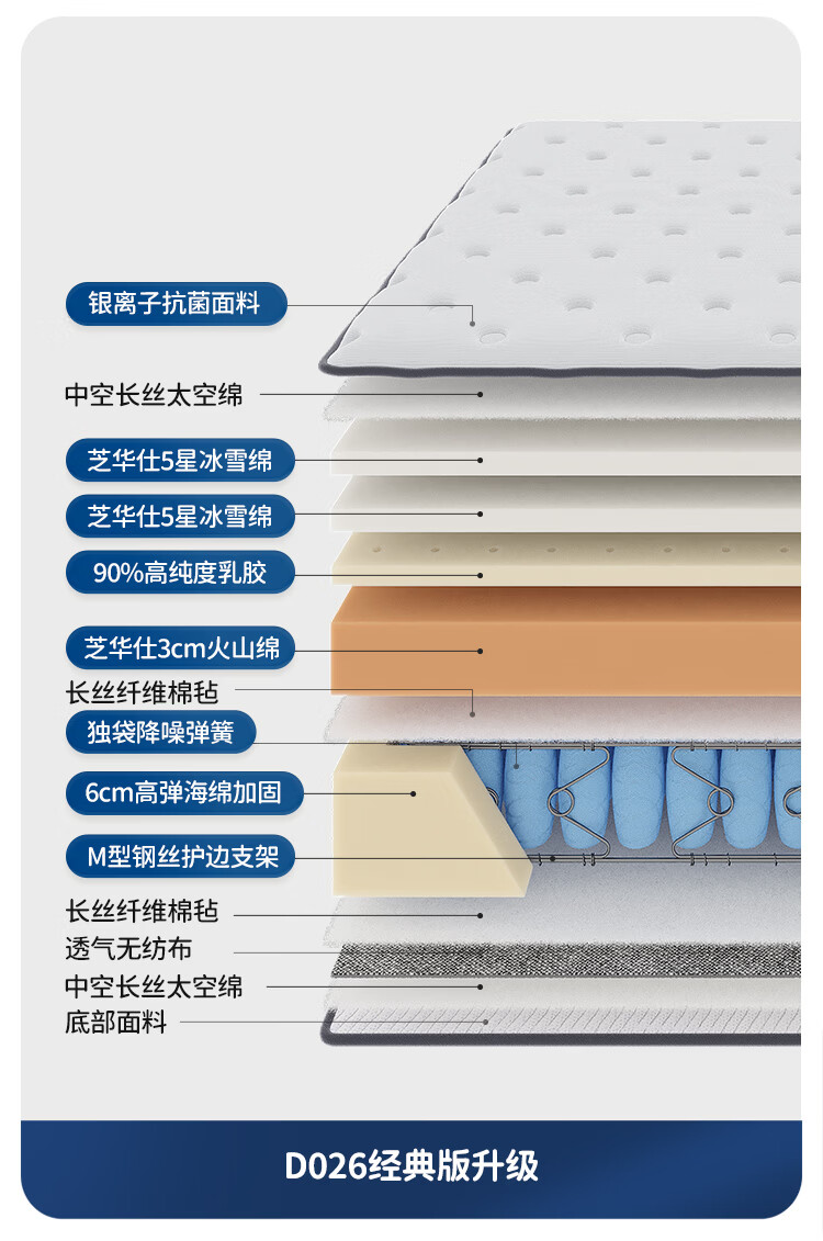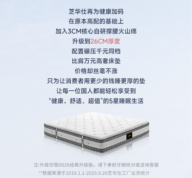 芝华仕床垫D026明星垫0胶撑脊代棕棉独袋弹簧席梦思家用1.8x2米睡感偏硬