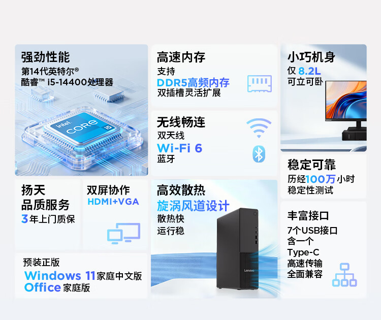 联想扬天M4000q 商用办公台式电脑台式机主机(14代i5-14400 16G DDR5 1TB)单主机 国家补贴