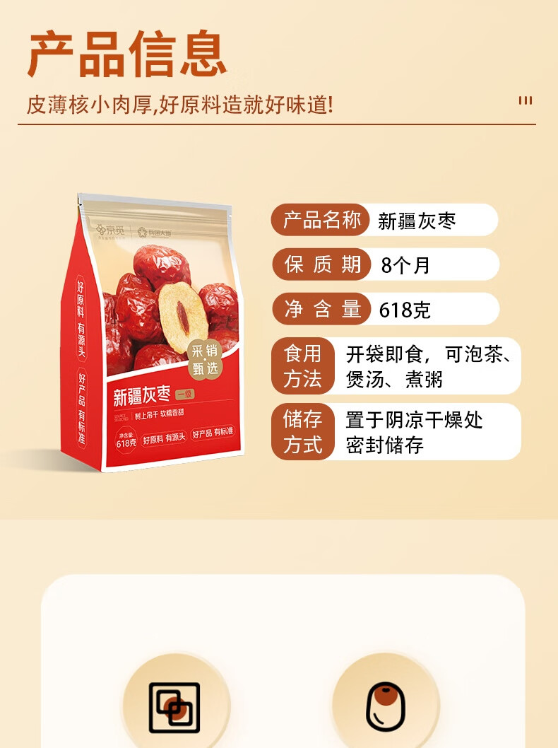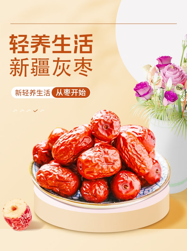 京觅【新疆红枣】兵团大地新疆灰枣一级618g 新疆特产免洗即食