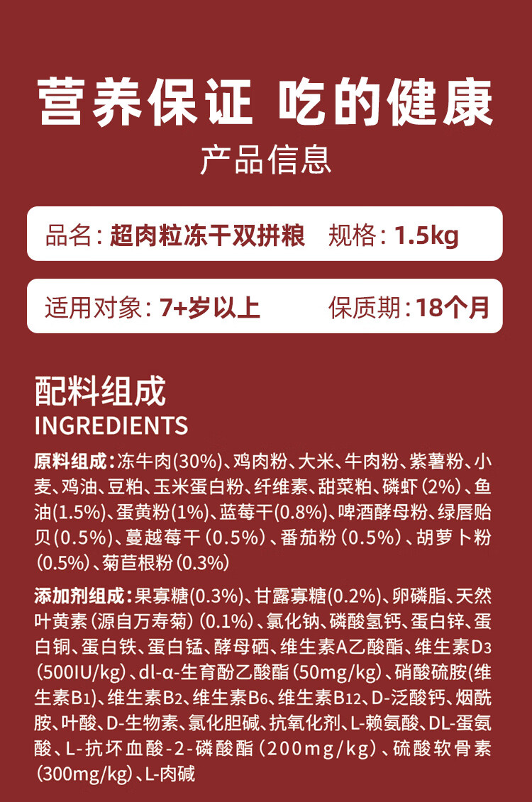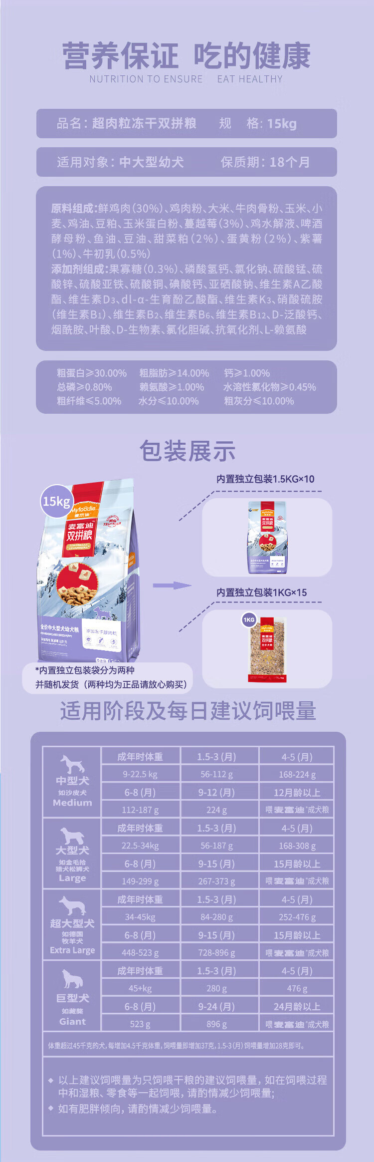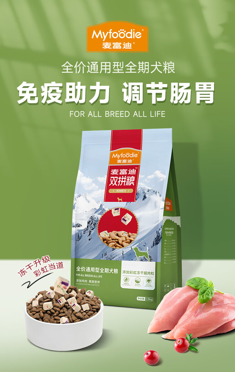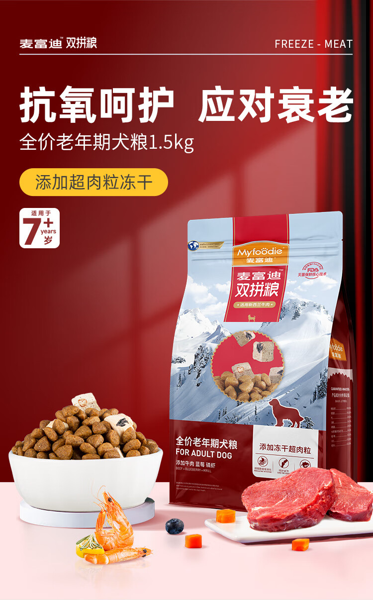 麦富迪冻干狗粮 超肉粒冻干双拼粮 中大型犬全期犬粮15kg
