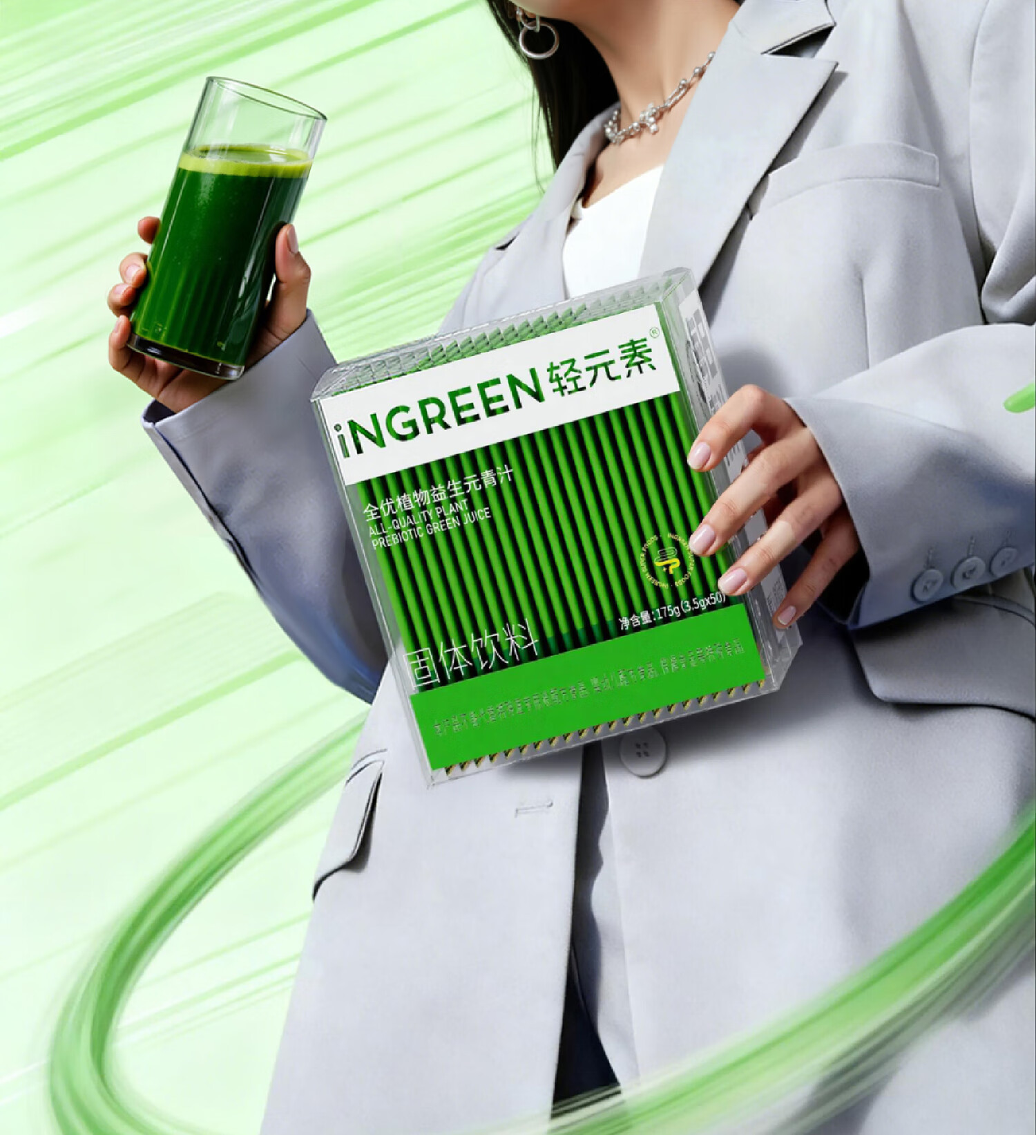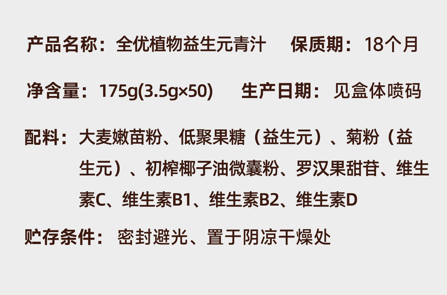 轻元素益生元青汁3.5g*50条大麦若叶青汁粉高膳食纤维代餐粉早餐冲饮