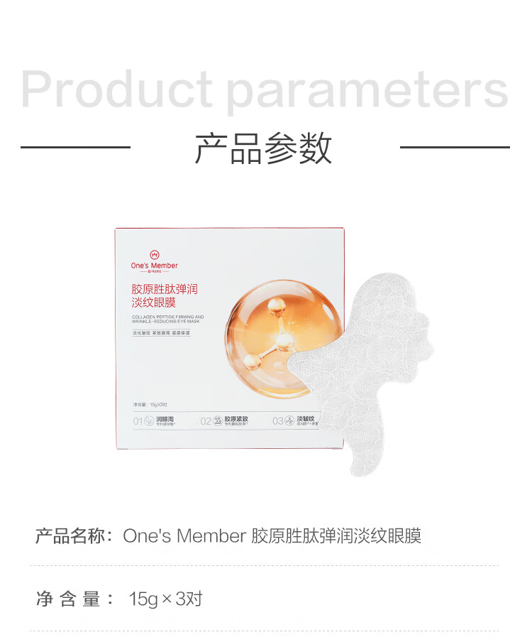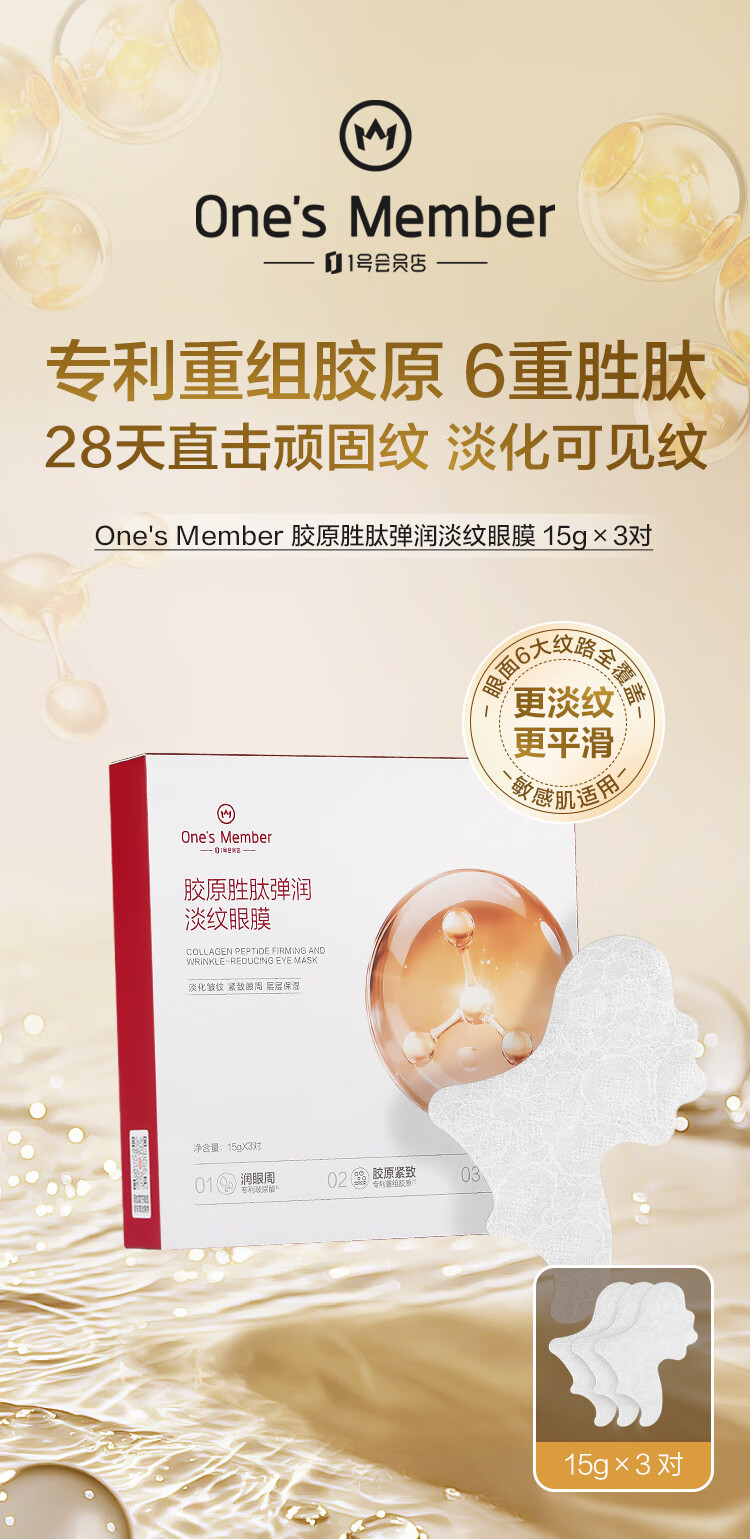 1号会员店(One's Member)胶原胜肽弹润淡纹眼膜 3对/盒 紧致抗皱水润肌肤