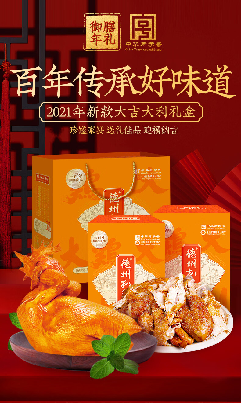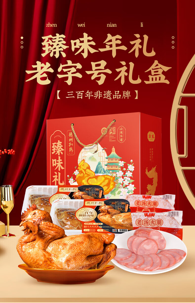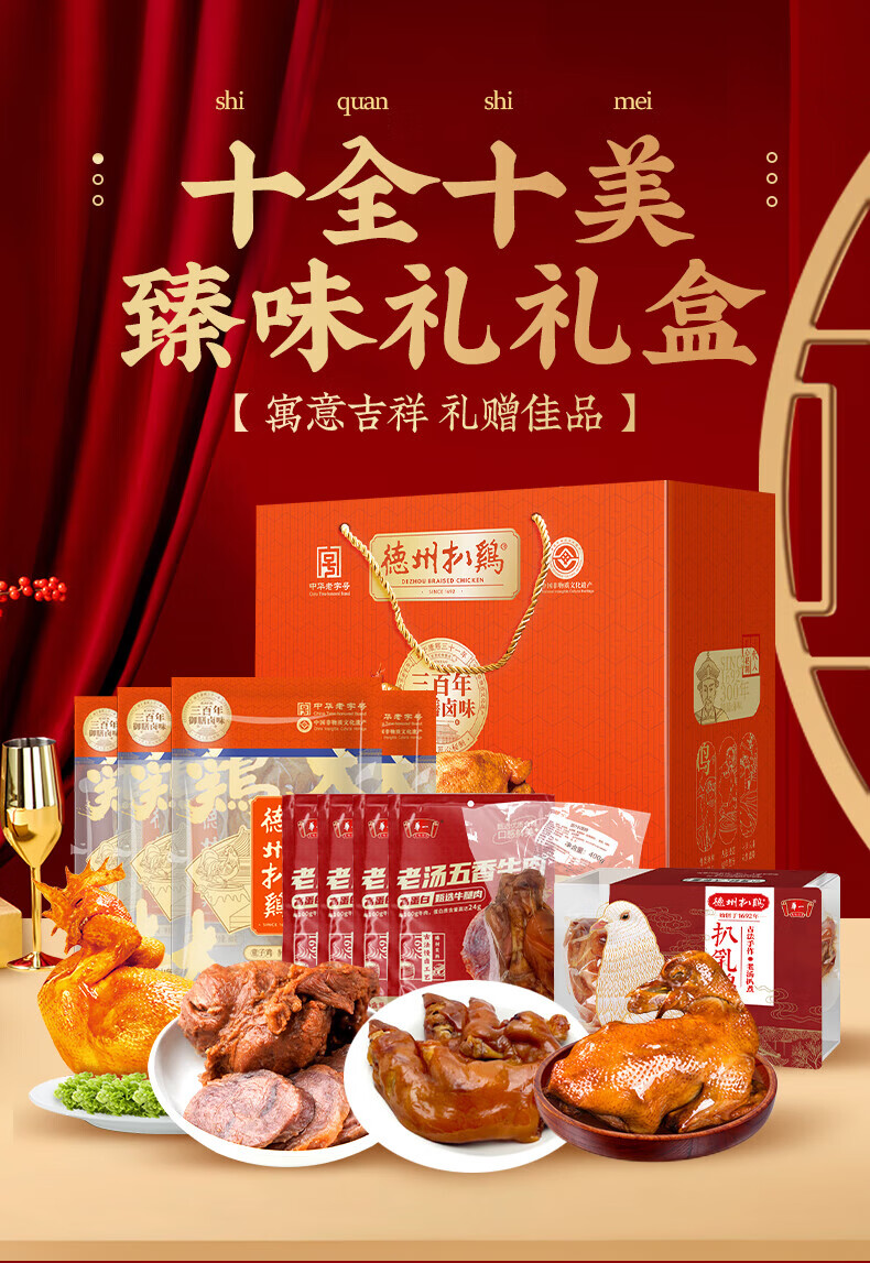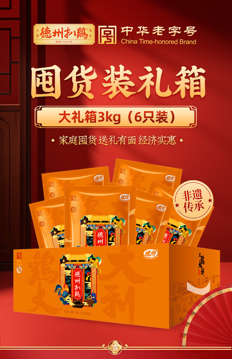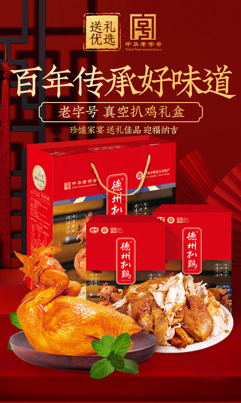 德州扒鸡【德州扒鸡实惠礼盒】山东特产中华老字号熟食过年年货礼盒 【特价款礼盒】真空扒鸡礼盒500g*2