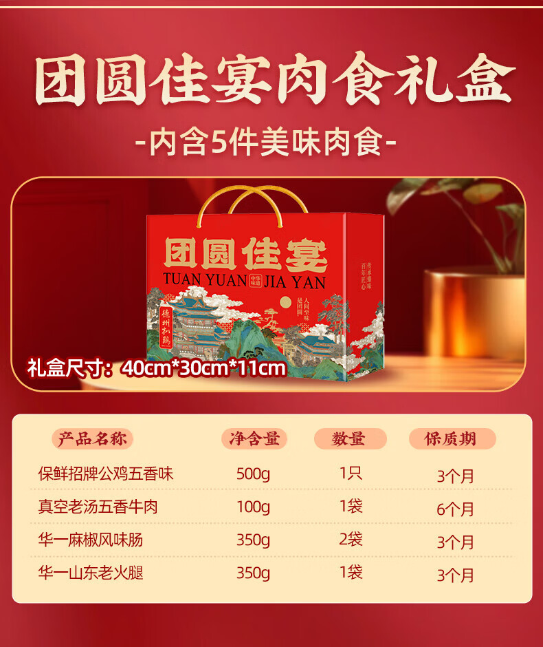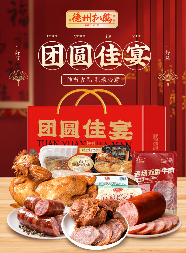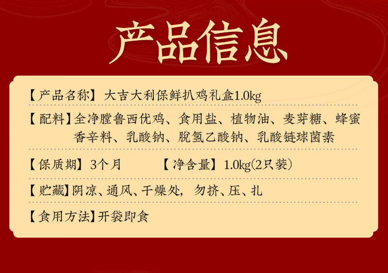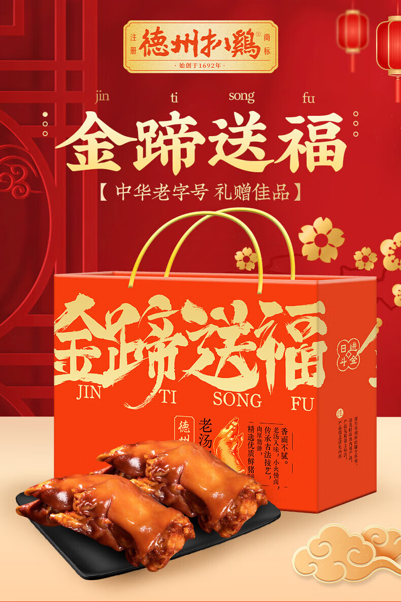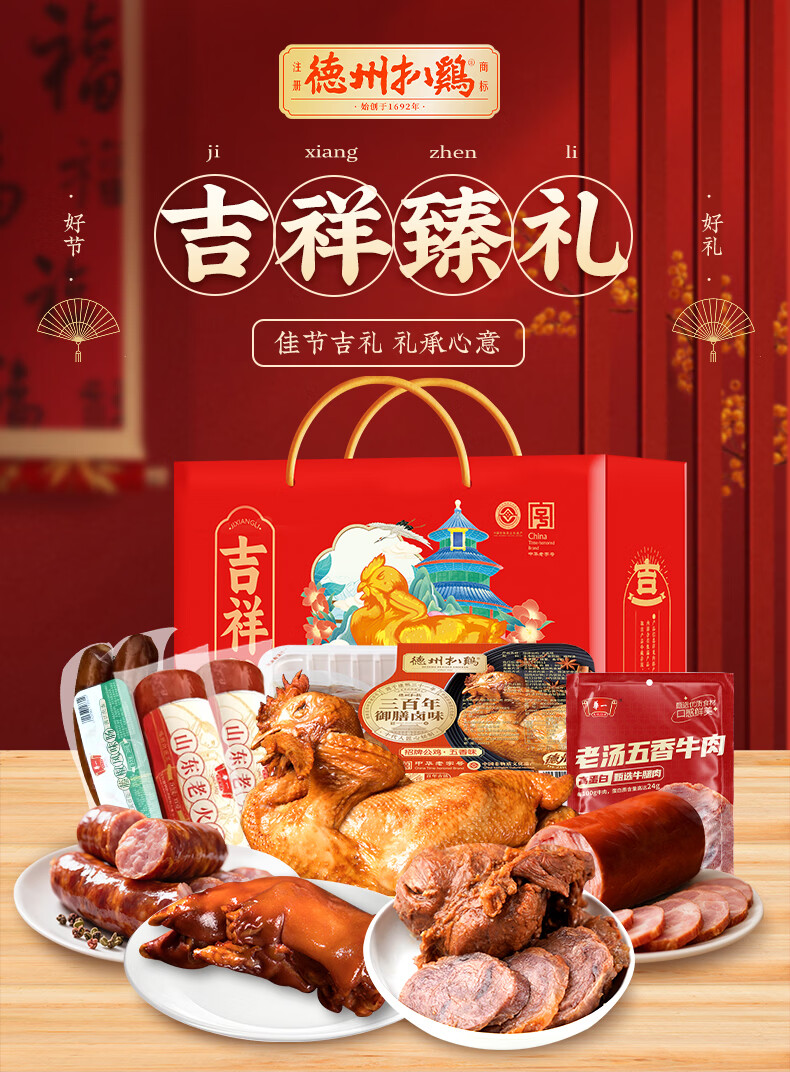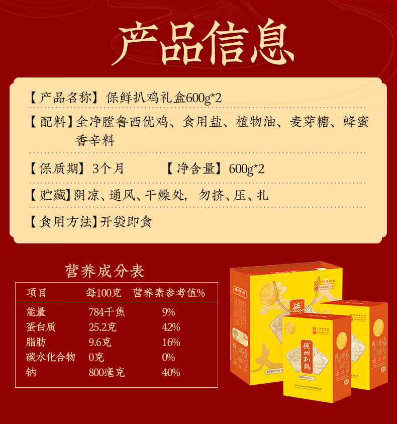 德州扒鸡【德州扒鸡实惠礼盒】山东特产中华老字号熟食过年年货礼盒 【特价款礼盒】真空扒鸡礼盒500g*2