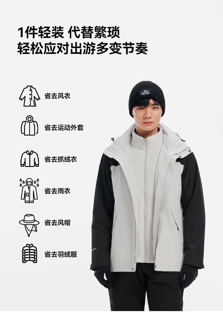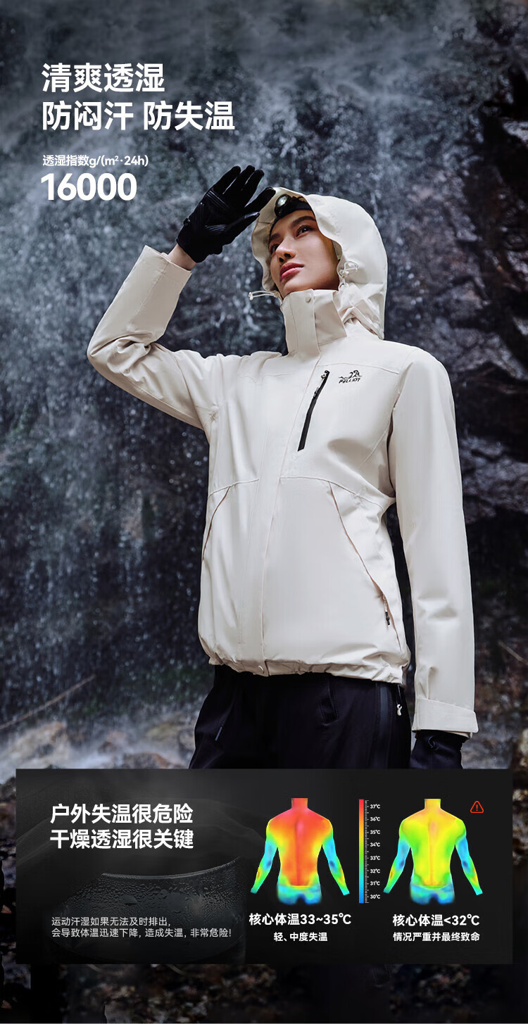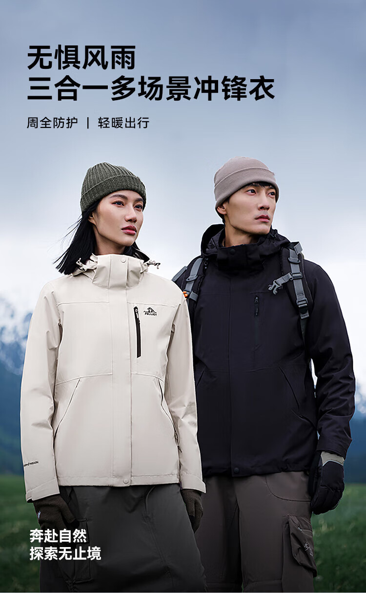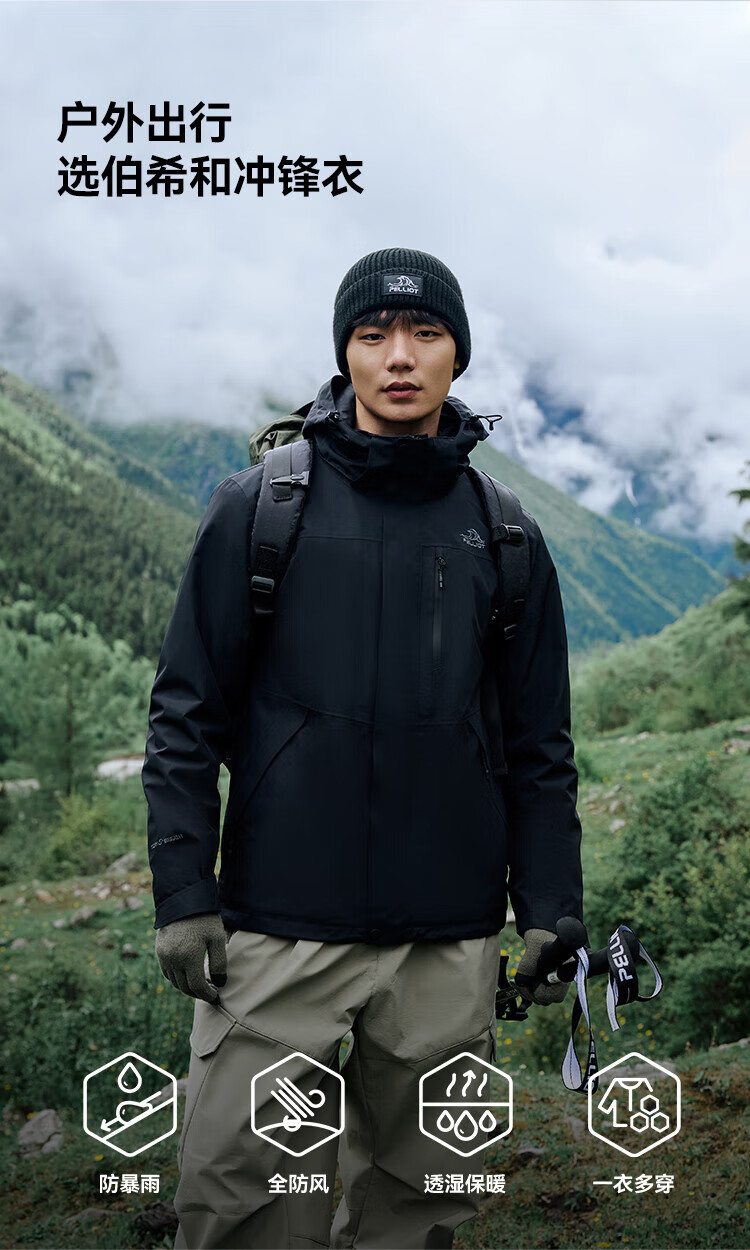 伯希和(Pelliot)【成毅同款】冲锋衣三合一男女秋冬户外防水保暖外套12340106