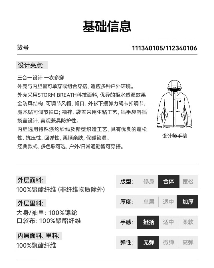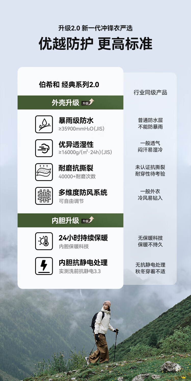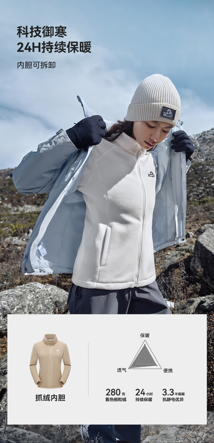 伯希和(Pelliot)【成毅同款】冲锋衣三合一男女秋冬户外防水保暖外套12340106