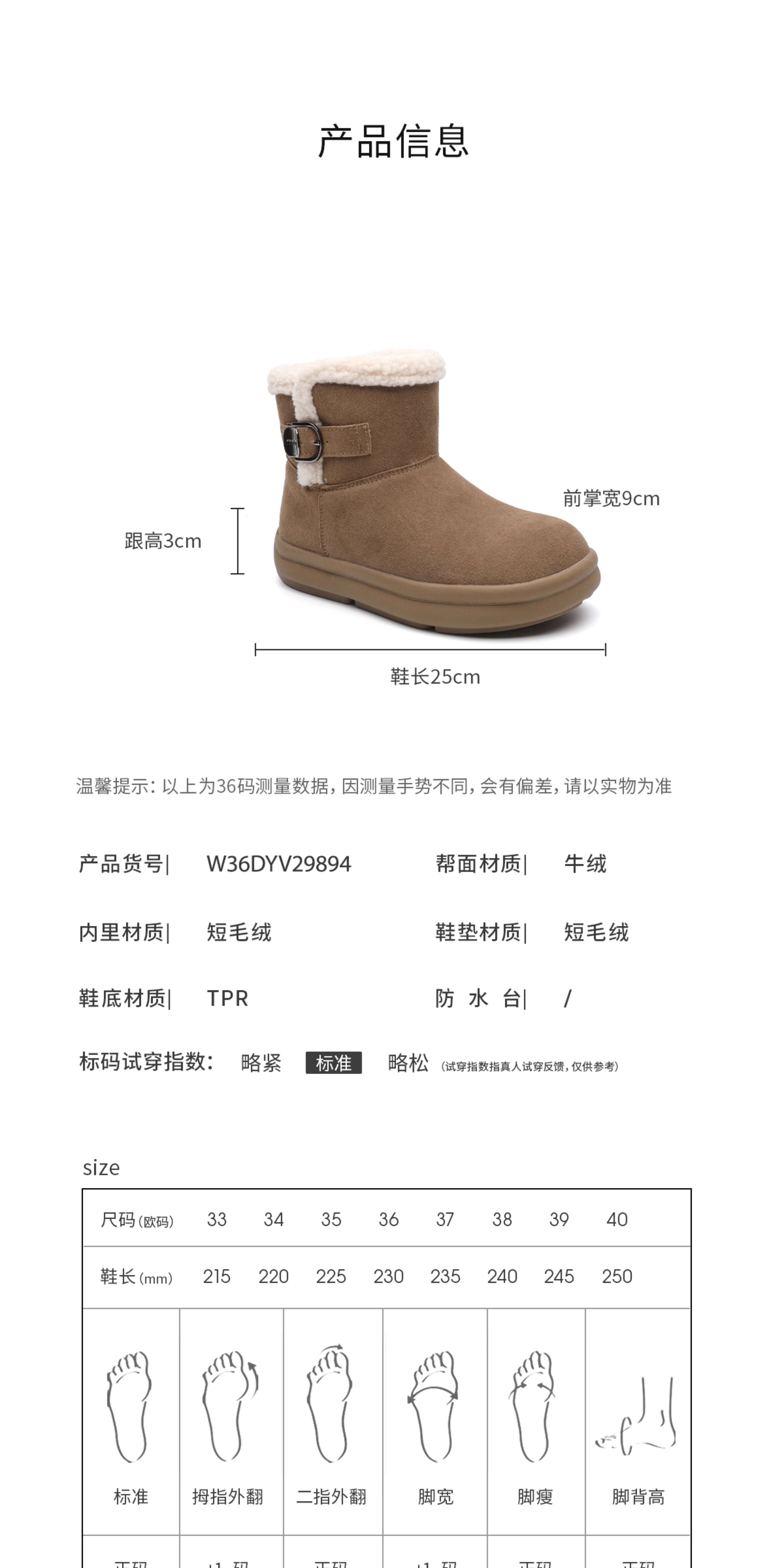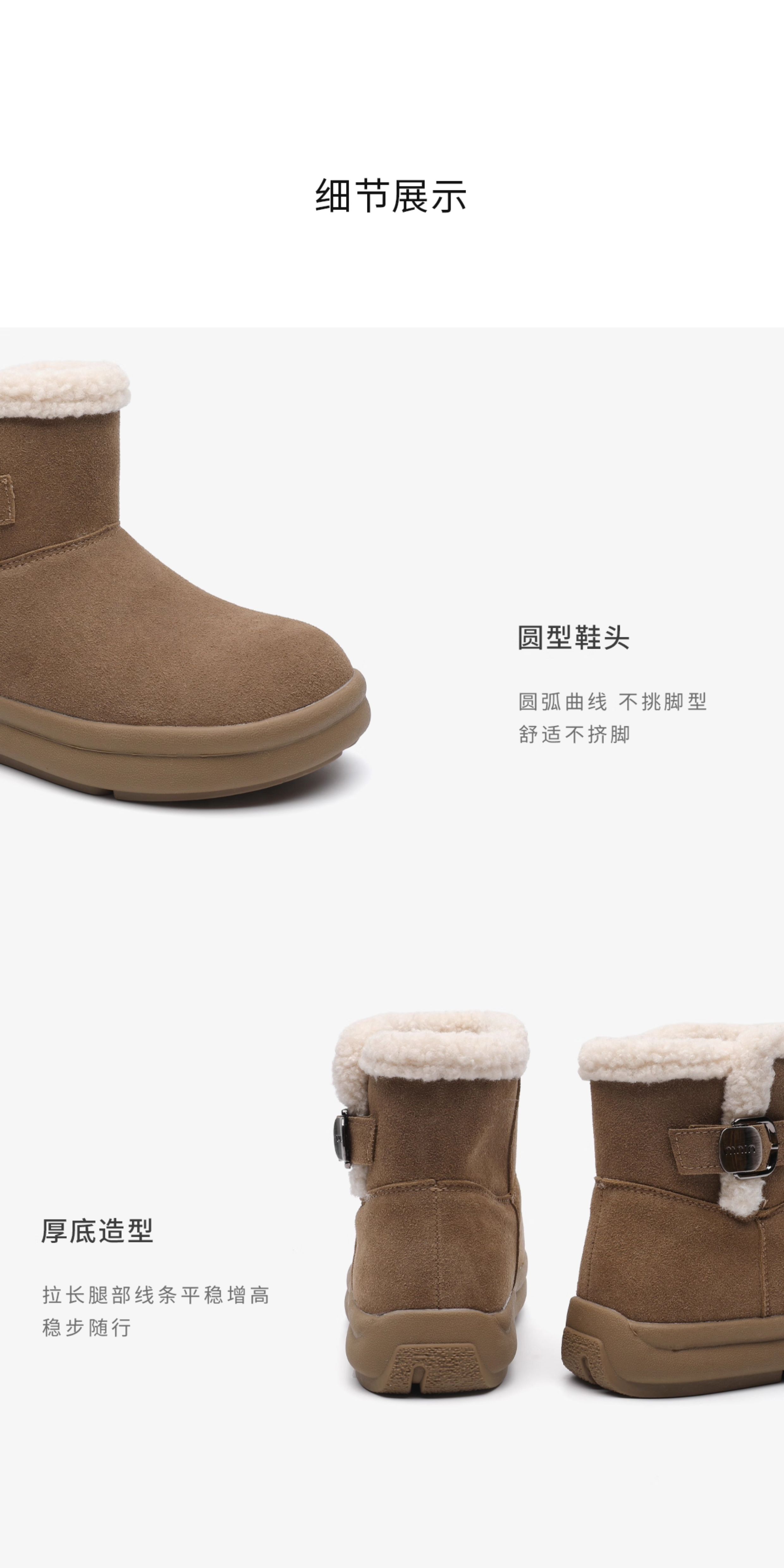 星期六毛绒雪地靴女款冬季加绒2025新款女鞋东北短筒棉鞋厚底保暖面包鞋 卡其色 【冬季保暖】跟高3cm 38