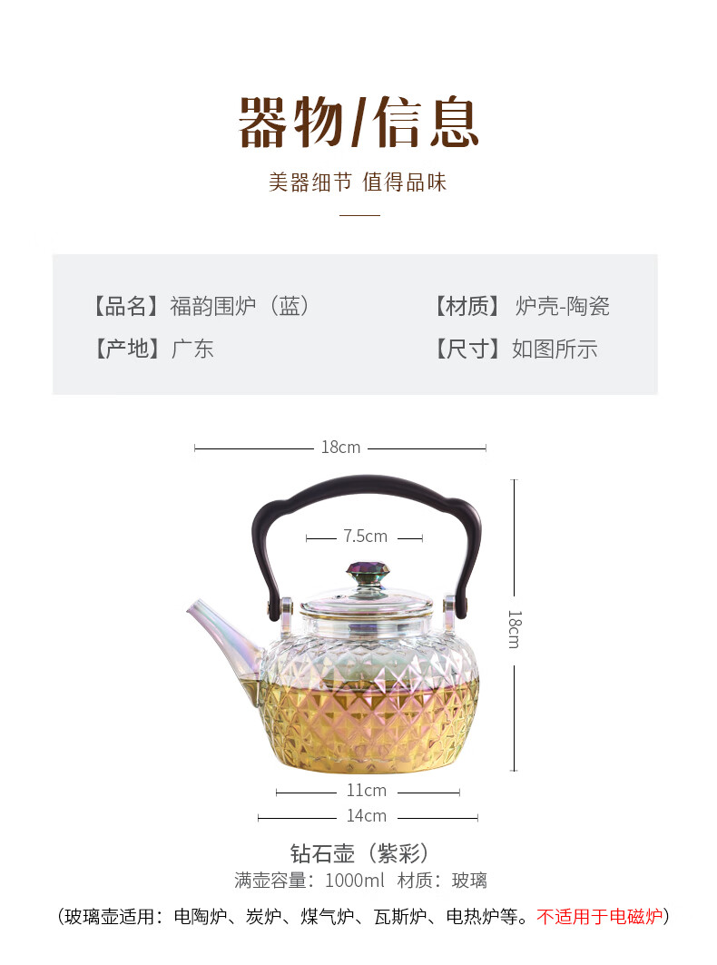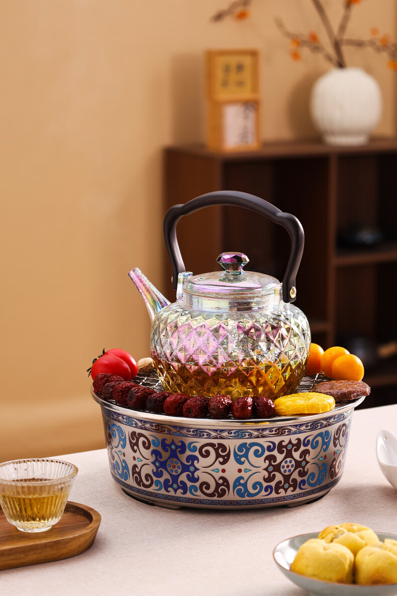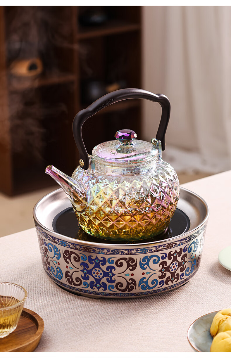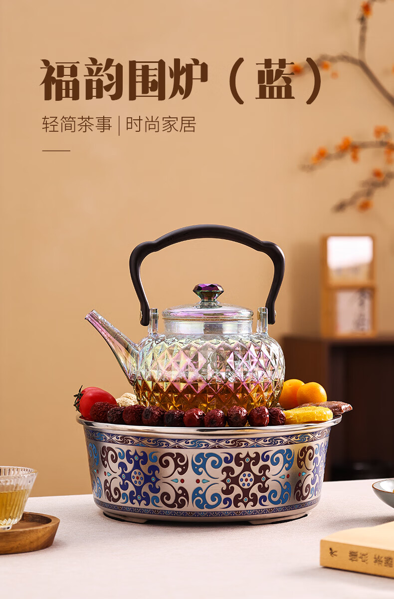 岳恒福韵围炉电陶炉围炉煮茶套装耐热玻璃煮茶壶器家用烧水壶2026新款 【单壶】砖石壶(紫彩)蒸煮一体-1000ml