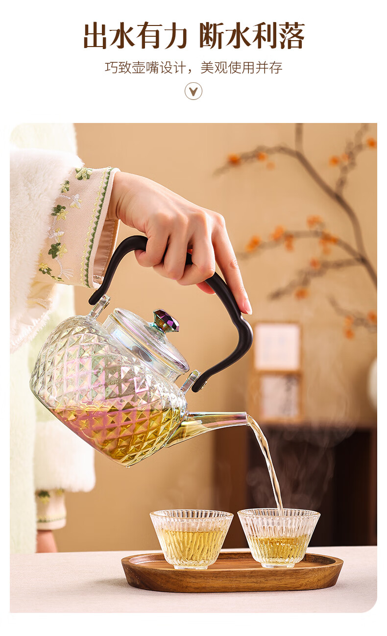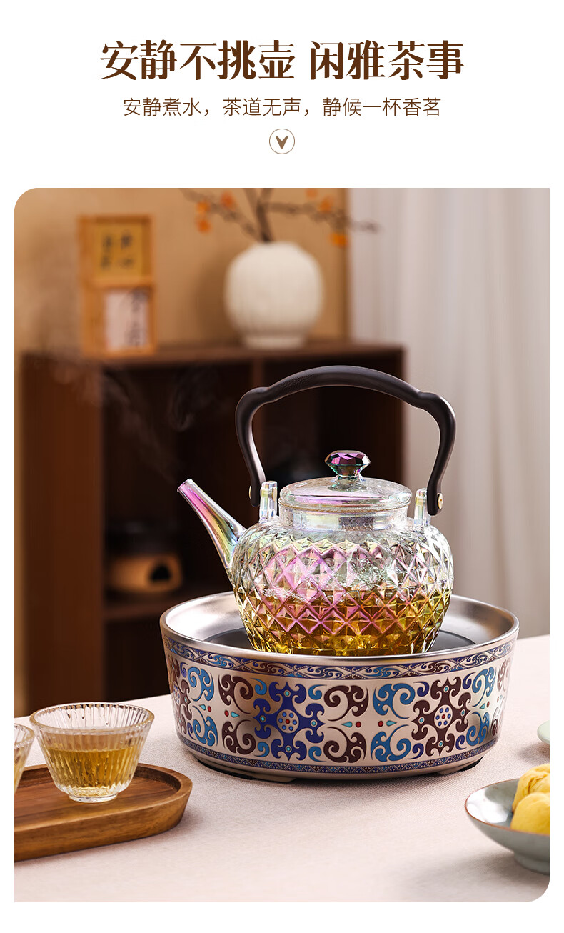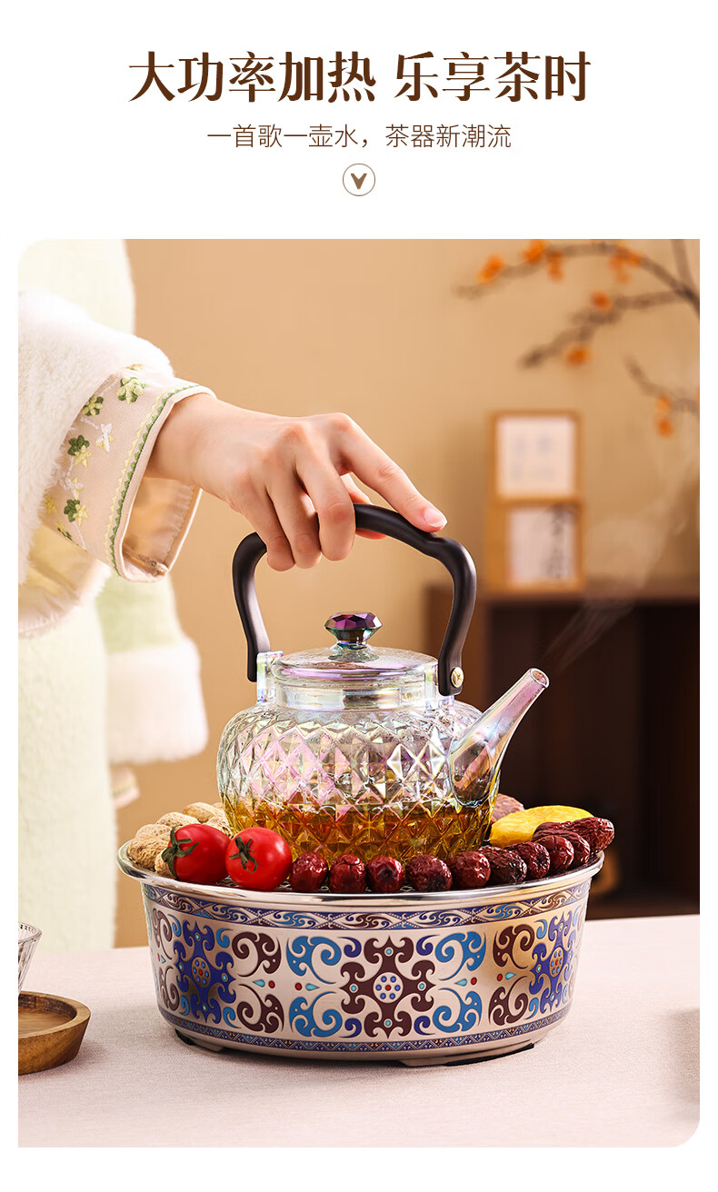 岳恒福韵围炉电陶炉围炉煮茶套装耐热玻璃煮茶壶器家用烧水壶2026新款 【单壶】砖石壶(紫彩)蒸煮一体-1000ml