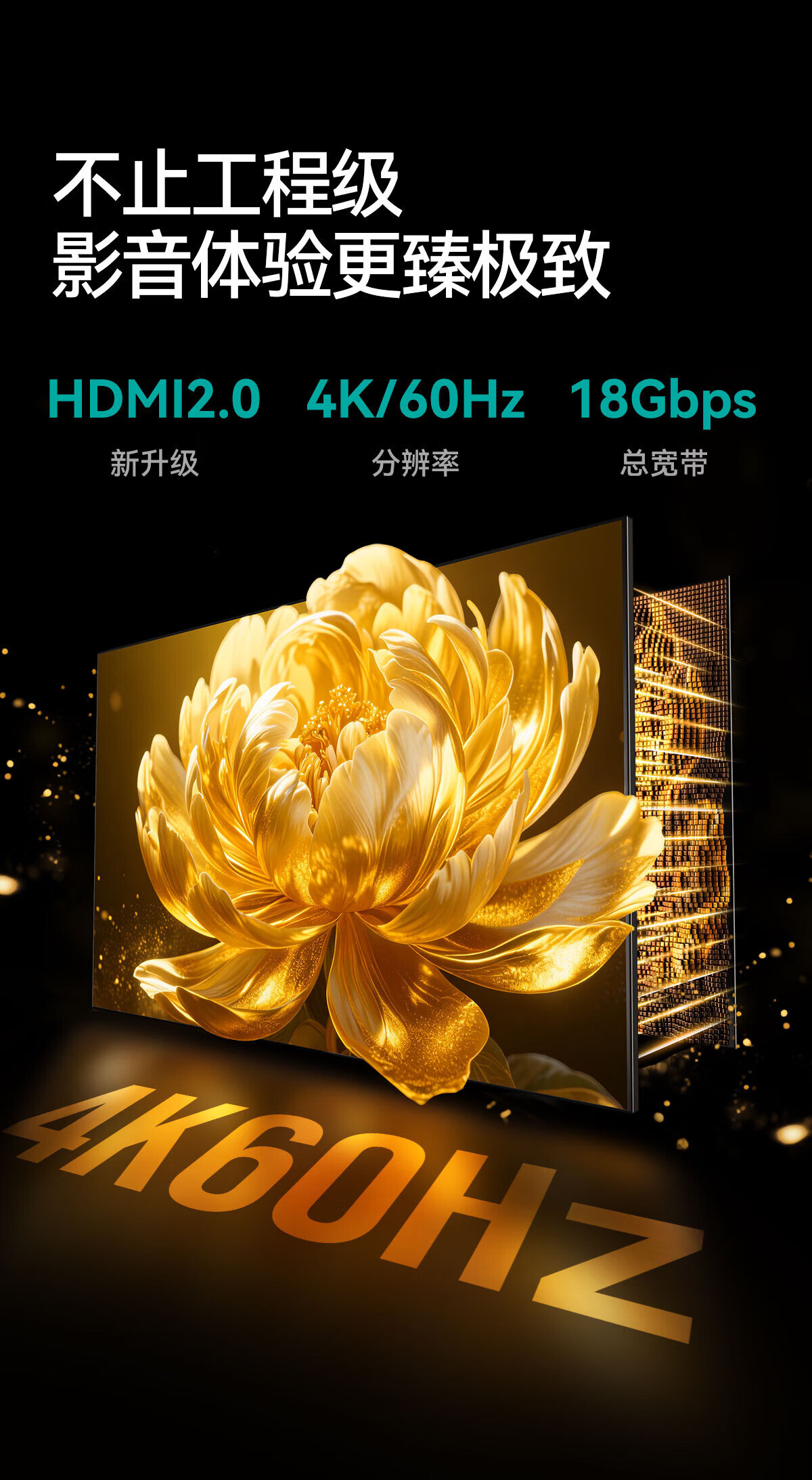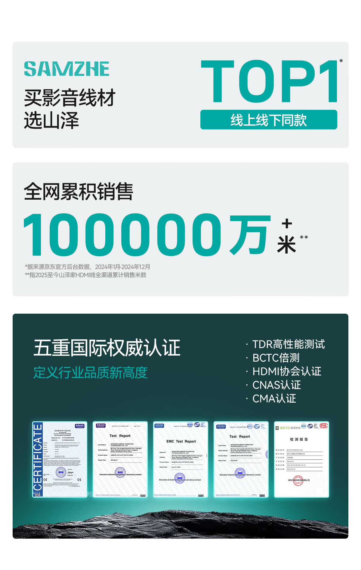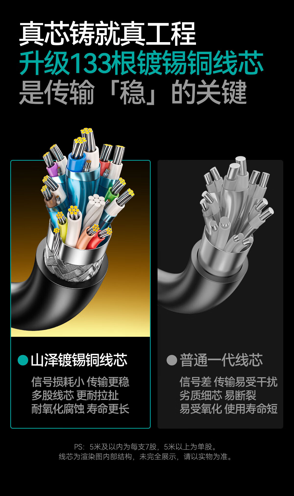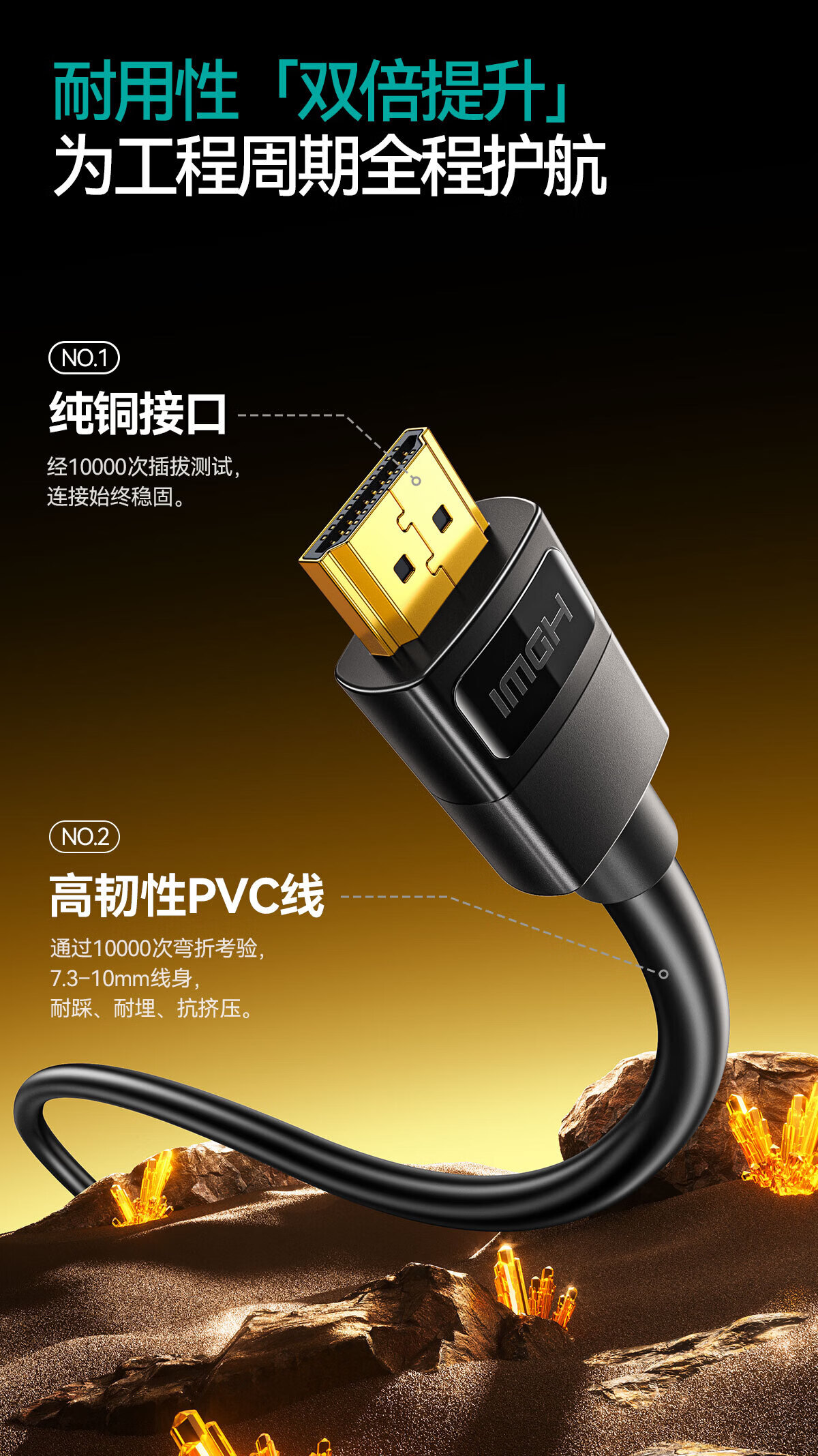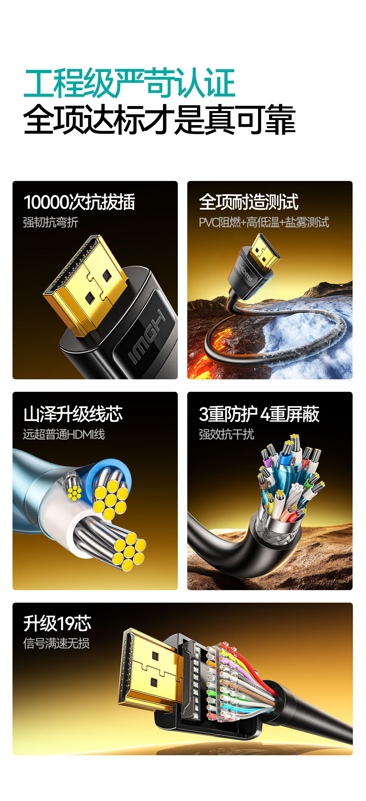 山泽HDMI线2.1版 兼容HDMI2.0 光纤线 数字高清线家装 笔记本电脑机顶盒连接投影仪显示器数据连接线 4K经典款【家装/工程】SH8 0.5米
