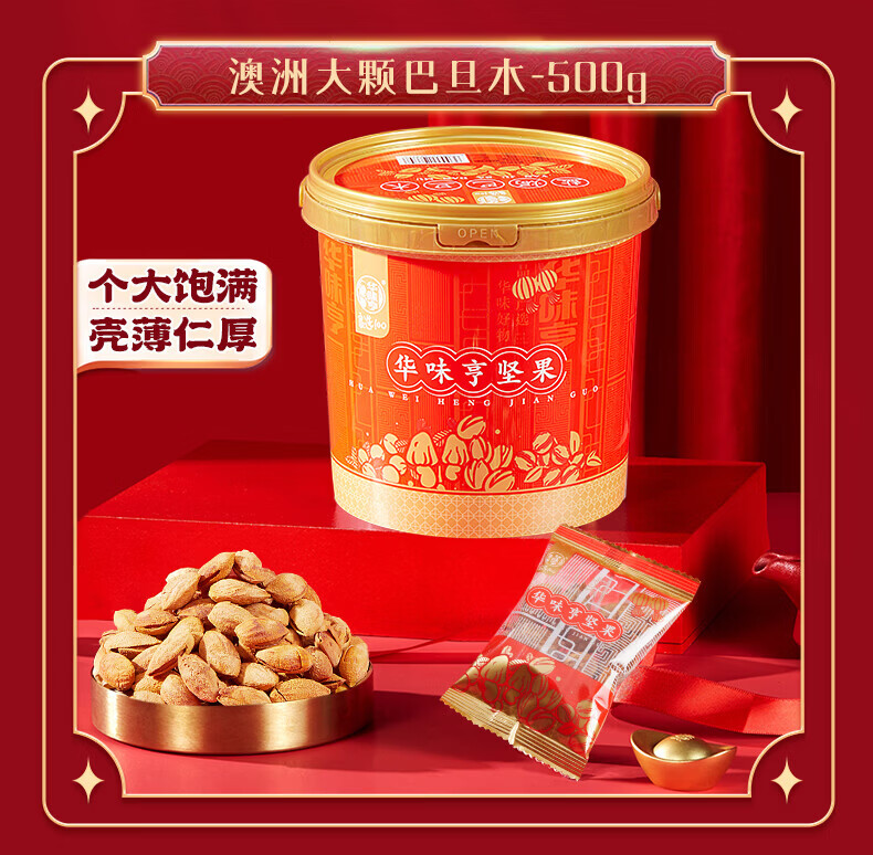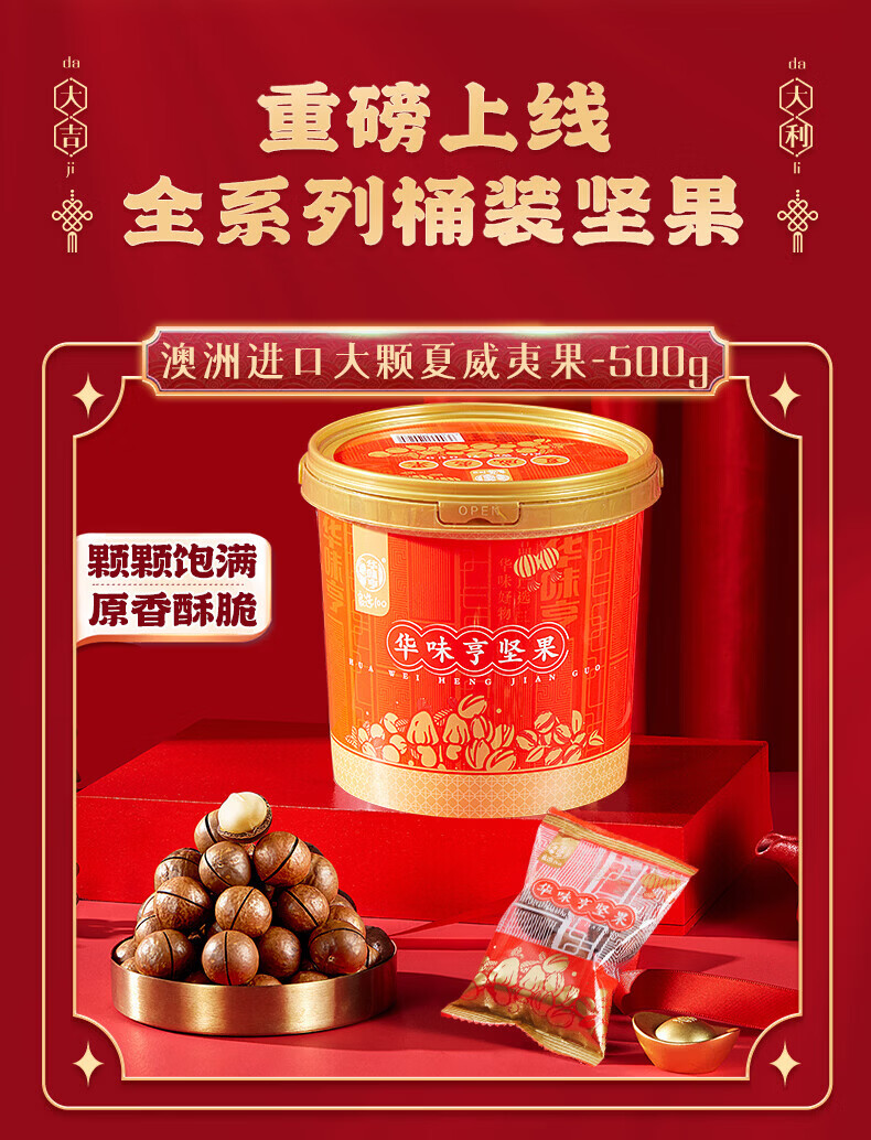 华味亨桶装混合坚果1kg 坚果炒货开心果腰果年货礼盒送礼零食休闲小吃 500g夏威夷果+500g盐焗巴旦木