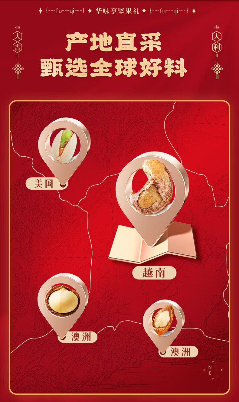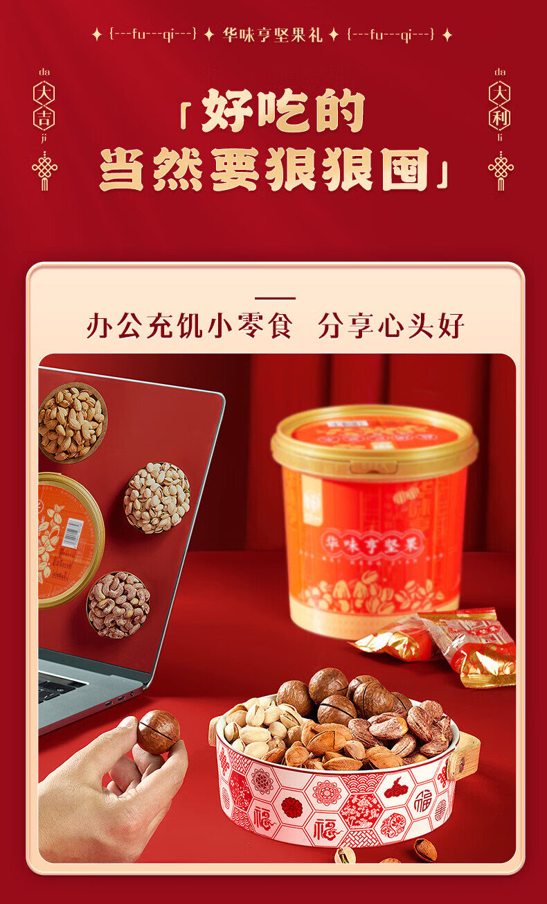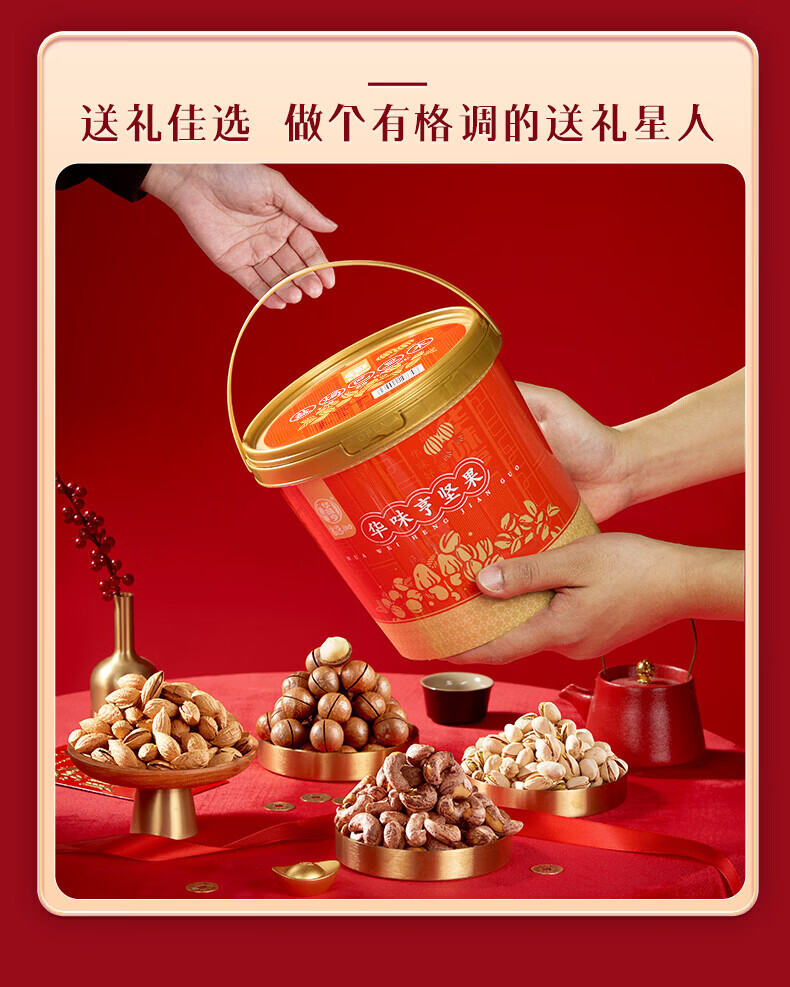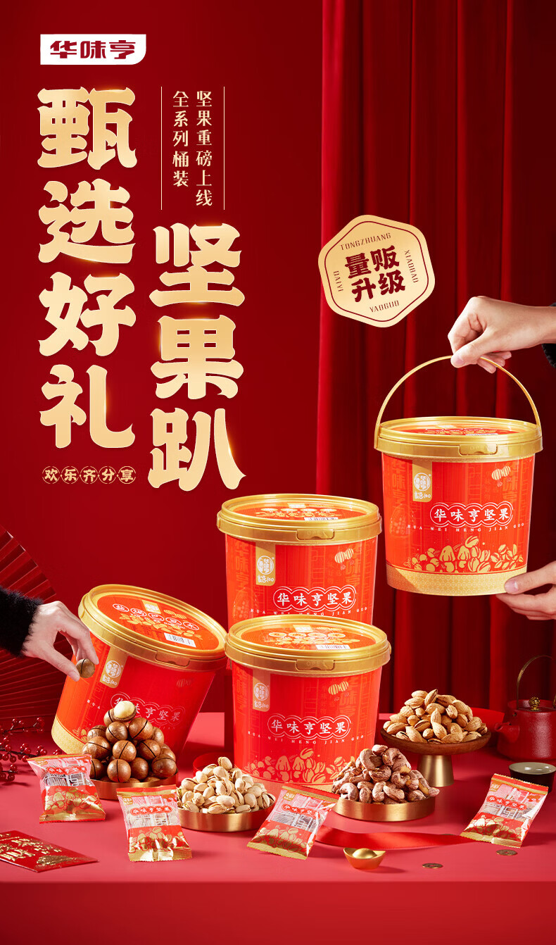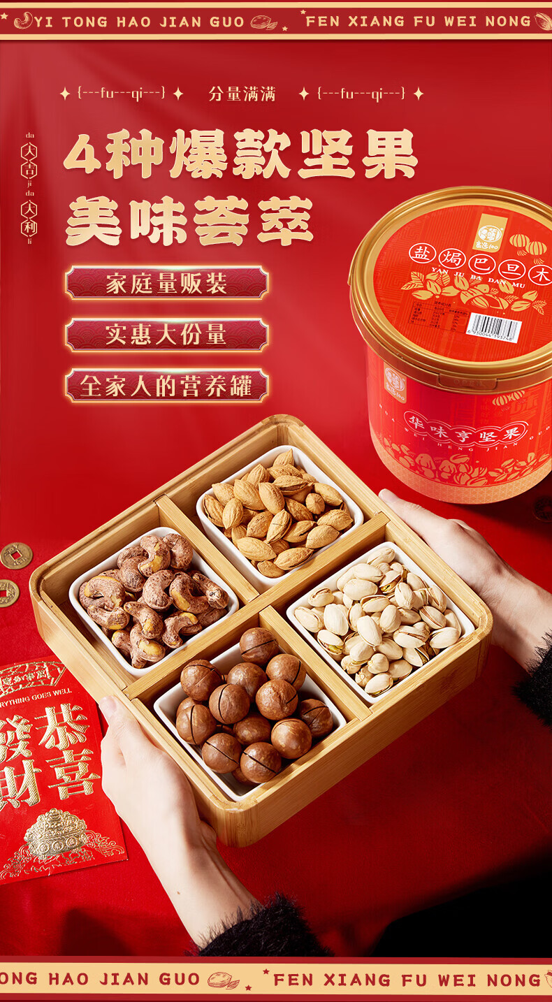 华味亨桶装混合坚果2kg 四桶坚果炒货年货礼盒送礼零食休闲小吃 全家福(4桶装)