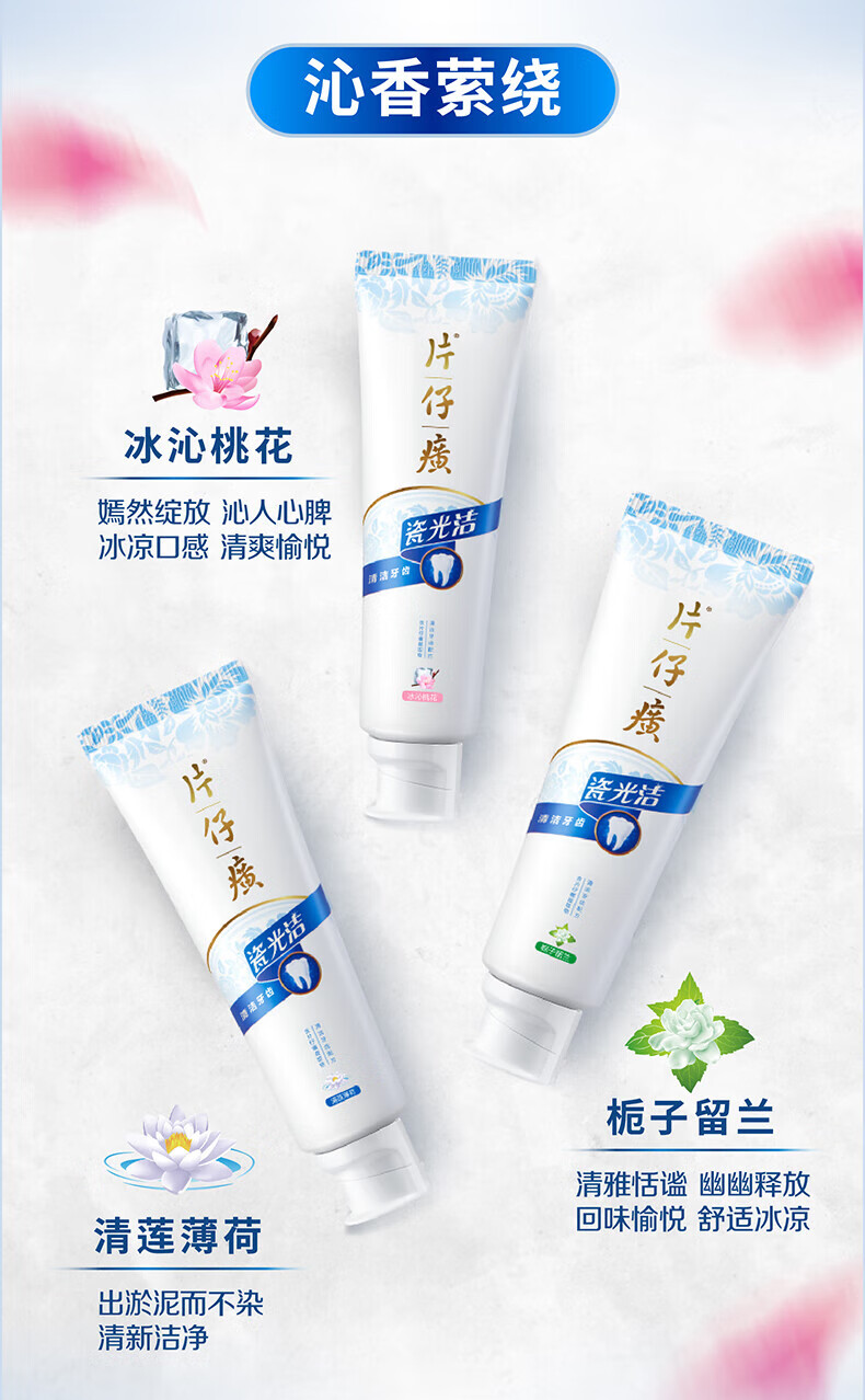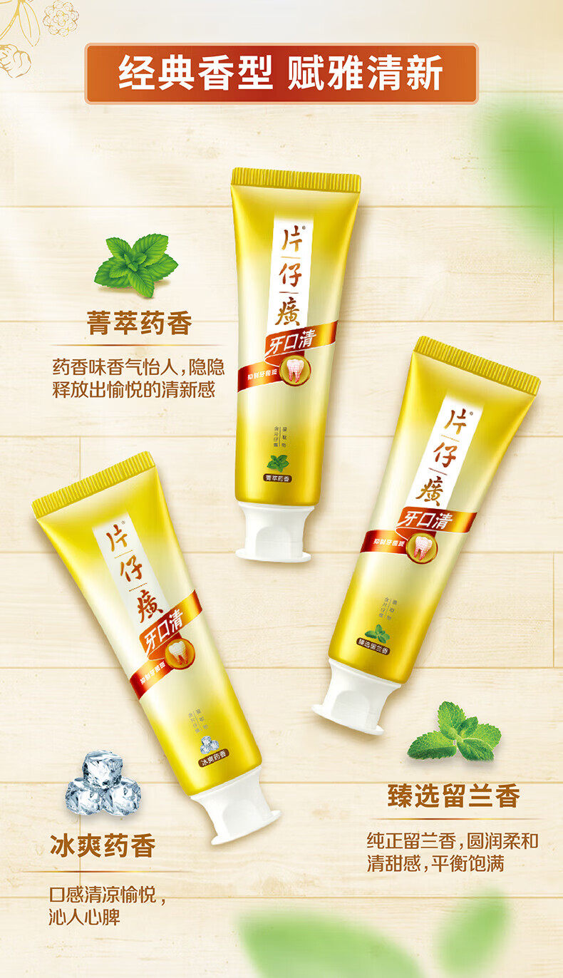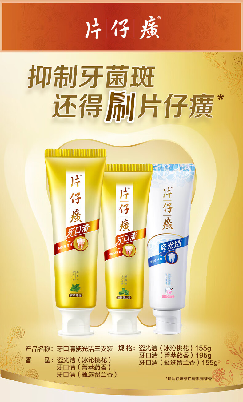 片仔癀牙膏套组护龈去渍口腔清洁清新口气 菁萃195+留兰155+桃花155组合