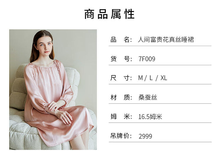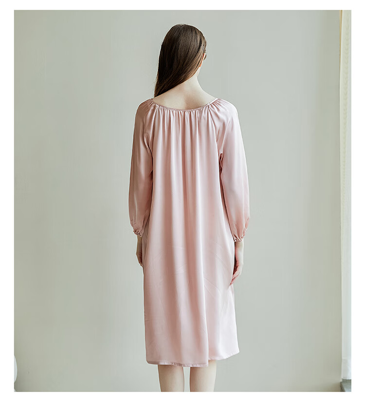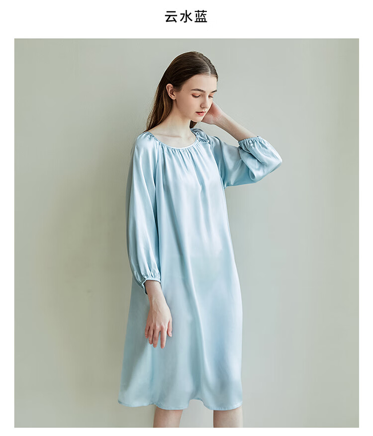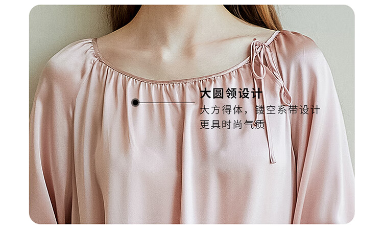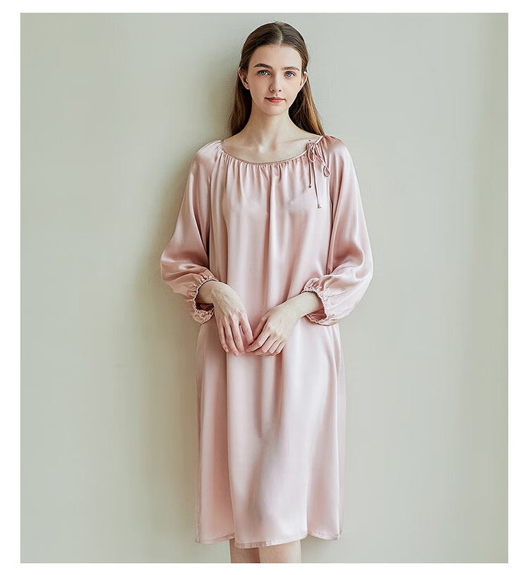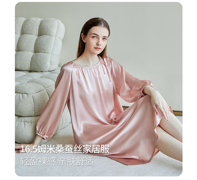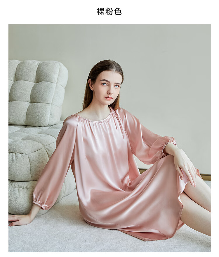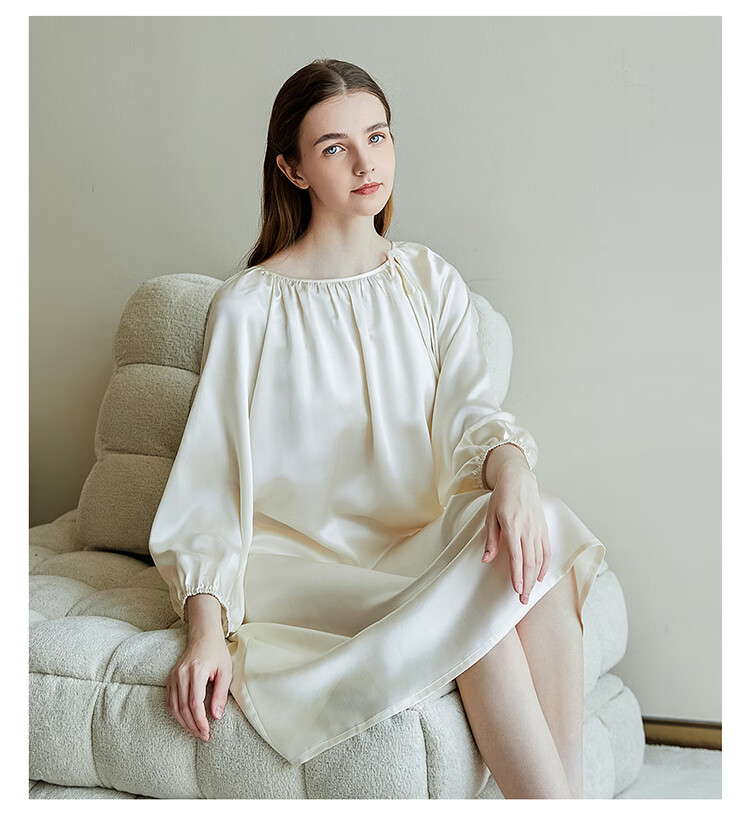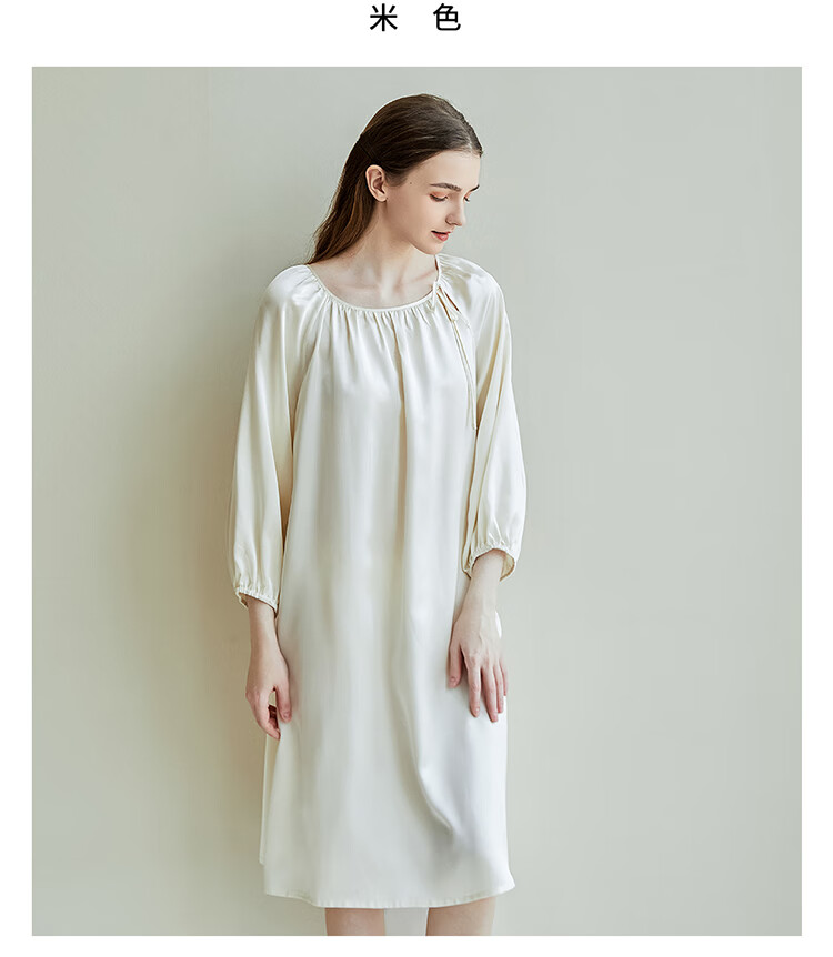 江南故事真丝睡裙女圆领系带桑蚕丝家居服外穿连衣裙过膝睡衣女新年礼物 米色 XL